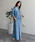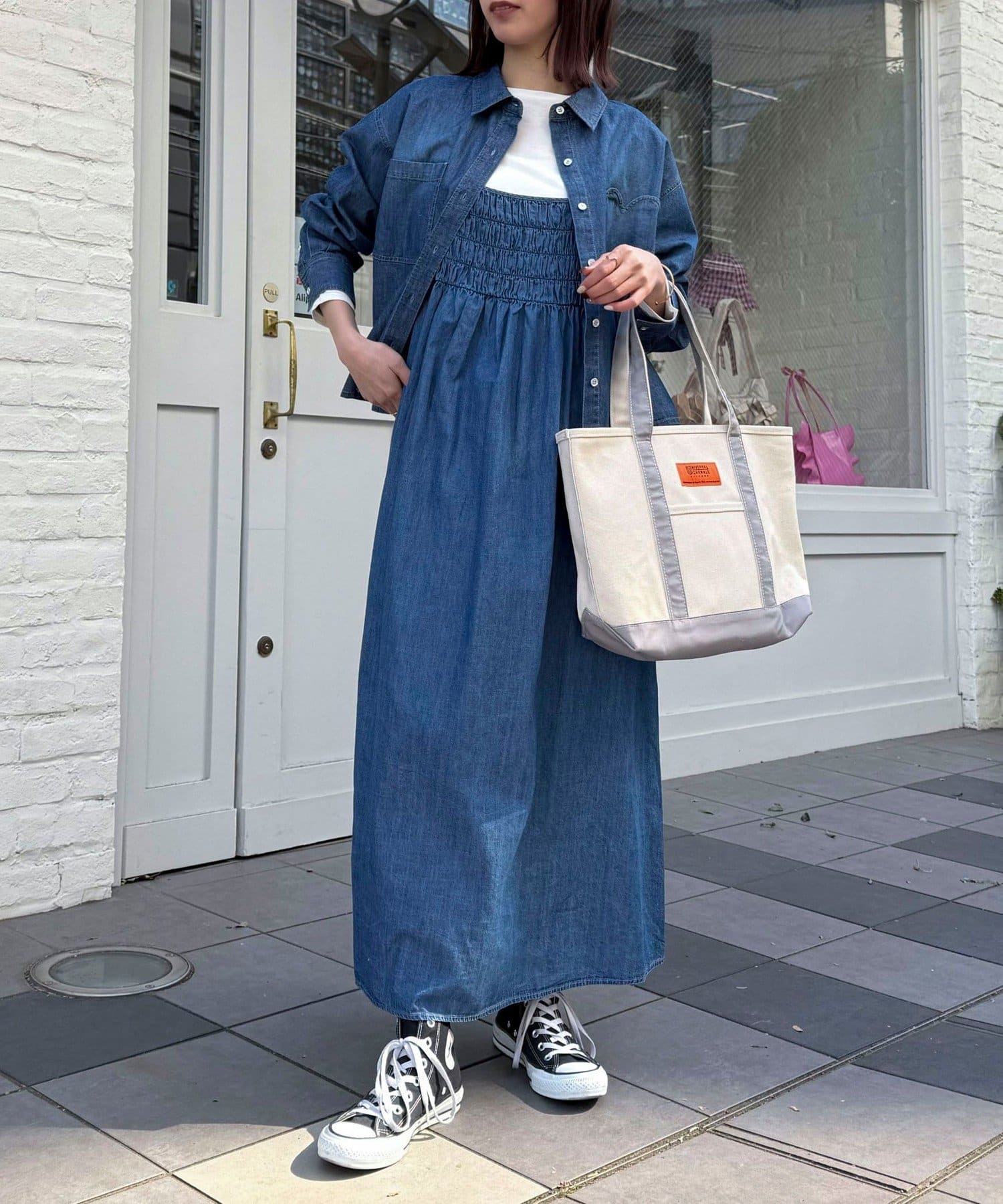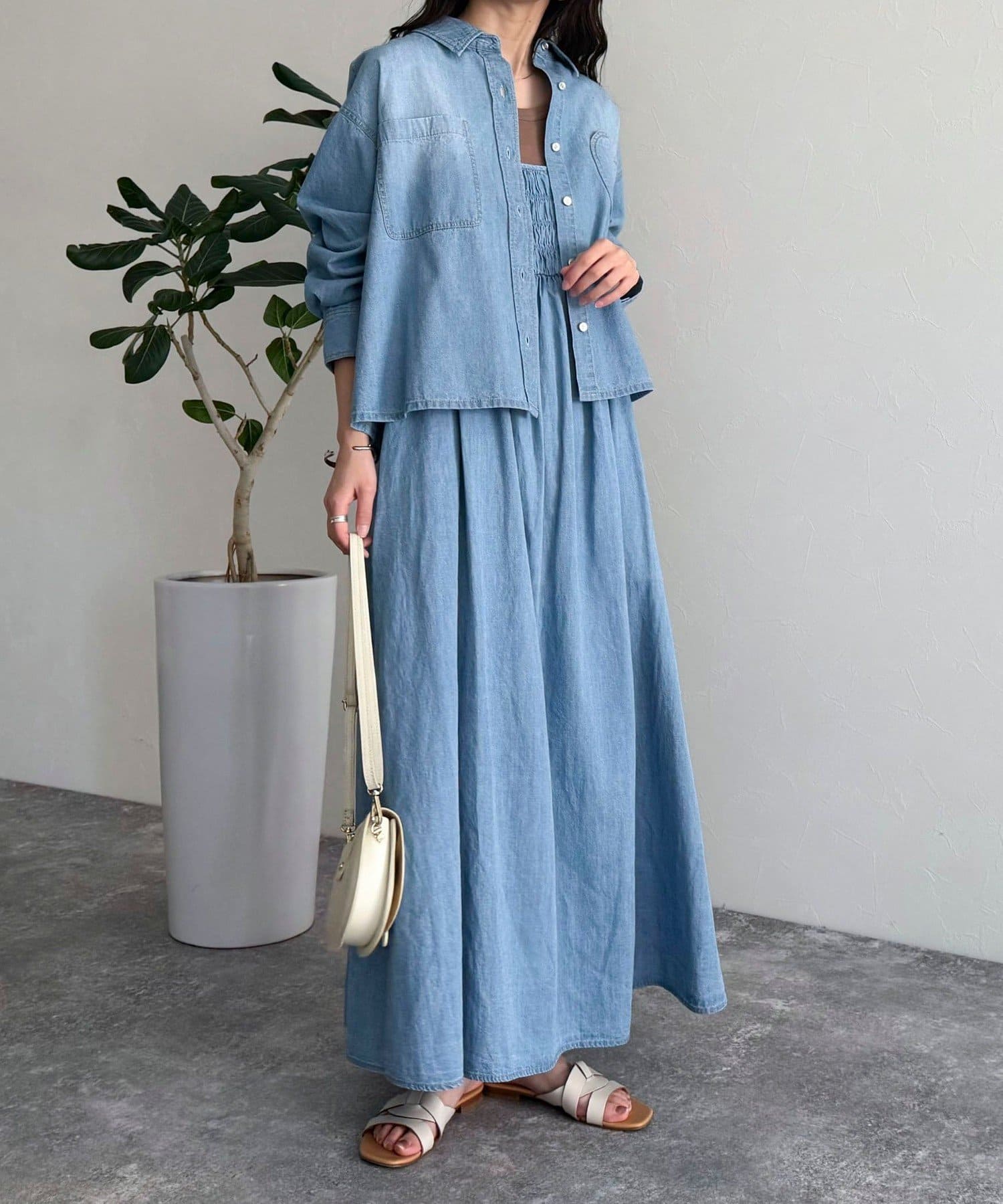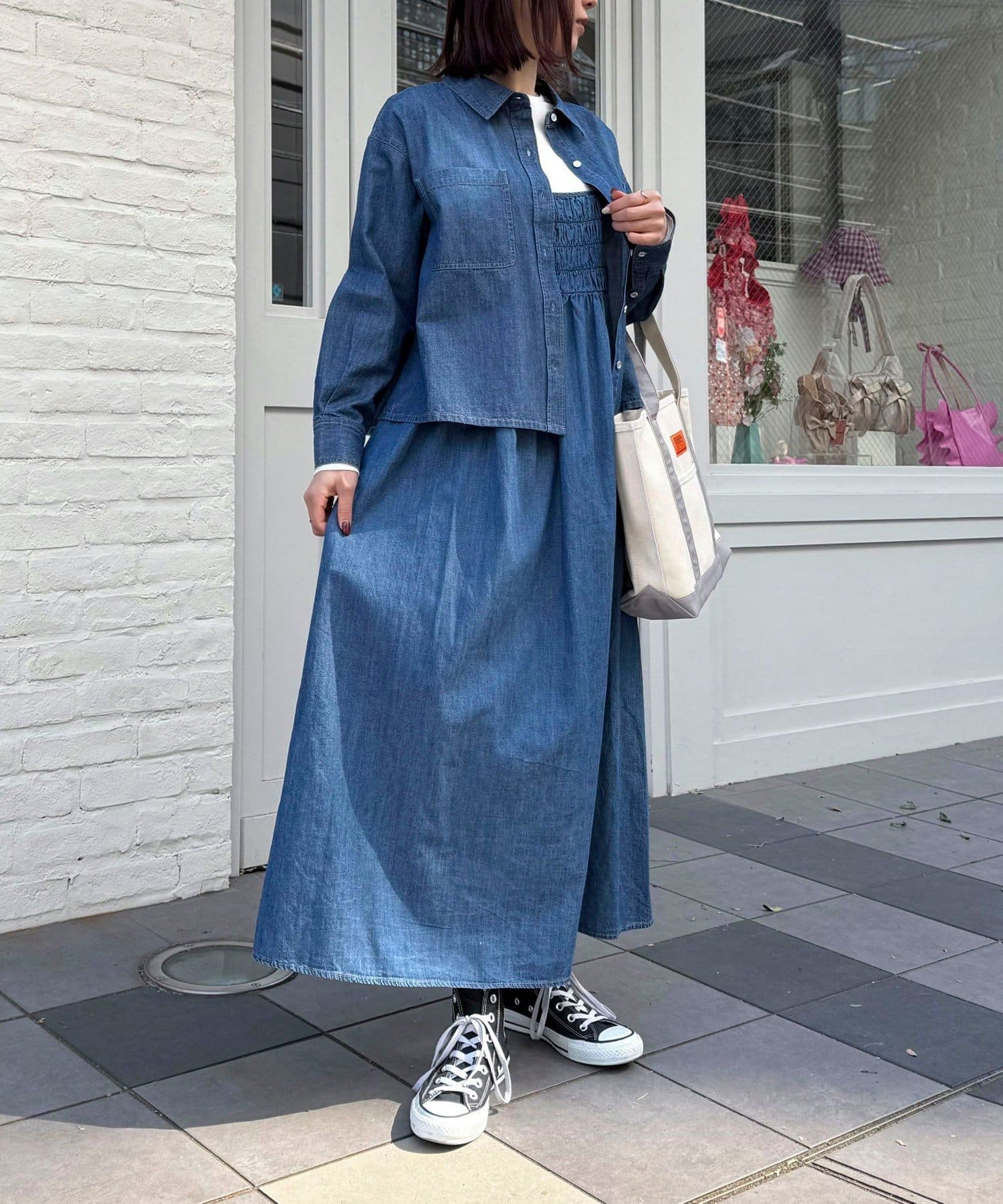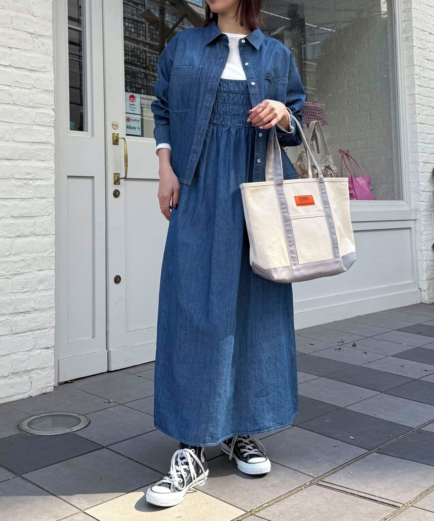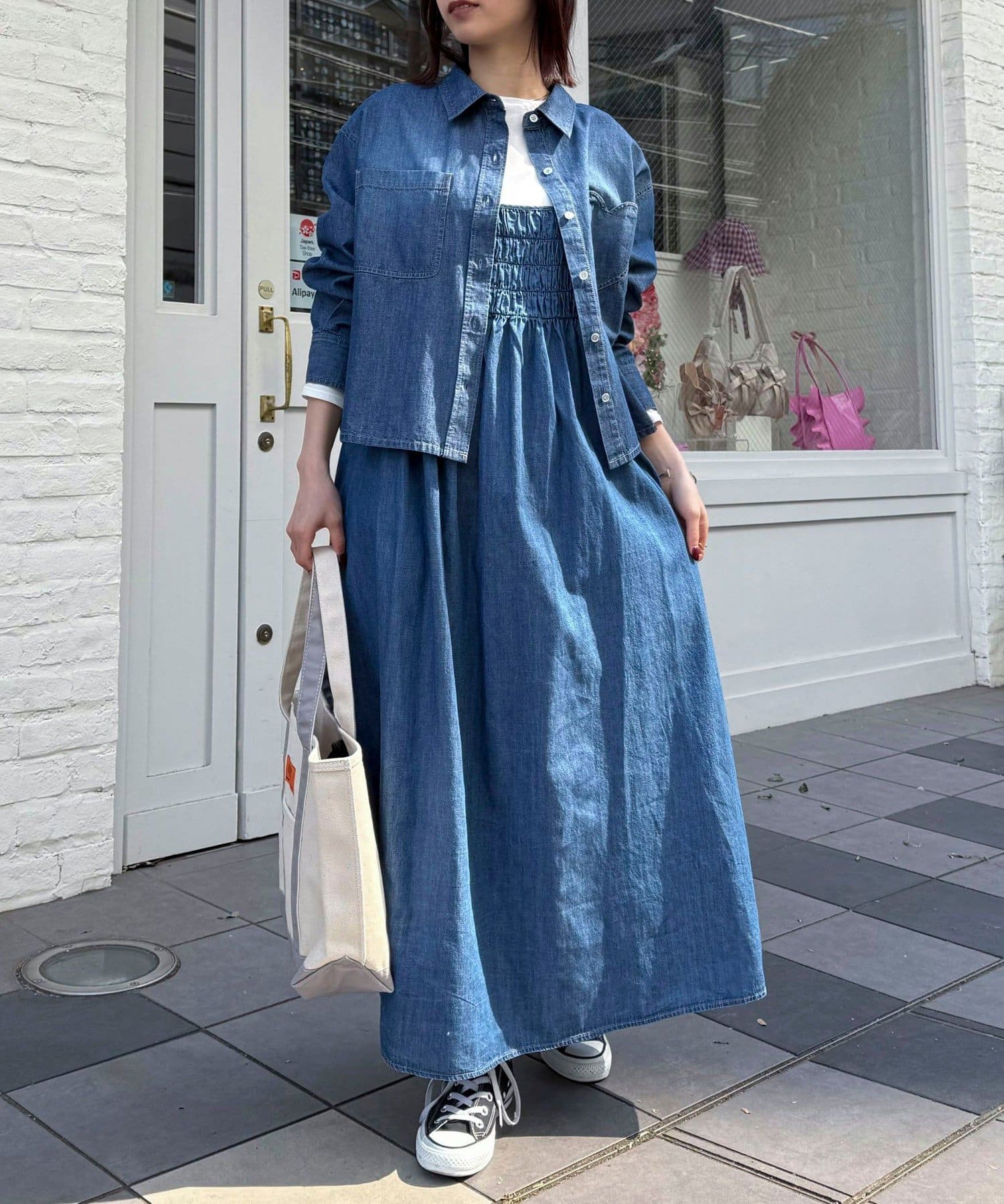 (【 5-0021-3-27-001 ライトオンスデニムシャーリングキャミワンピース】)
