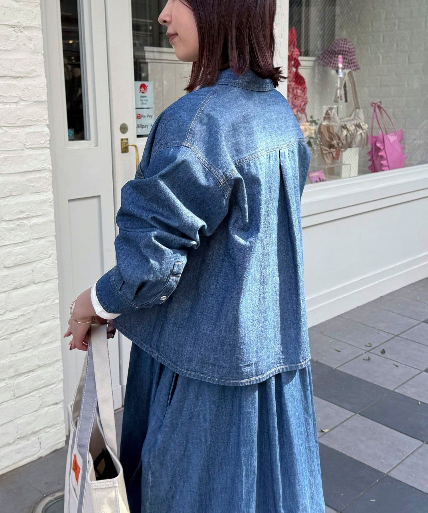 ・カジュアル感が強くなるデニムアイテムに女性らしさをプラスした1枚