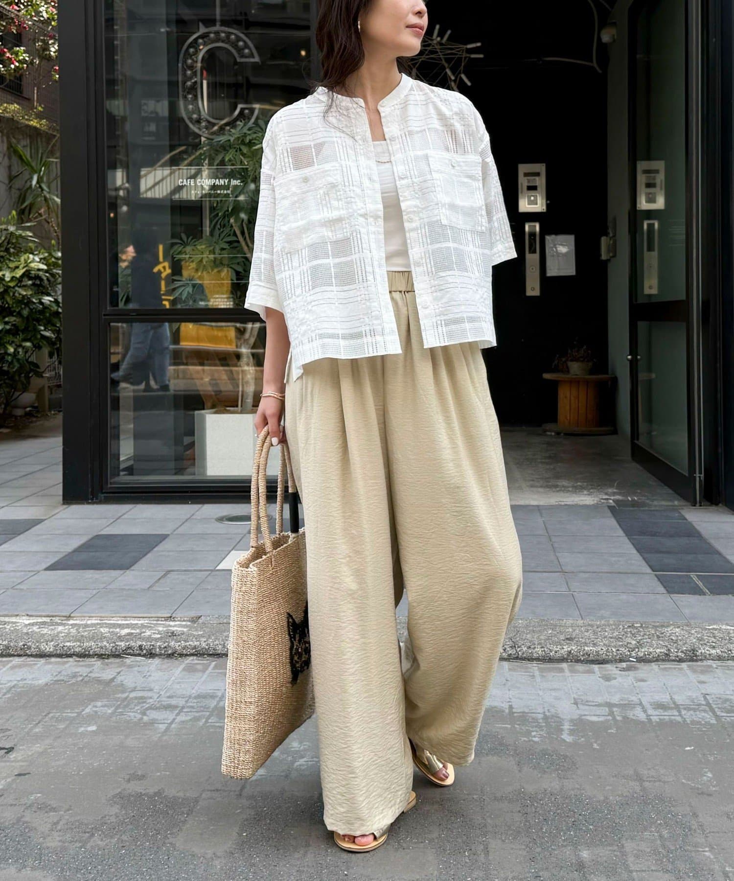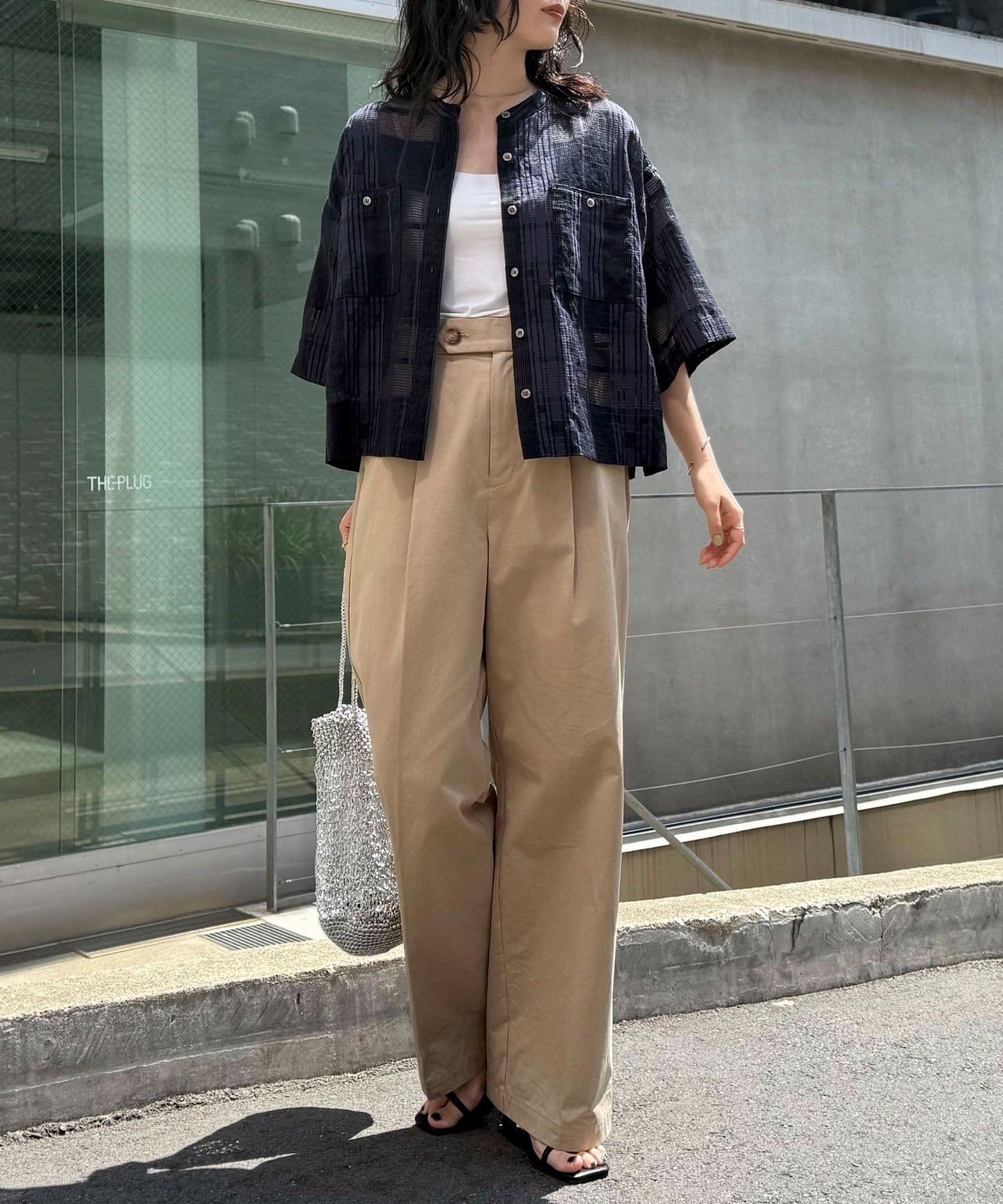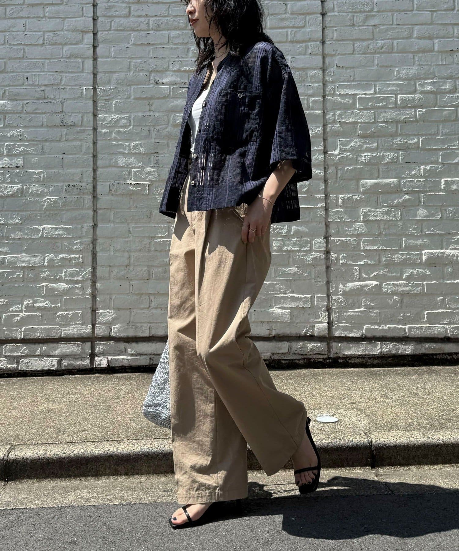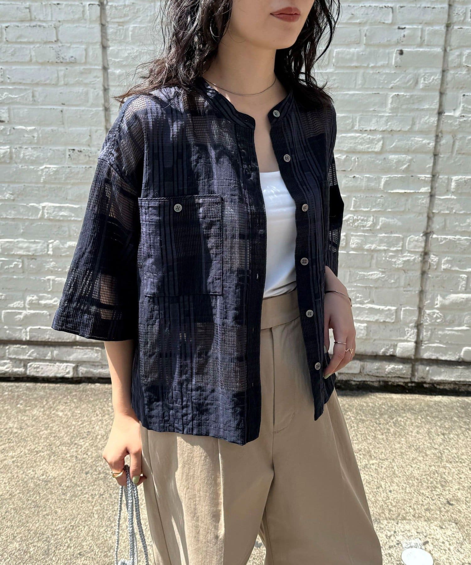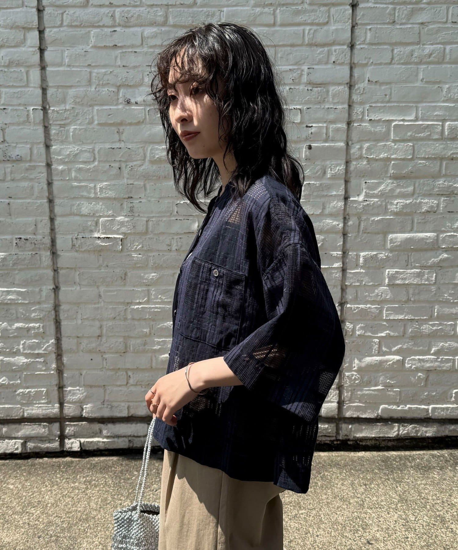 ・中にタンクトップやキャミソールを合わせたヘルシーな着こなしやボタンを開けて羽織として着用するのもオススメです