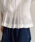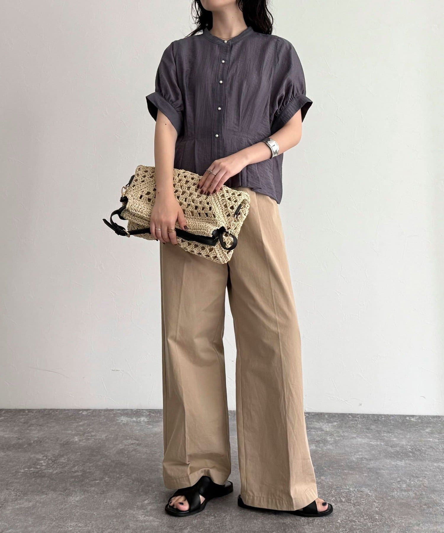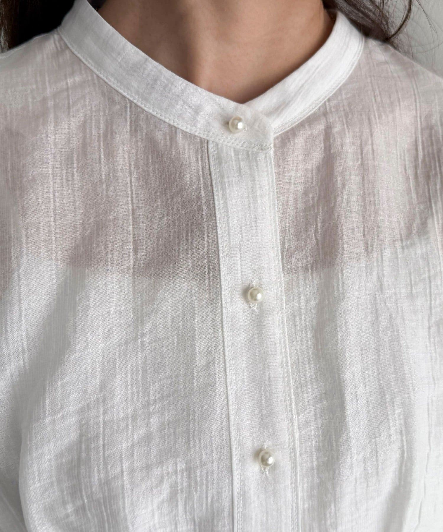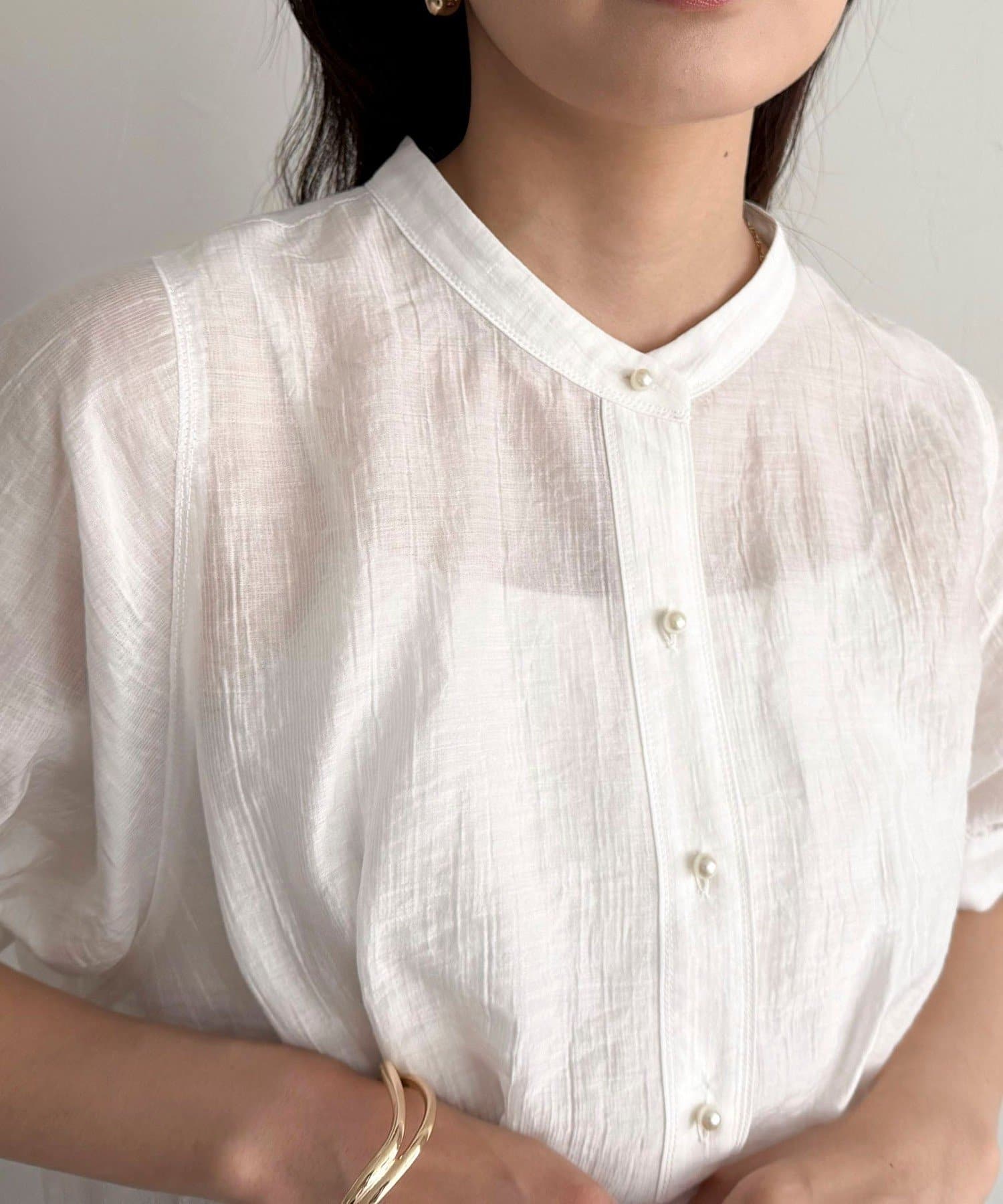 ・パール釦やふんわりした袖が上品な女性らしさを演出