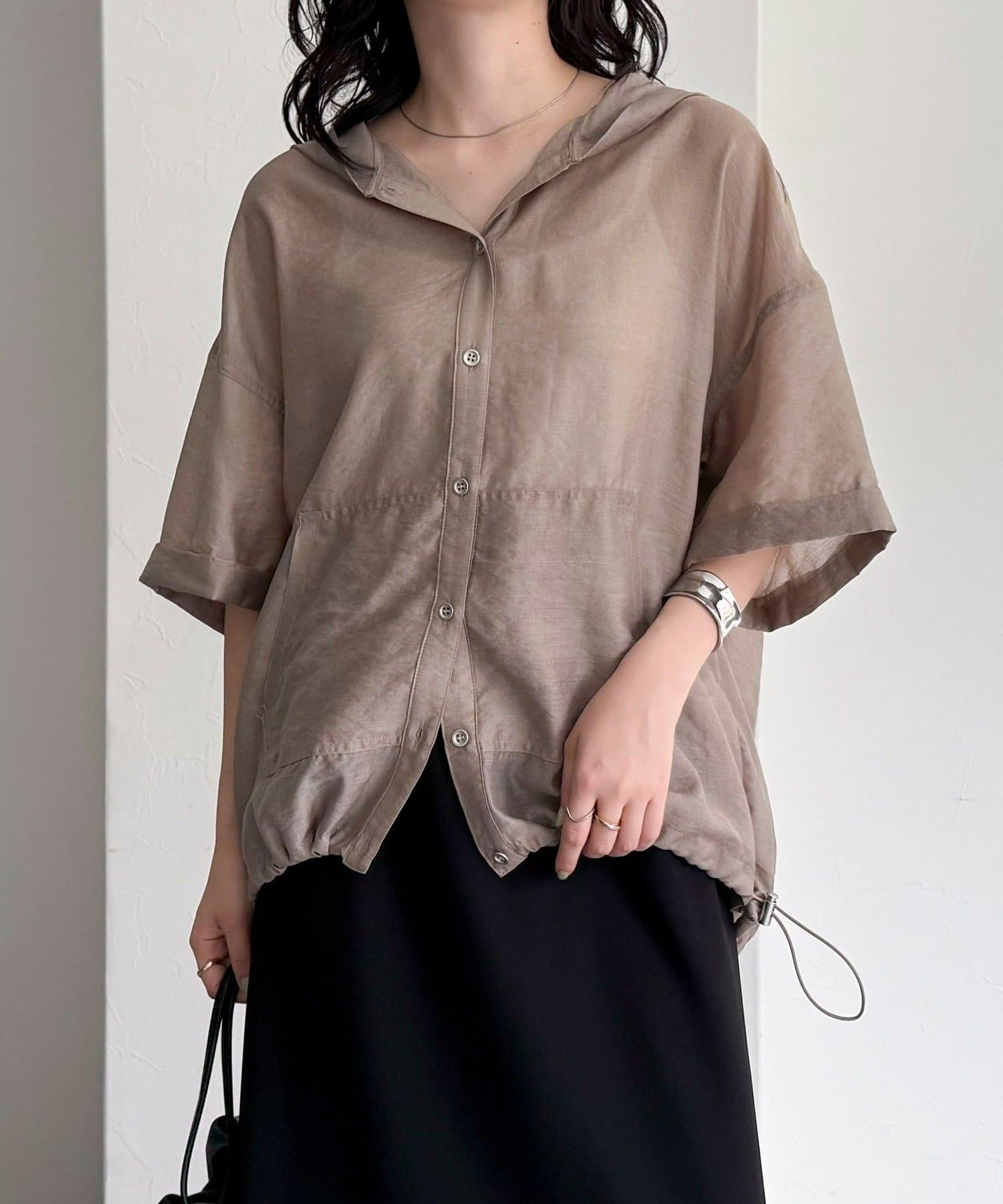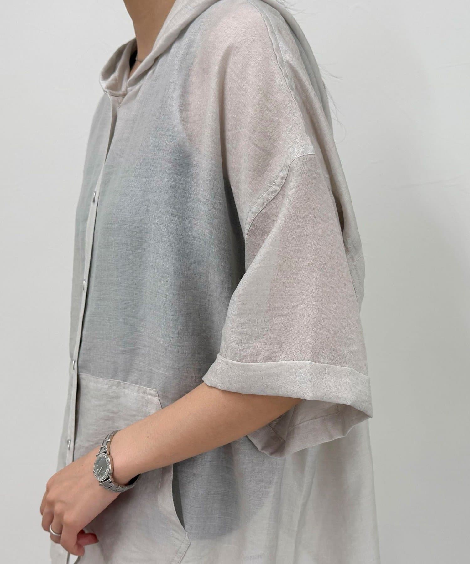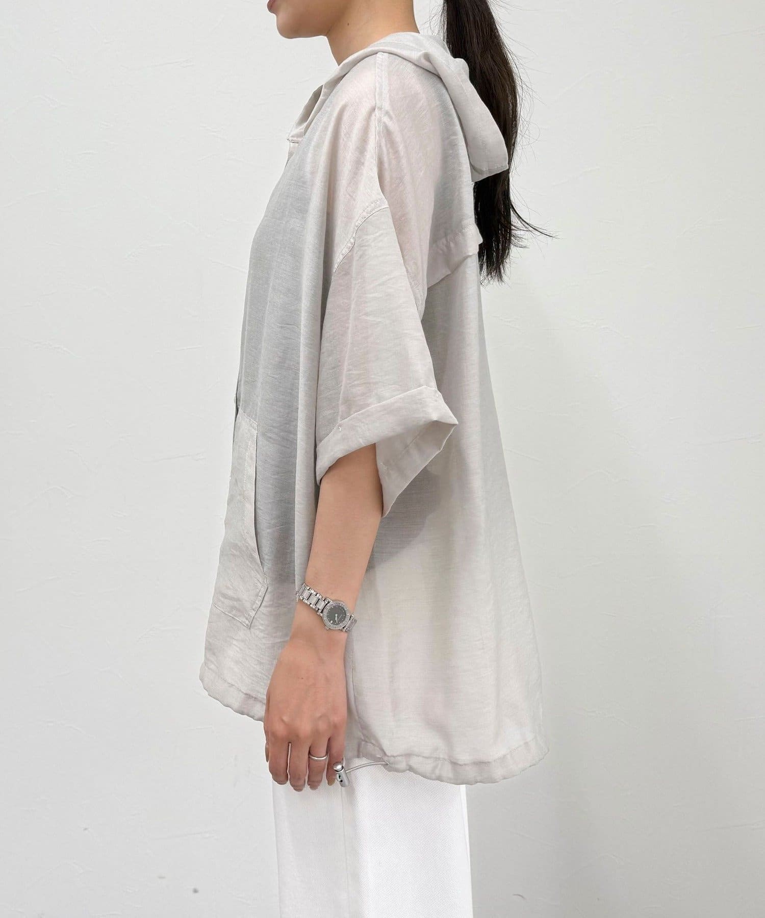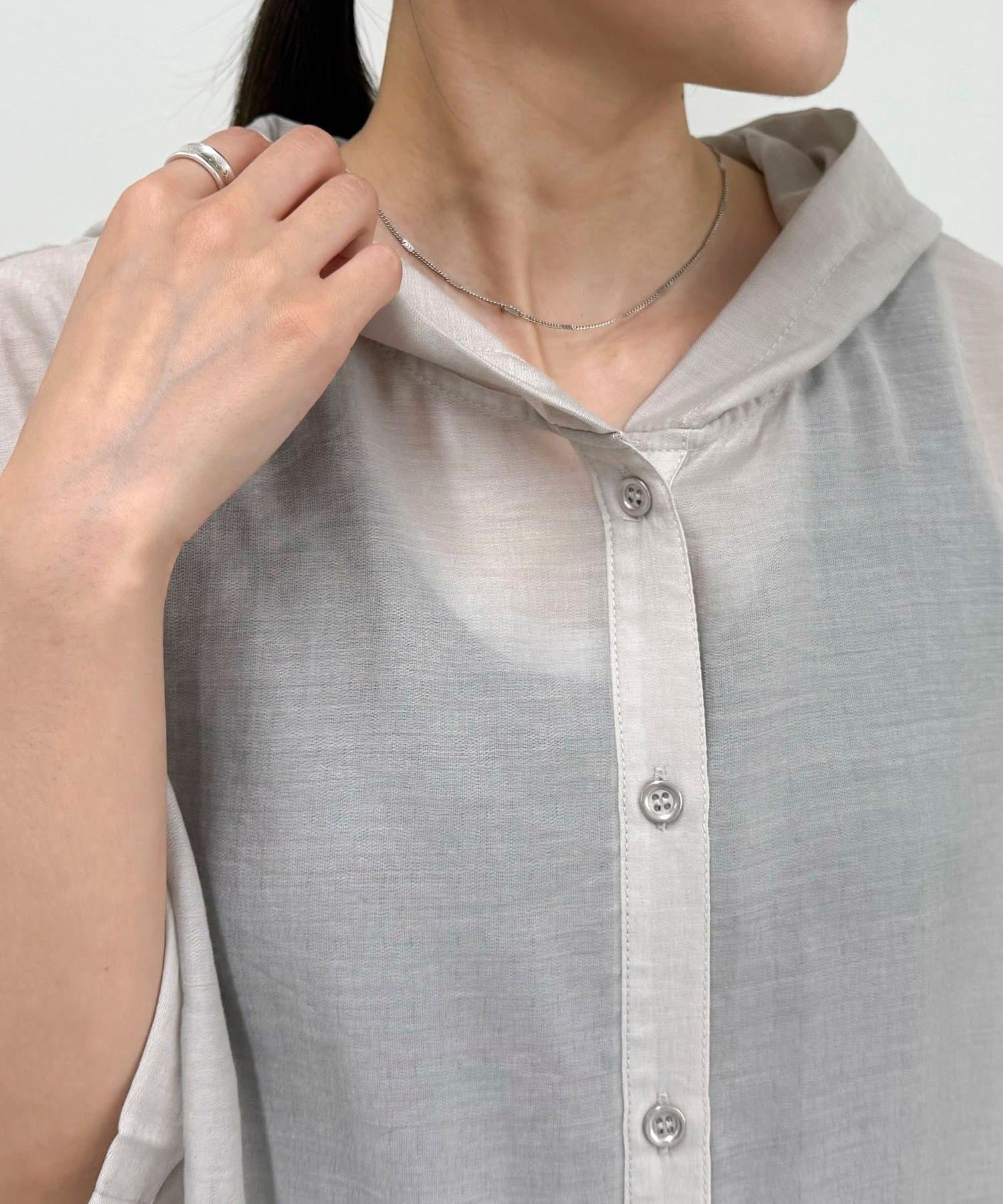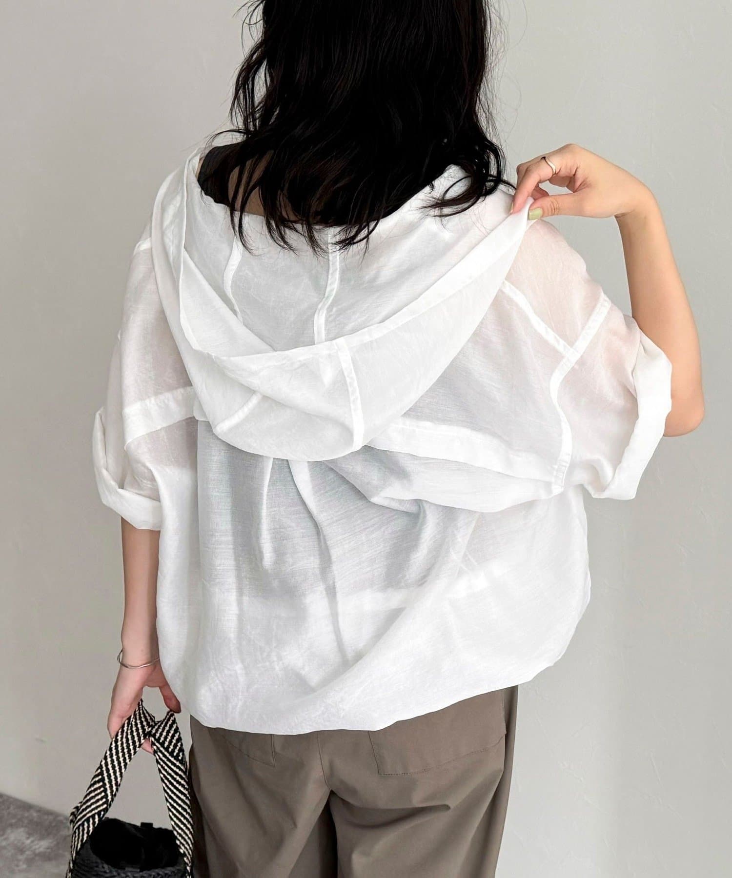 ・軽やかで涼しげな印象を演出するシアー素材のフーディーシャツです