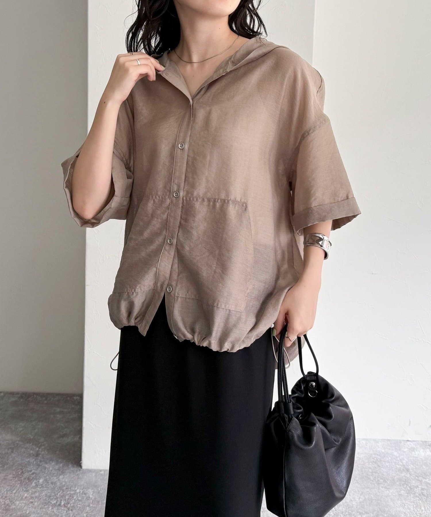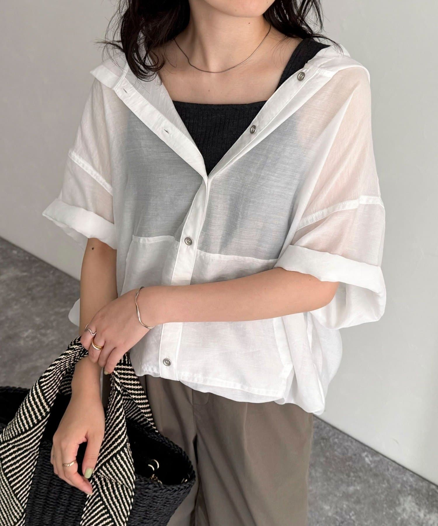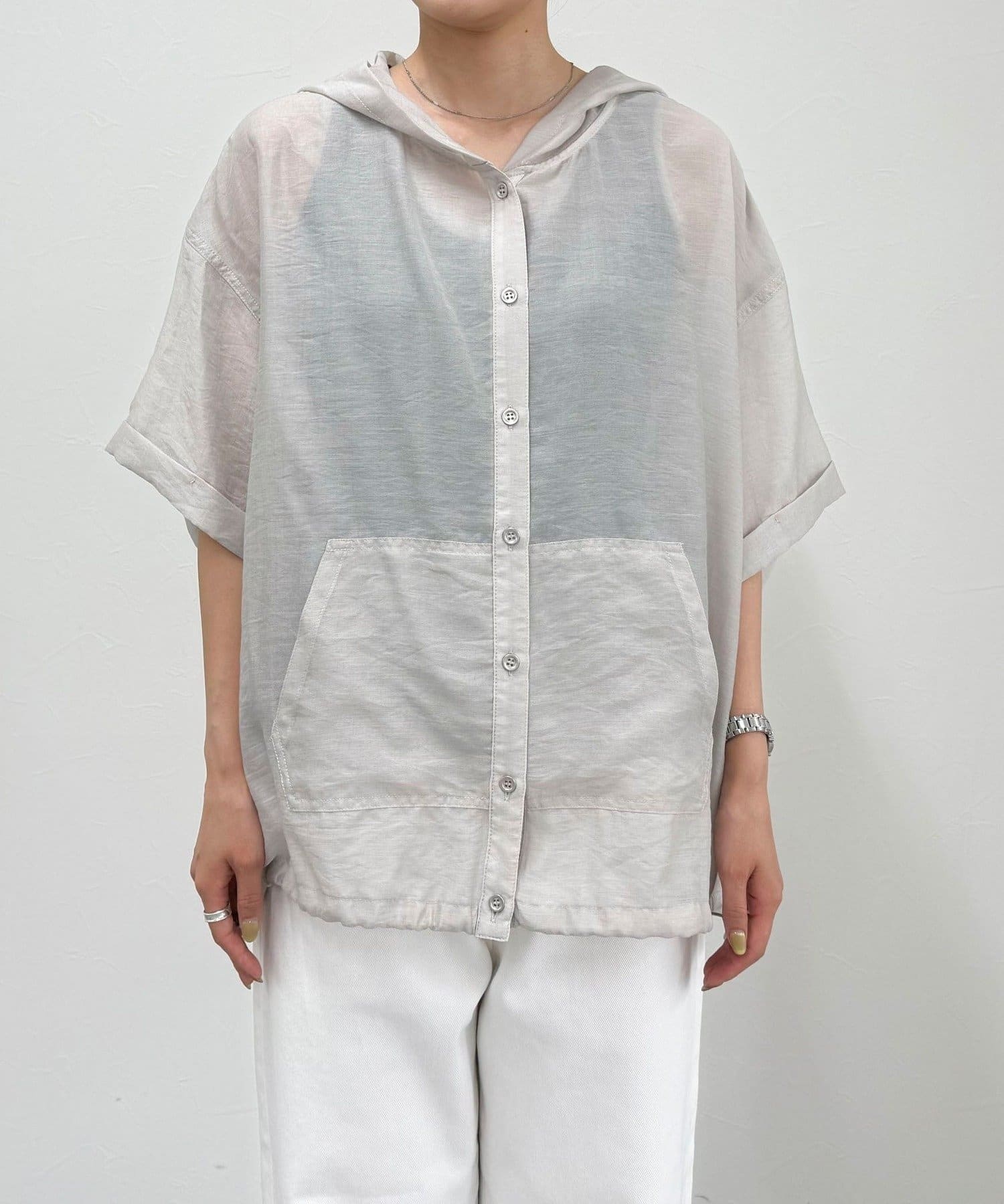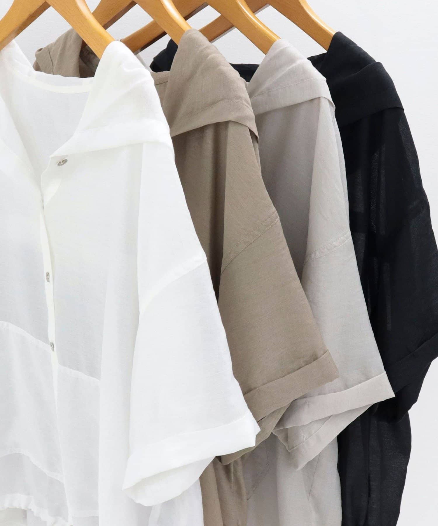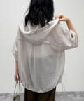 ・軽やかで涼しげな印象を演出するシアー素材のフーディーシャツです