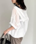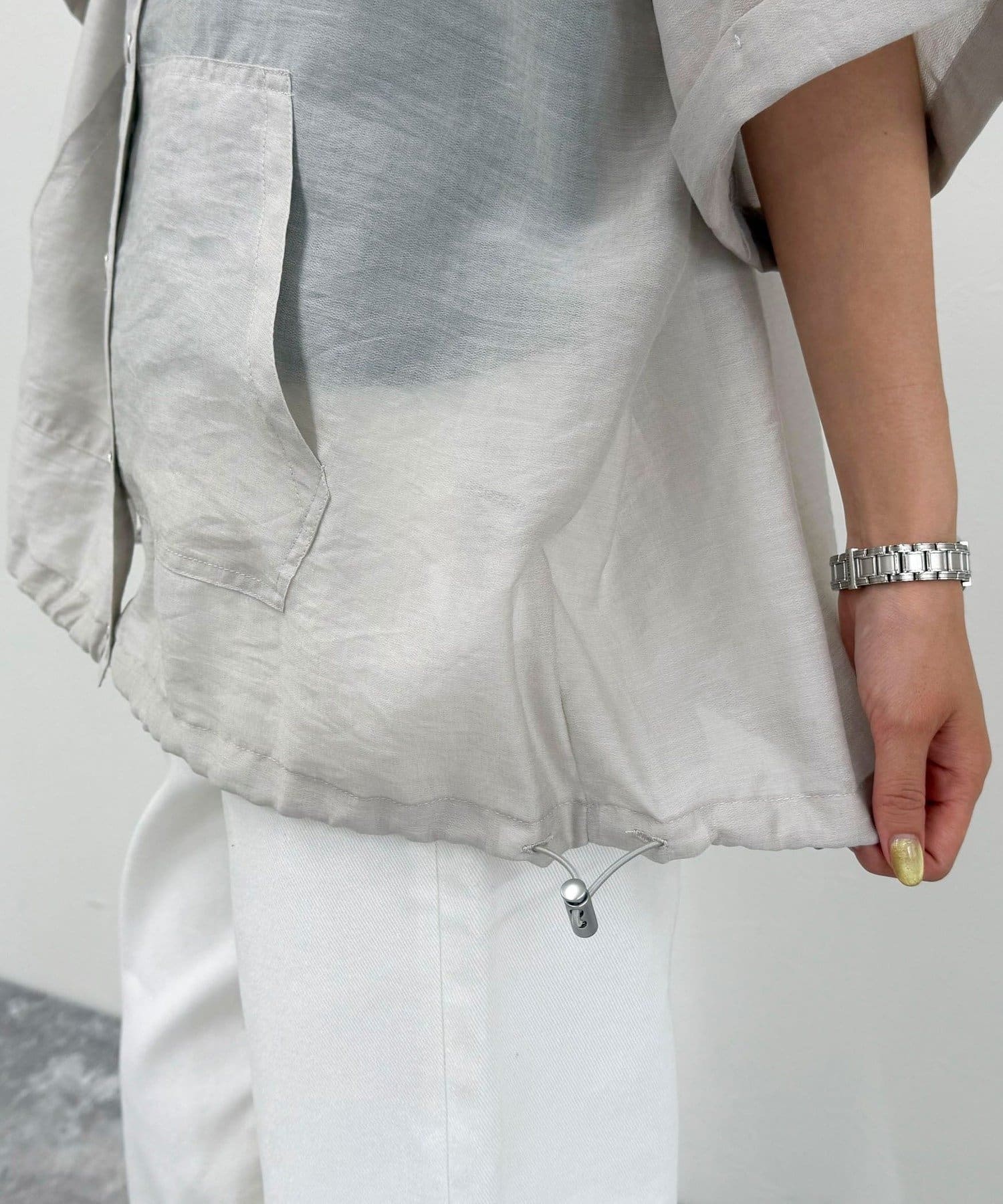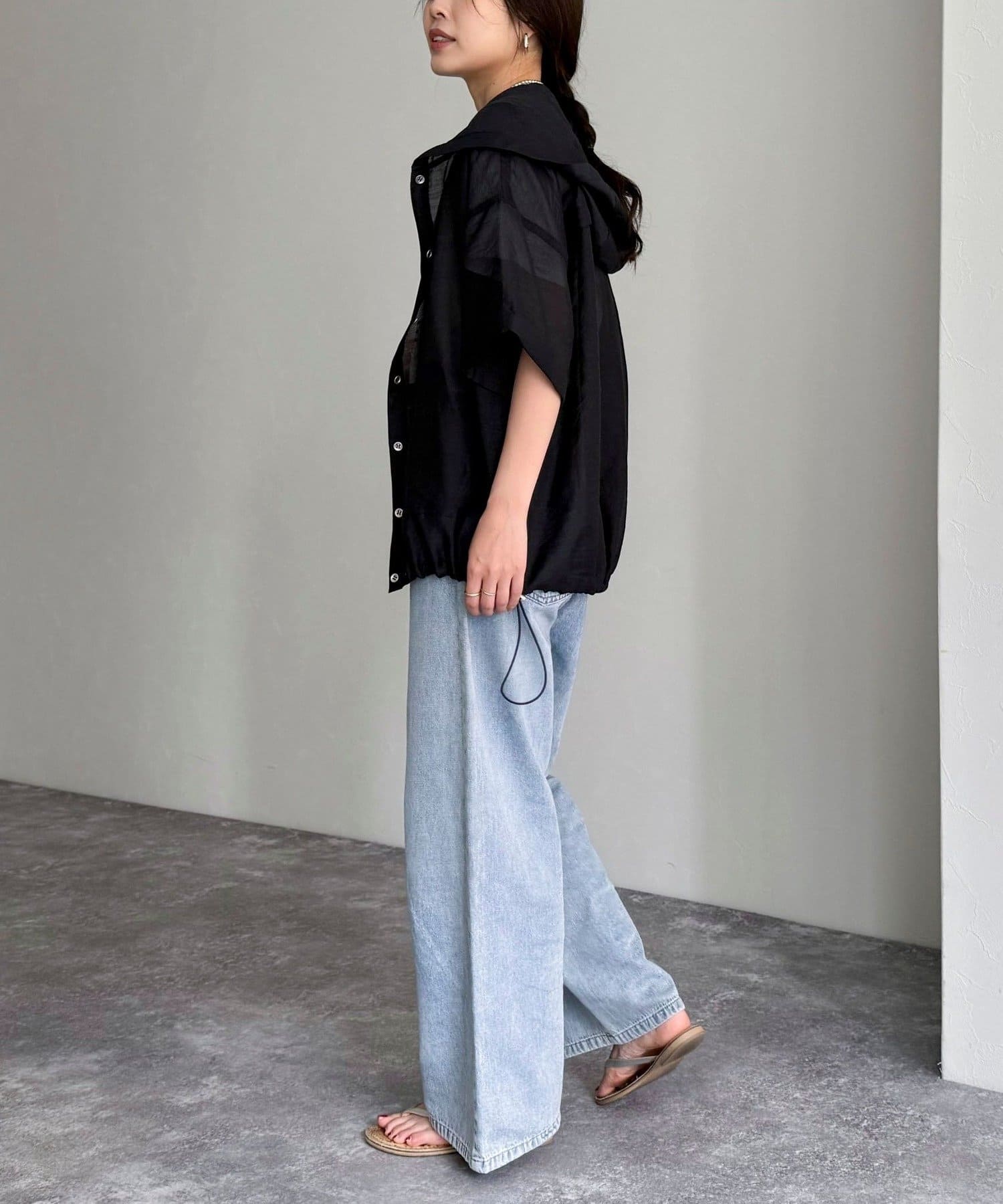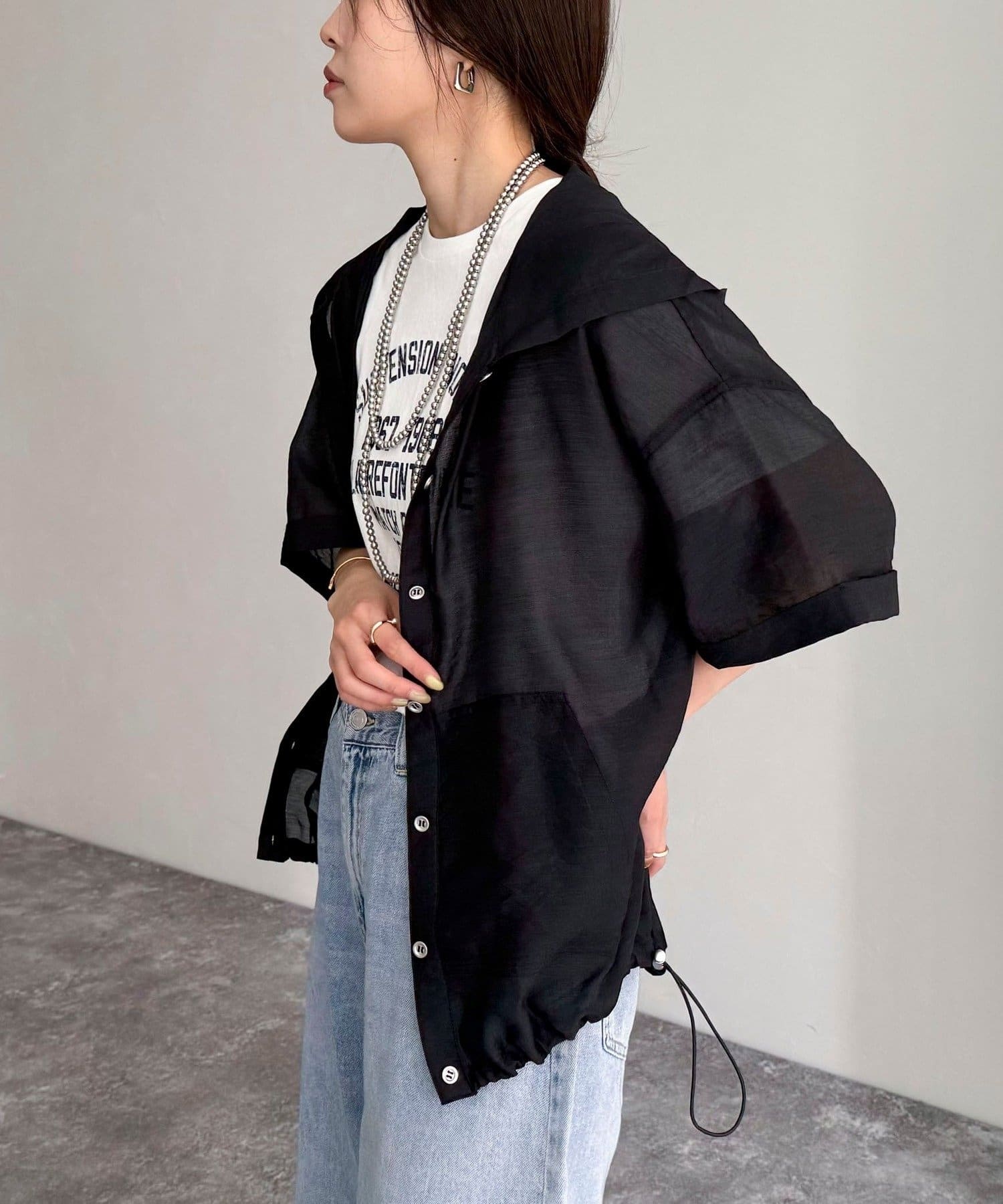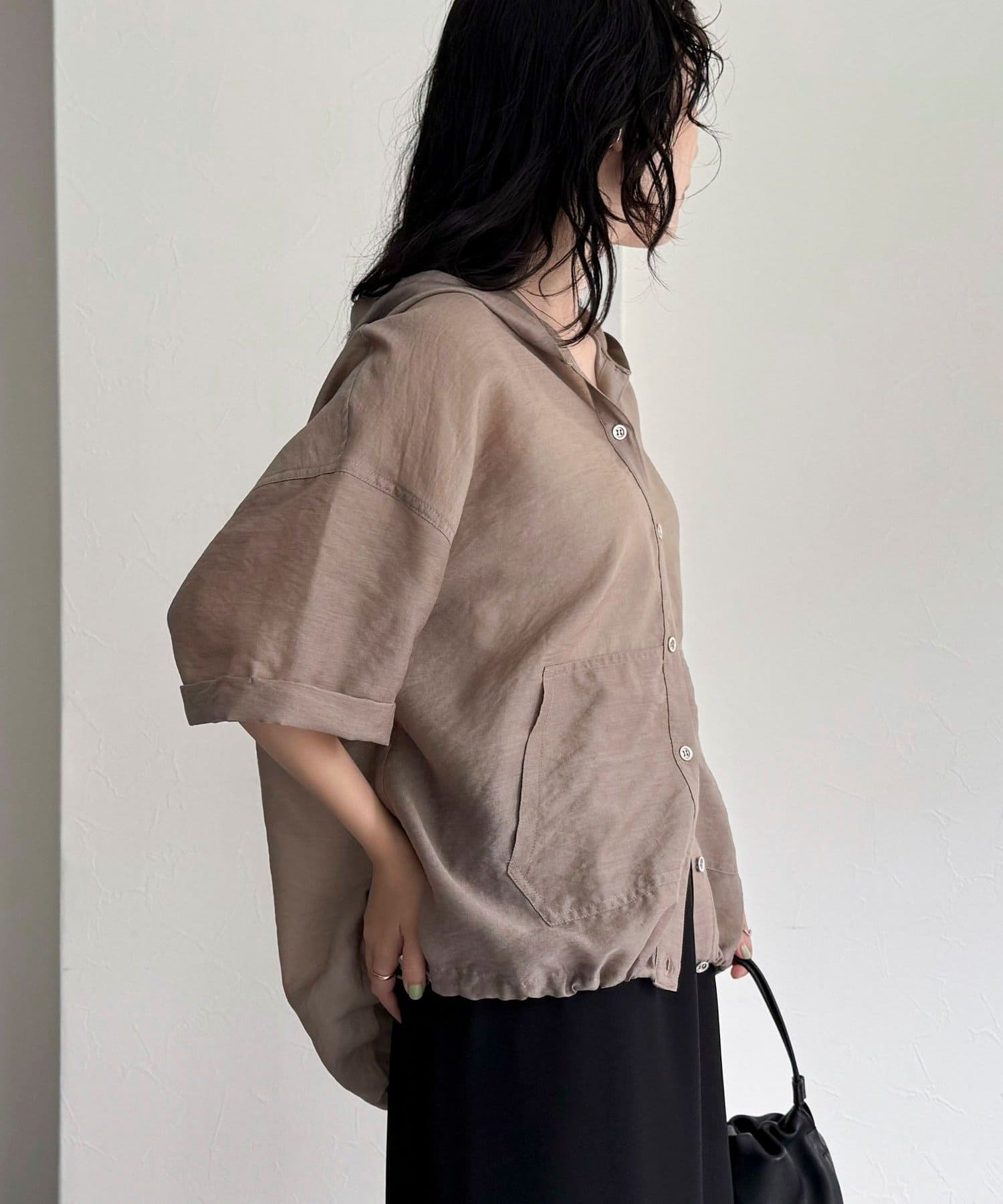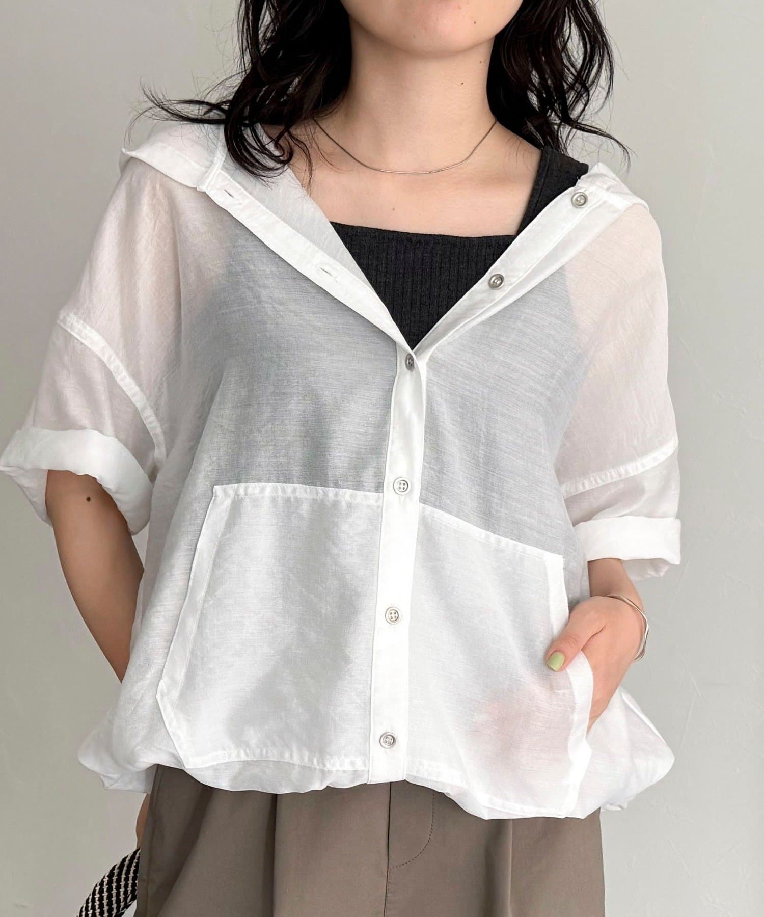 ・軽やかで涼しげな印象を演出するシアー素材のフーディーシャツです