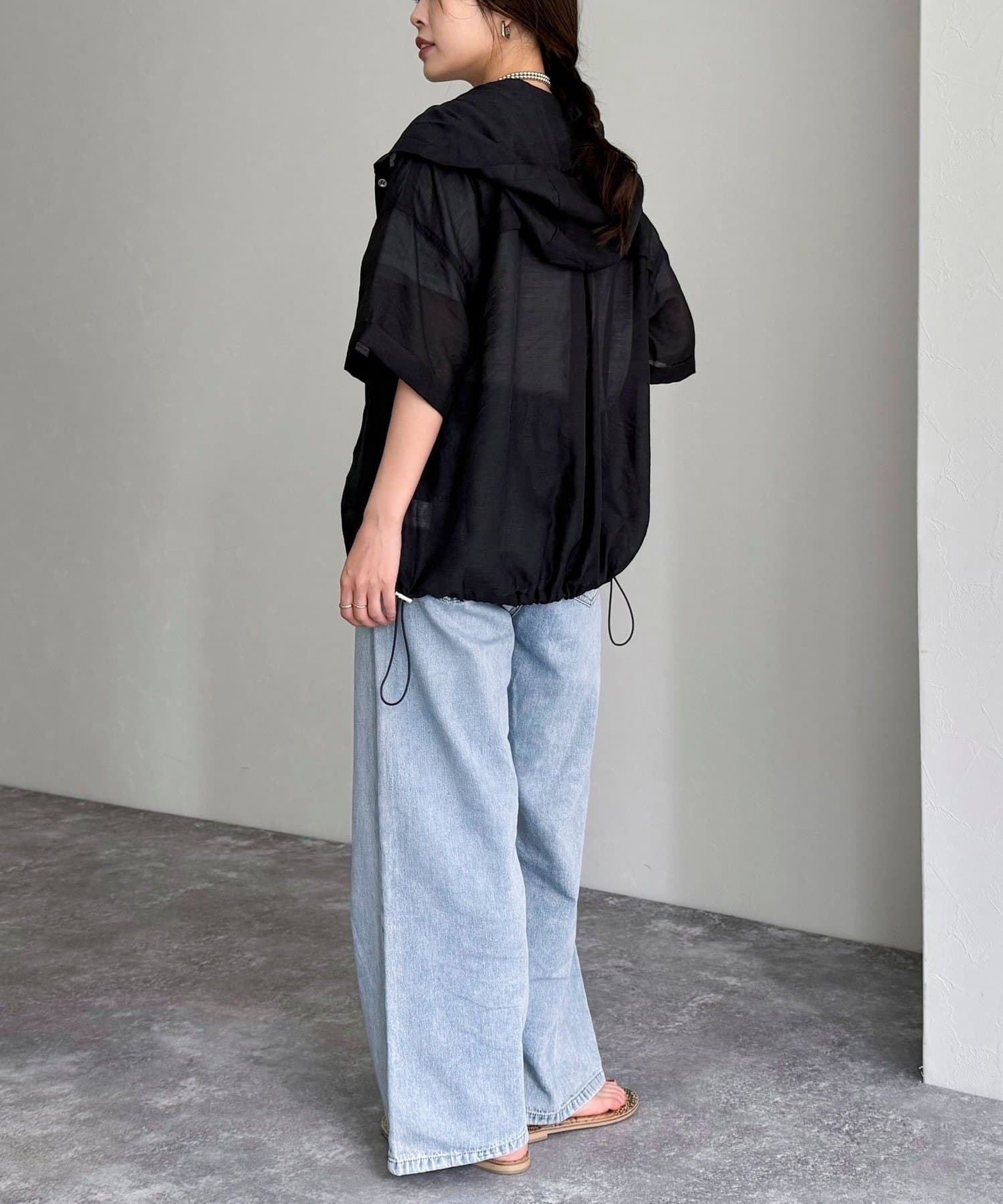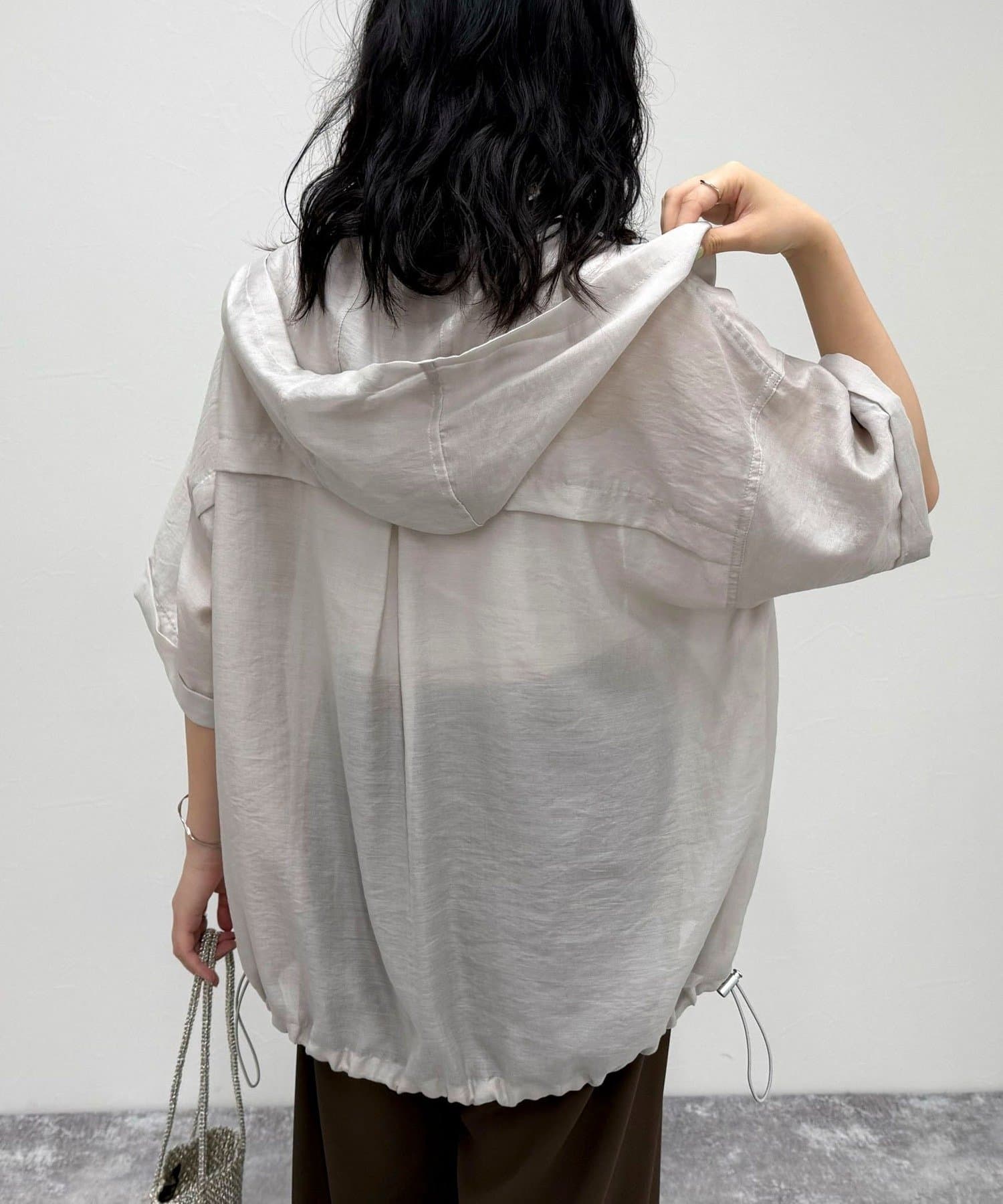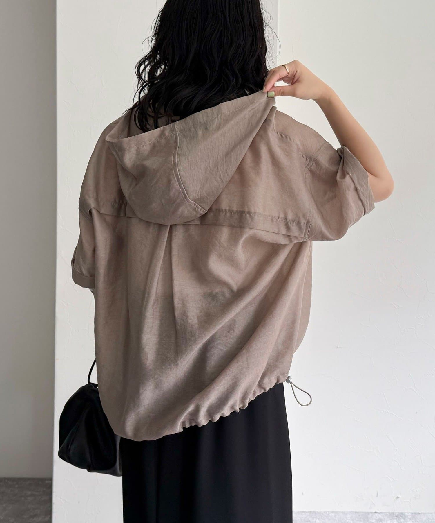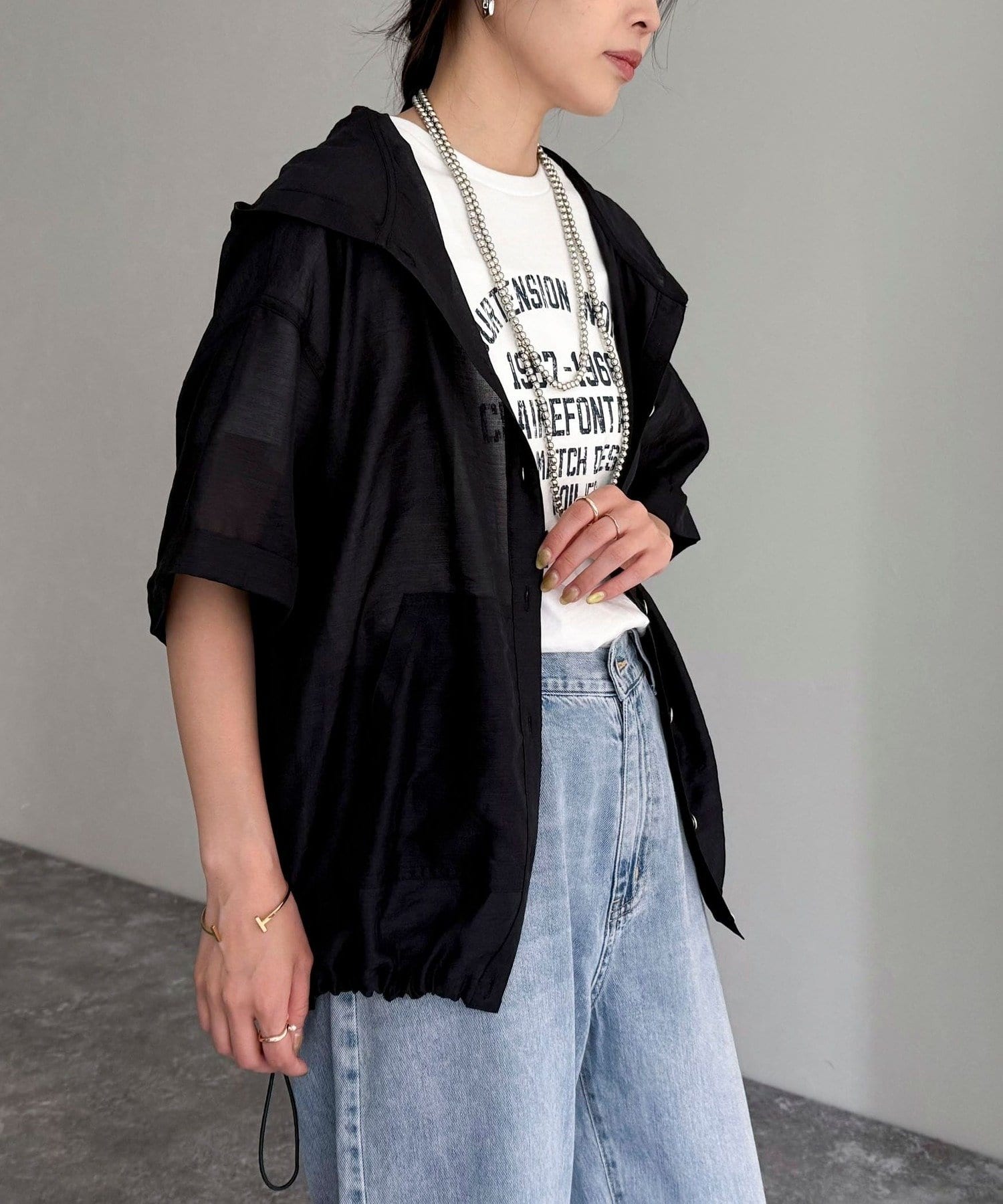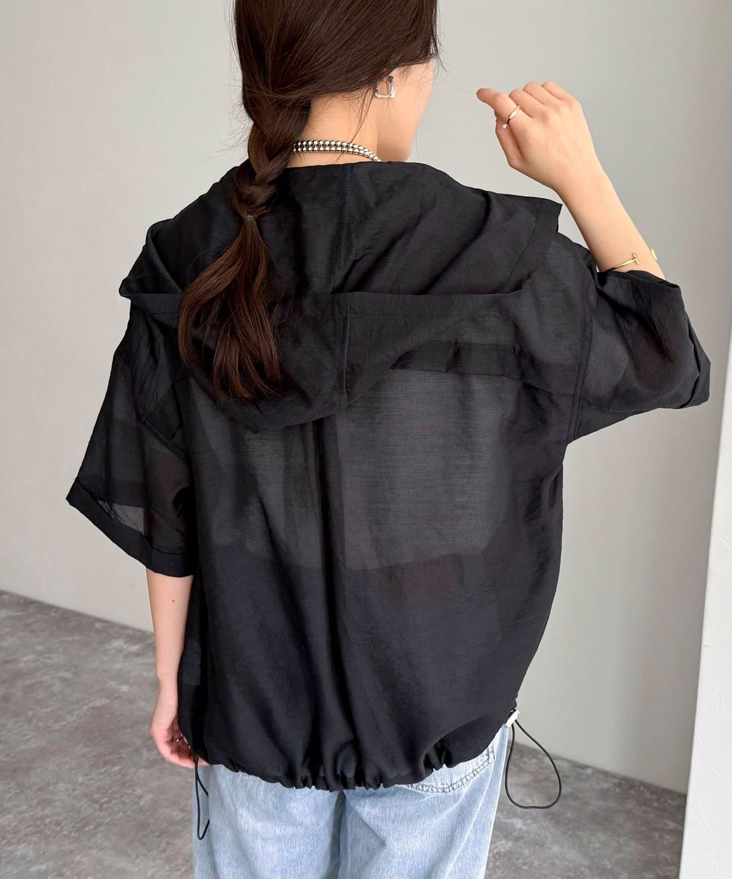 ・カジュアルなフード付きデザインに、上品なシアー素材を組み合わせることで、大人が楽しめるバランスの取れた1枚に仕上がりました