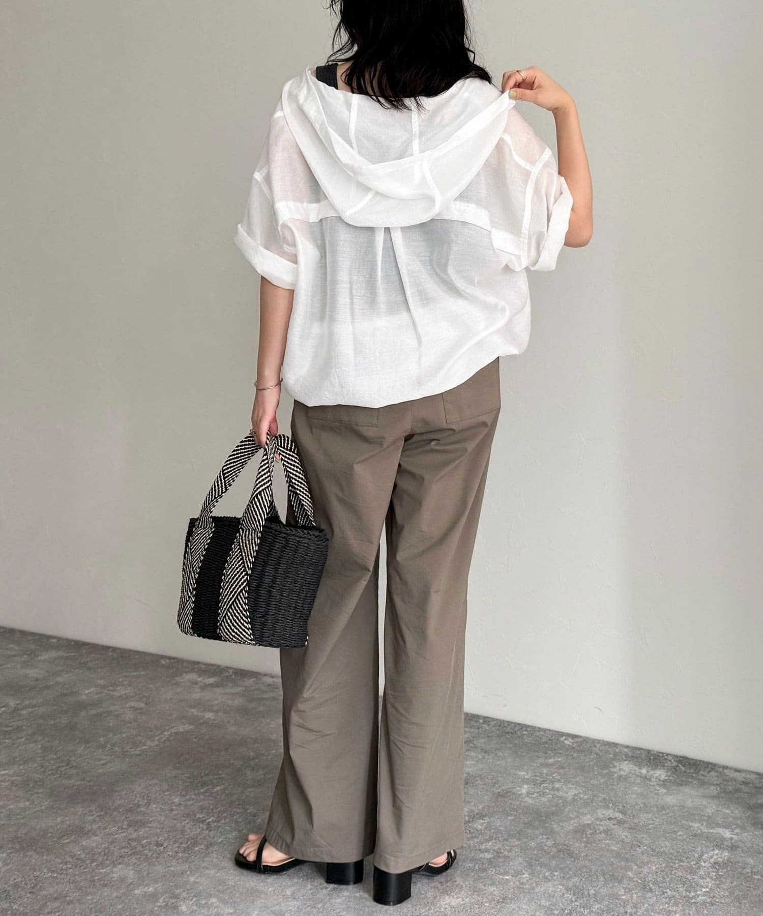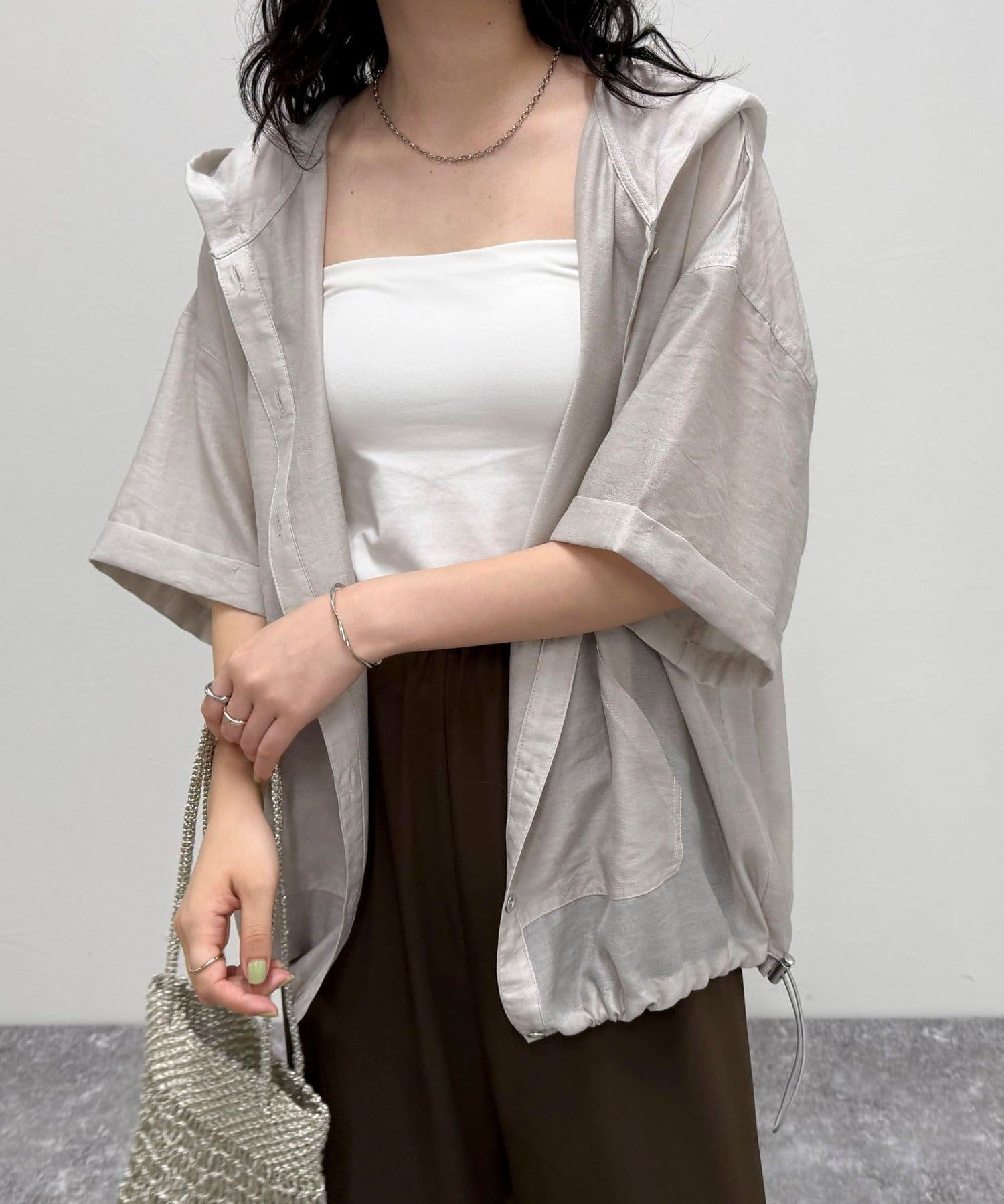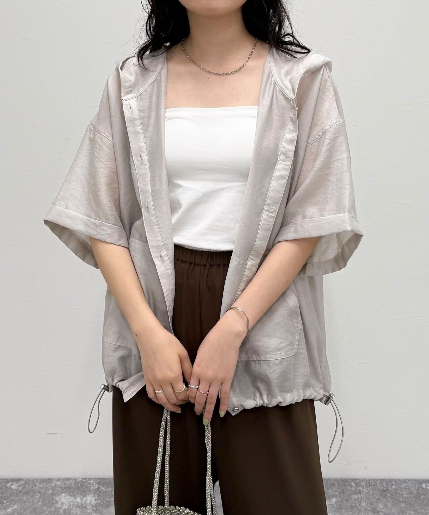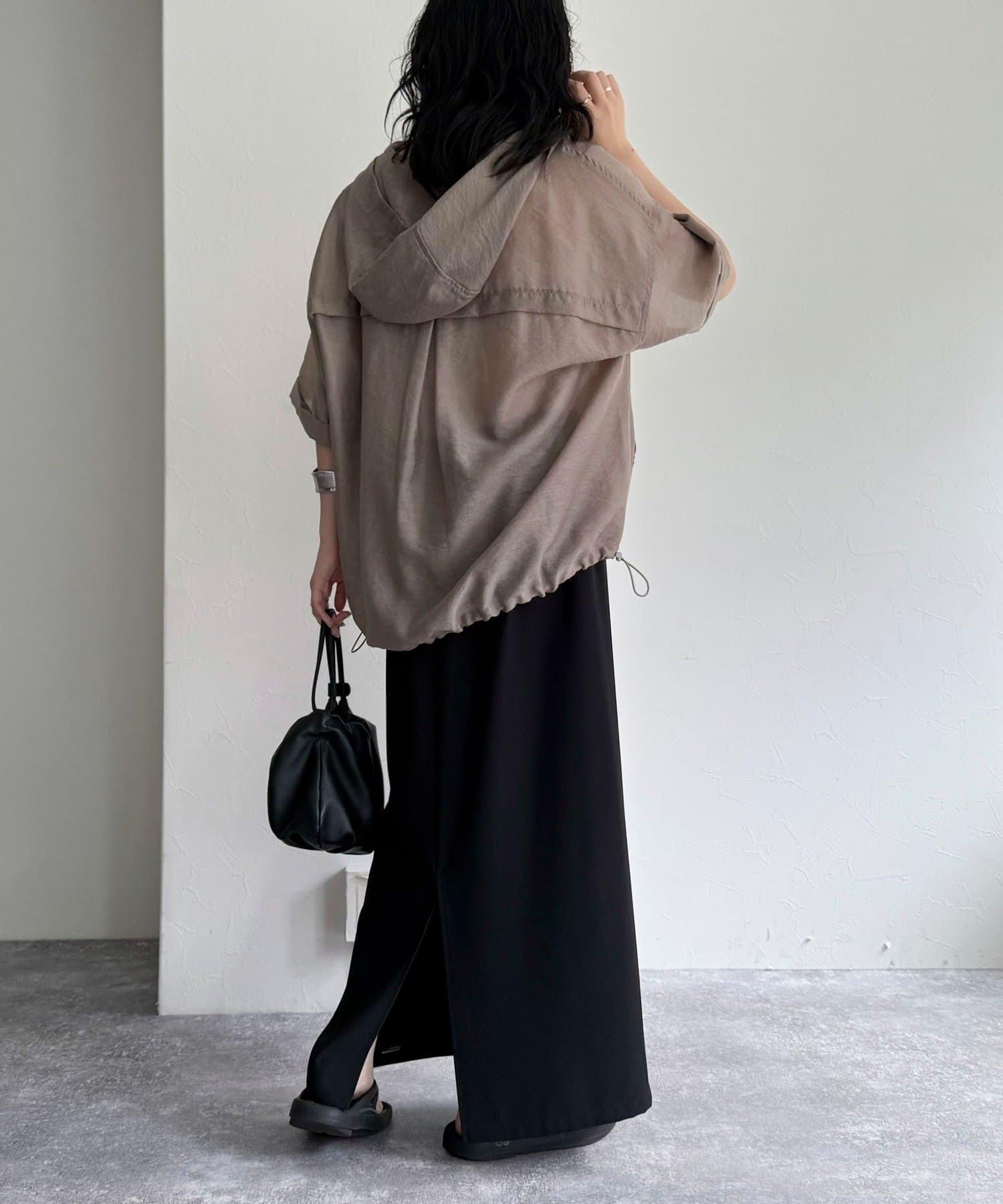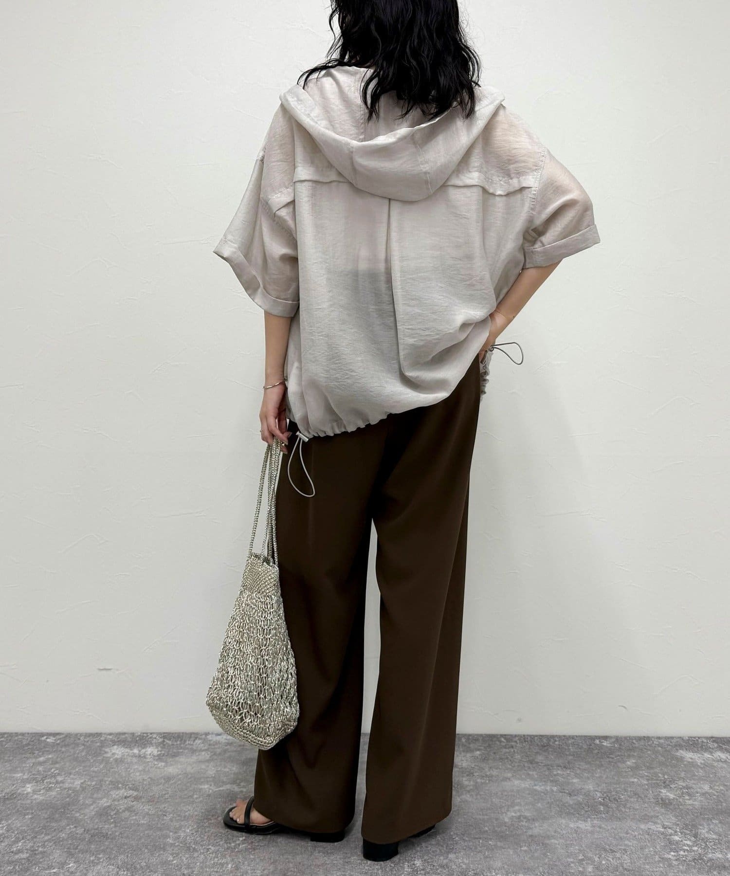 ・カジュアルなフード付きデザインに、上品なシアー素材を組み合わせることで、大人が楽しめるバランスの取れた1枚に仕上がりました