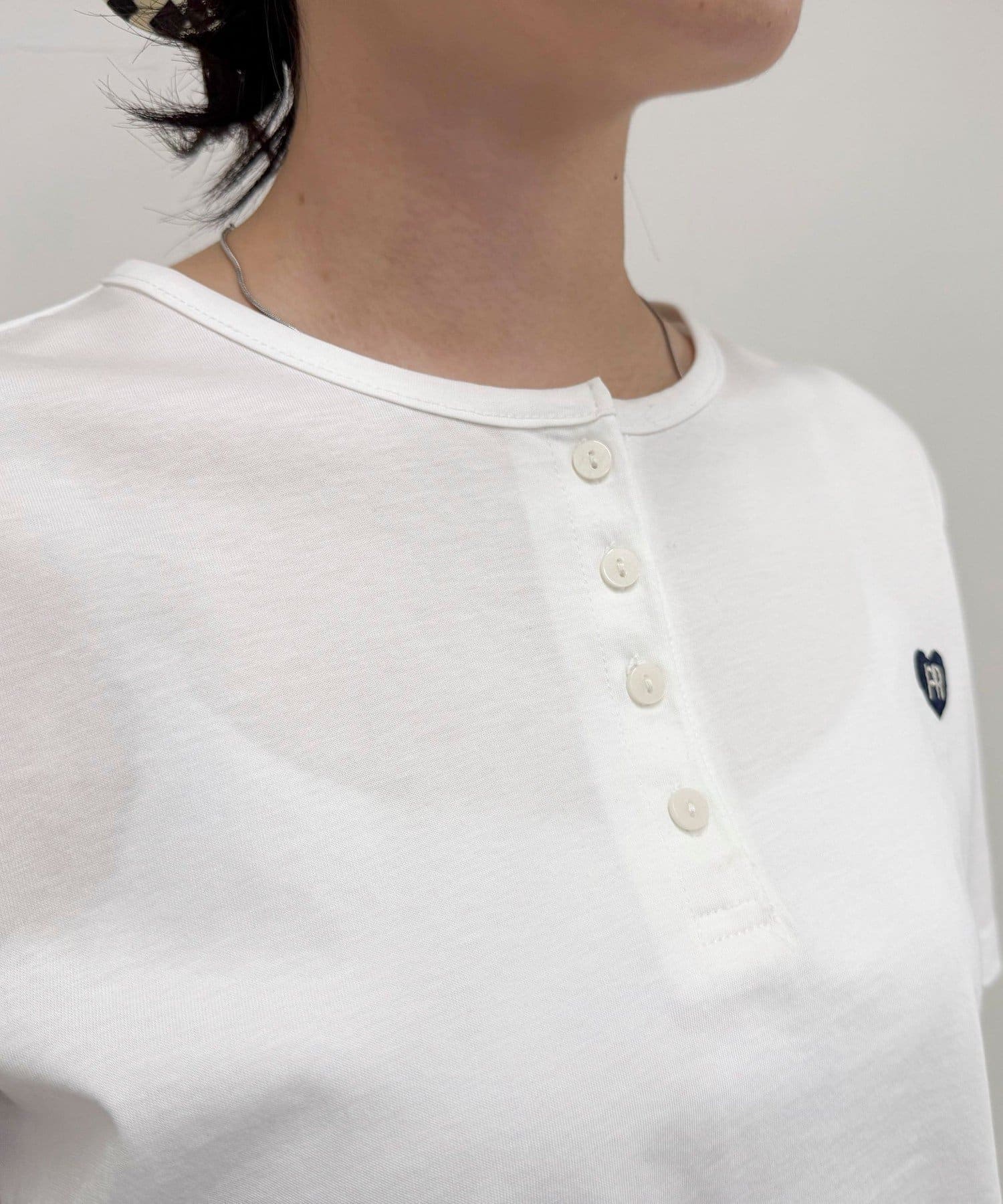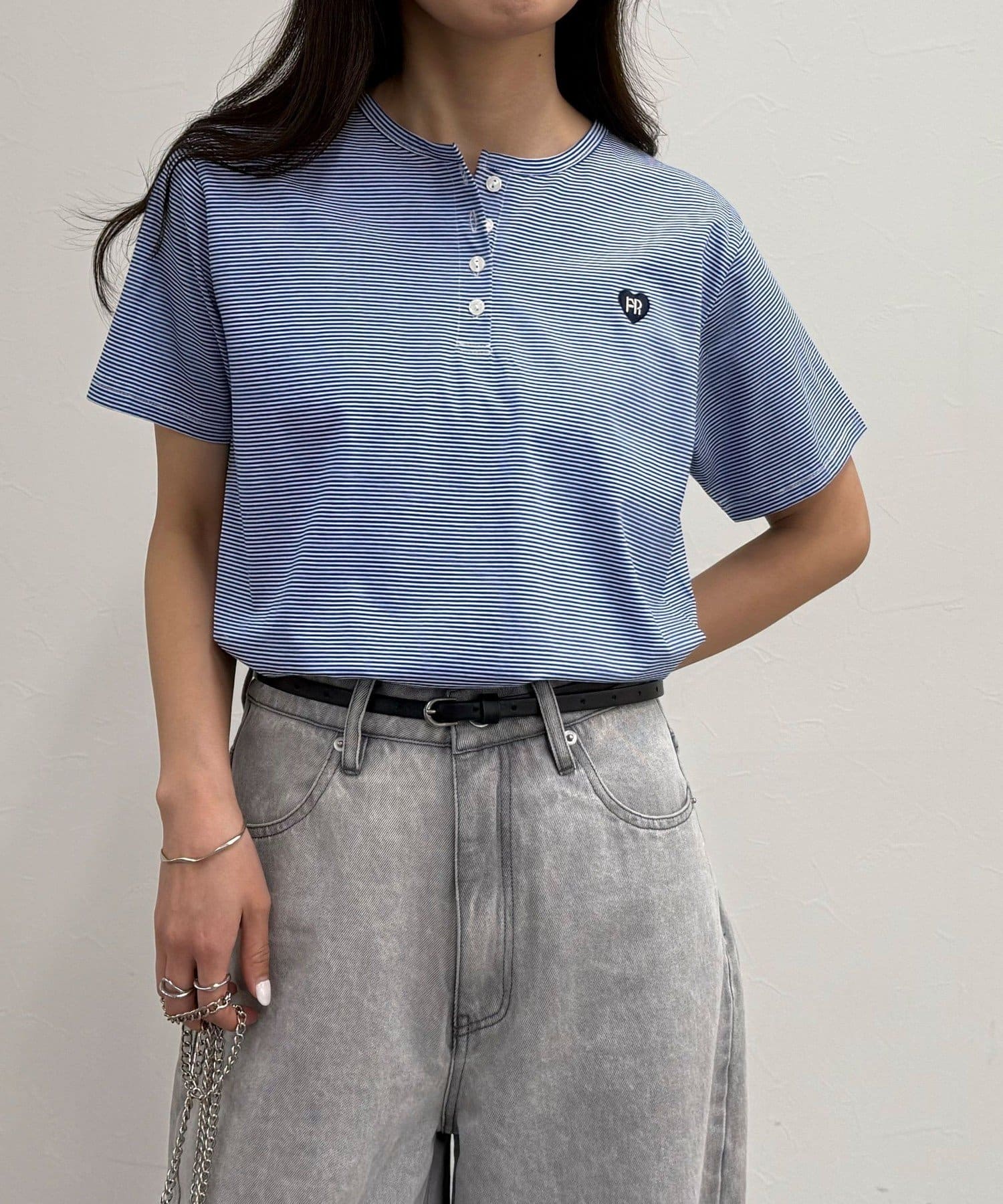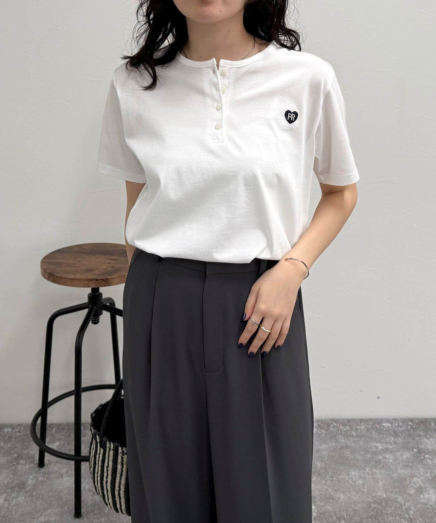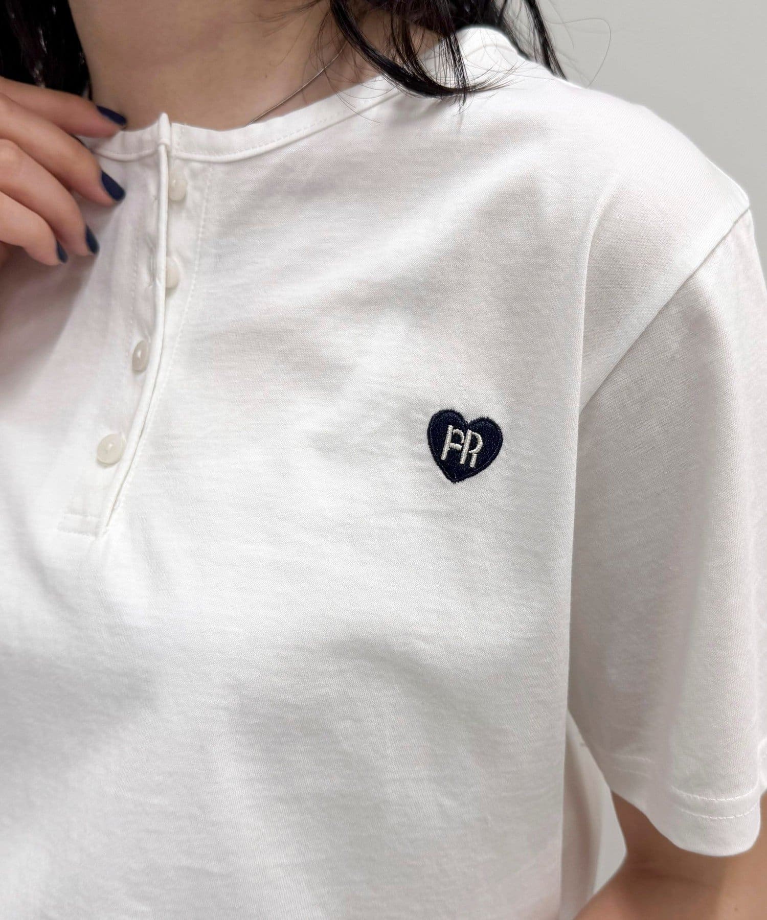 ・左胸のハートFR刺繍がワンポイントで可愛いヘンリーTシャツです