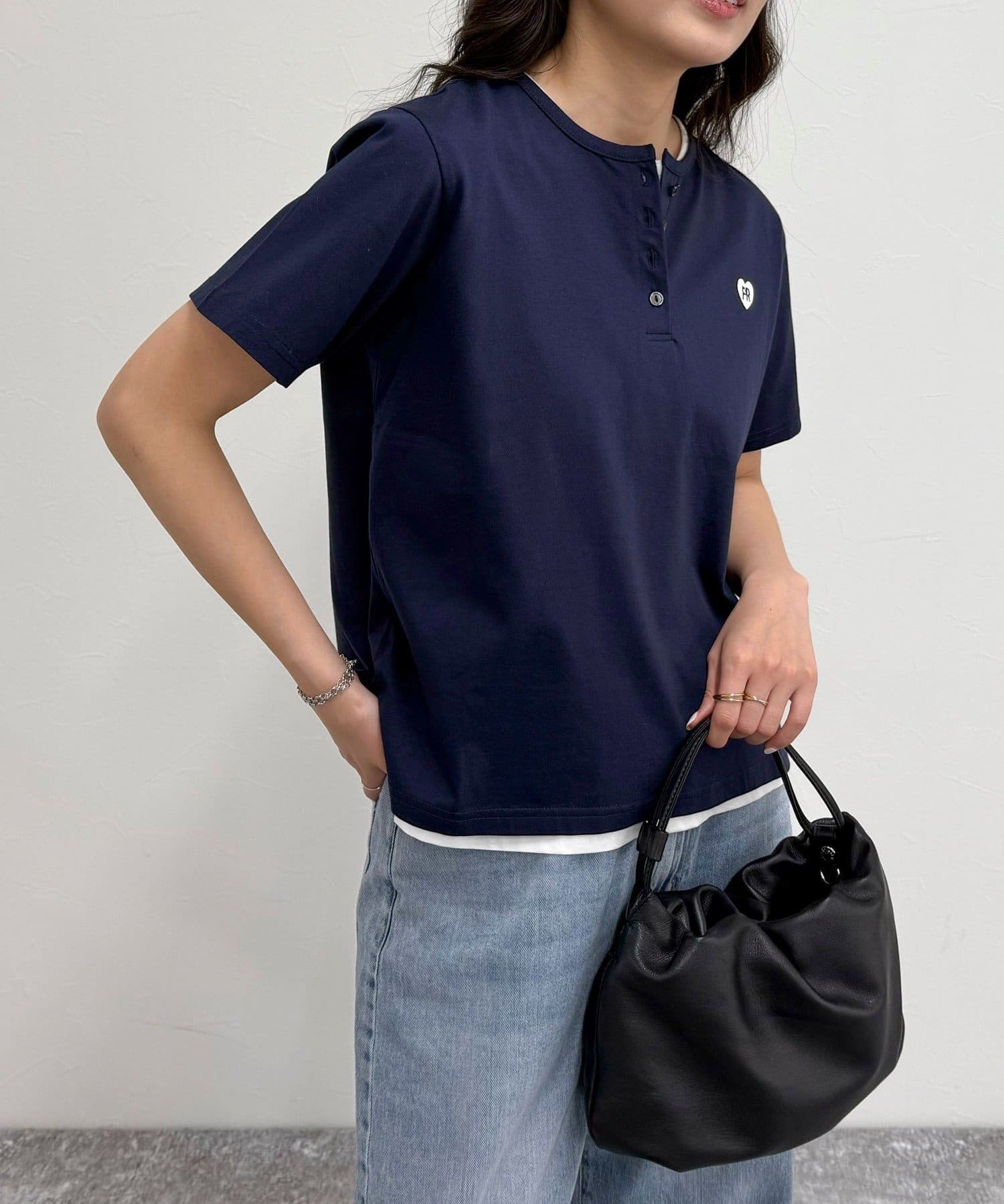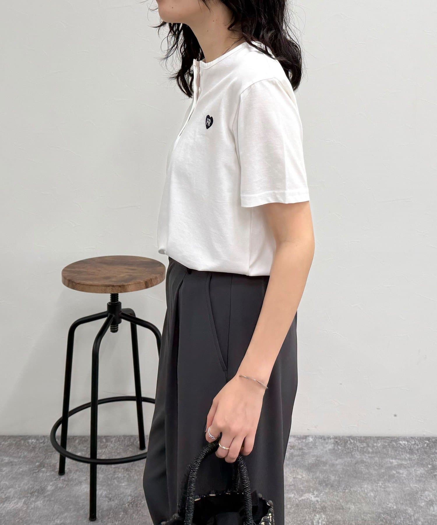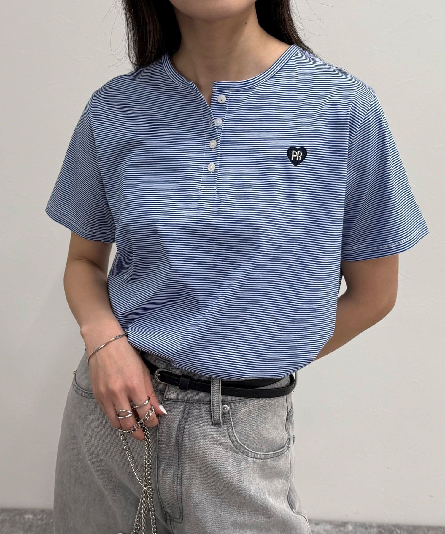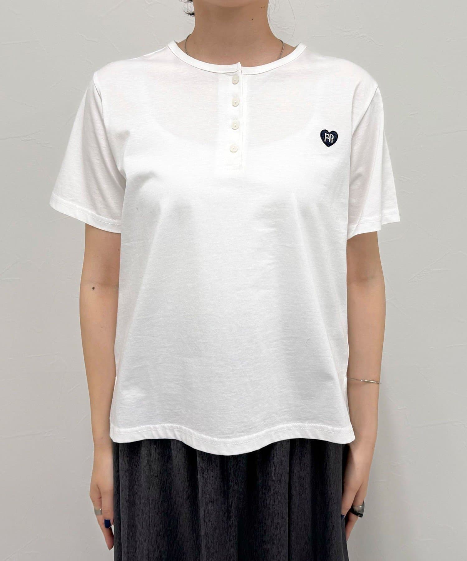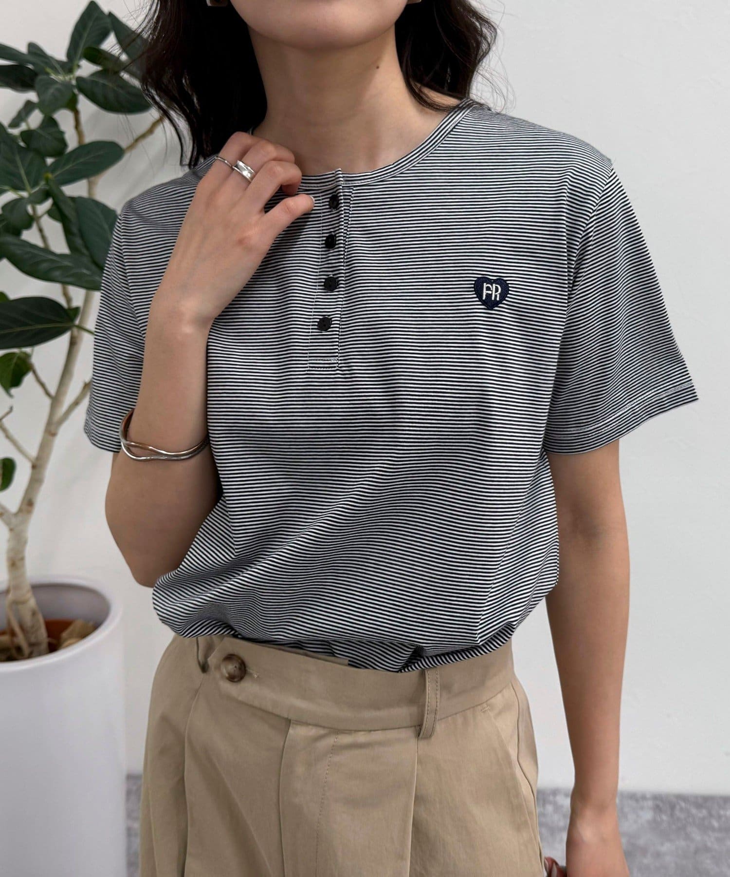 ・左胸のハートFR刺繍がワンポイントで可愛いヘンリーTシャツです