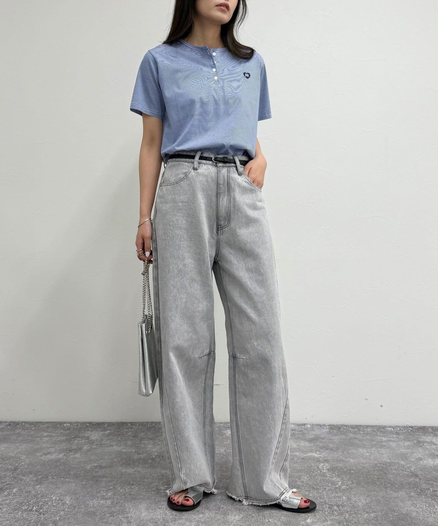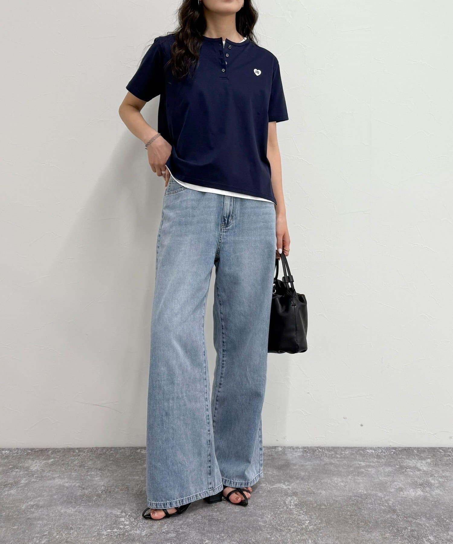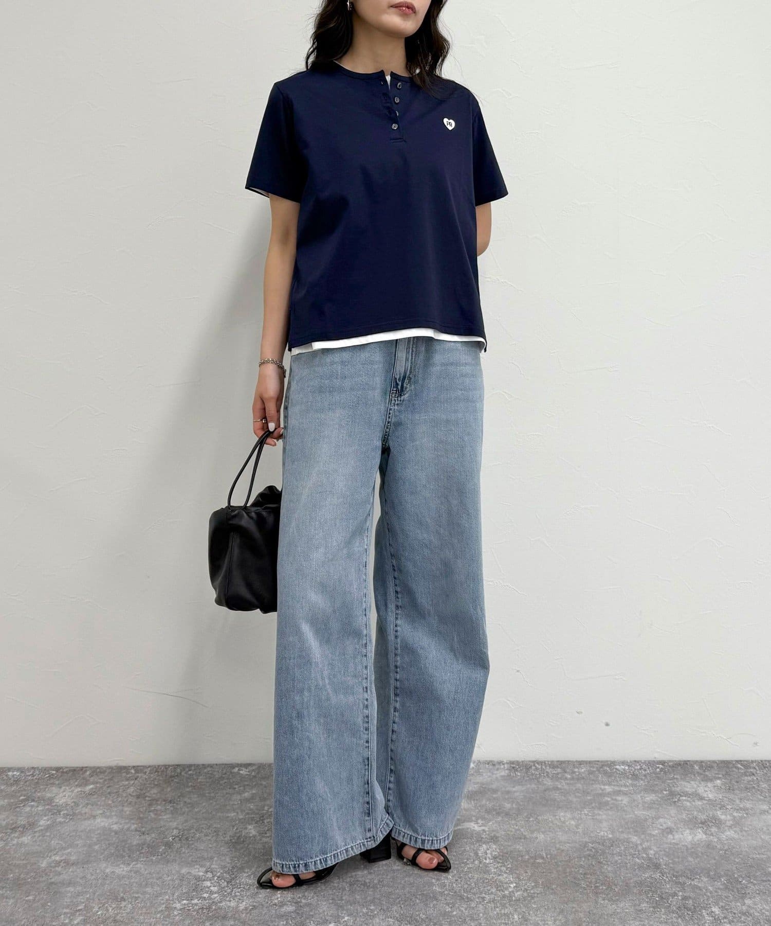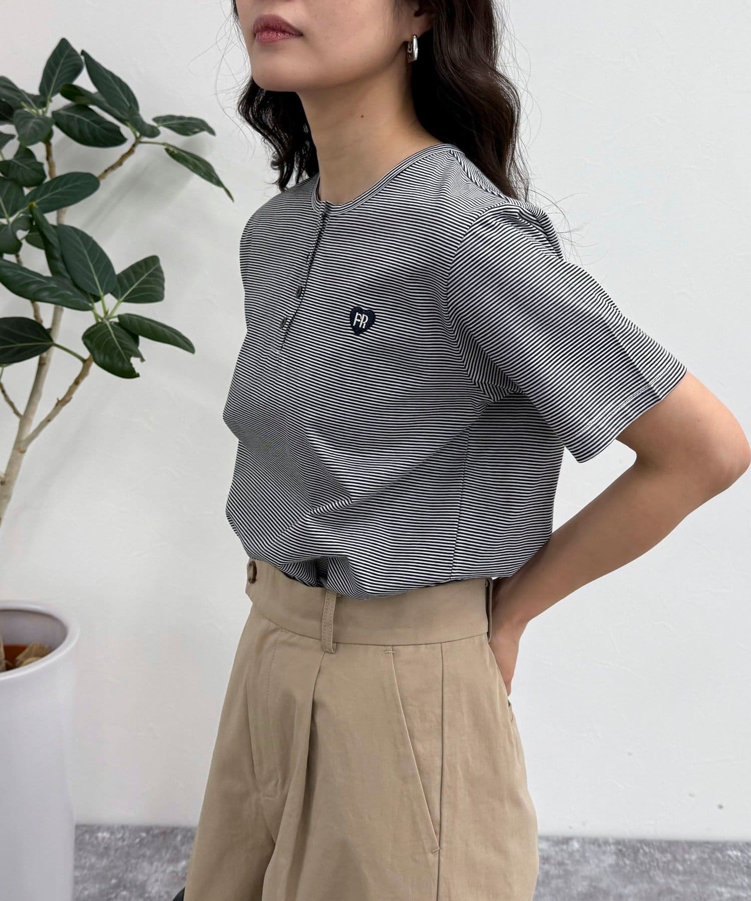 ・左胸のハートFR刺繍がワンポイントで可愛いヘンリーTシャツです