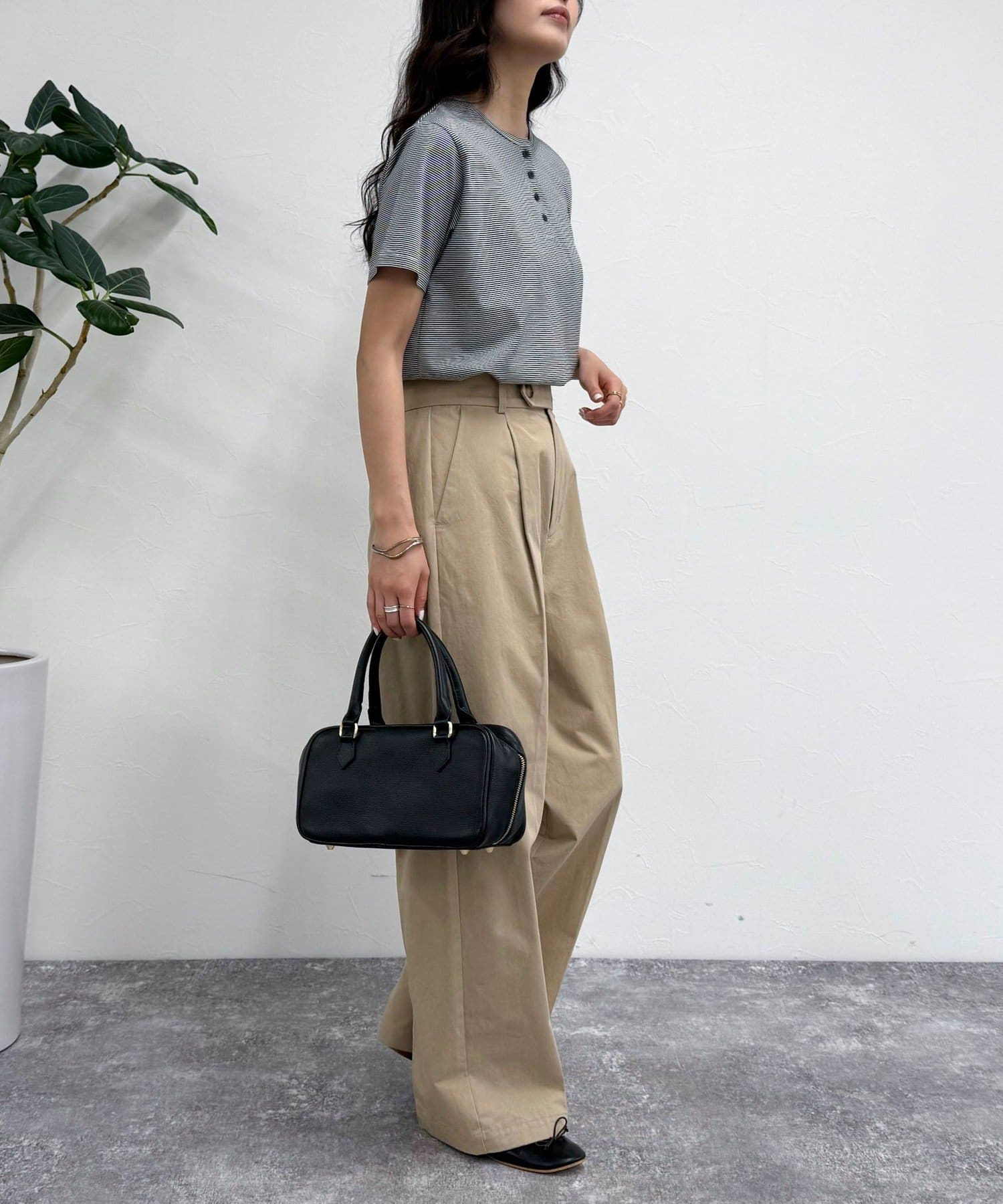・ヘンリーネックでボタンの開閉で着こなしの印象を変えて着用していただけます