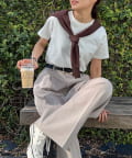 ・シンプルにスラックスパンツを合わせたり、レーススカートとカジュアルに着こなすのがオススメです