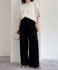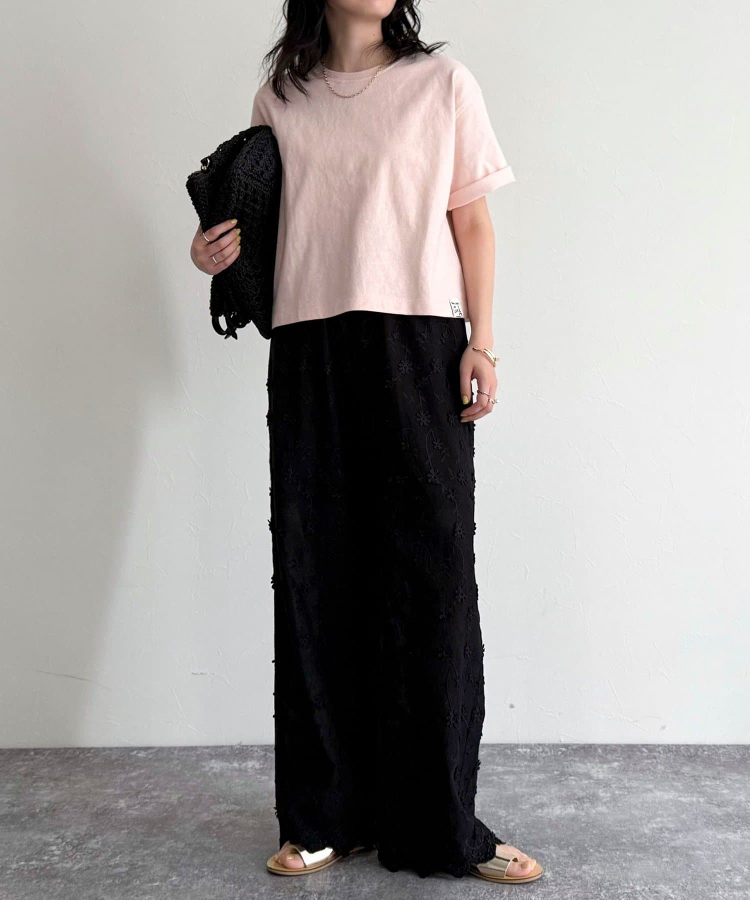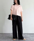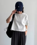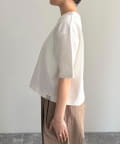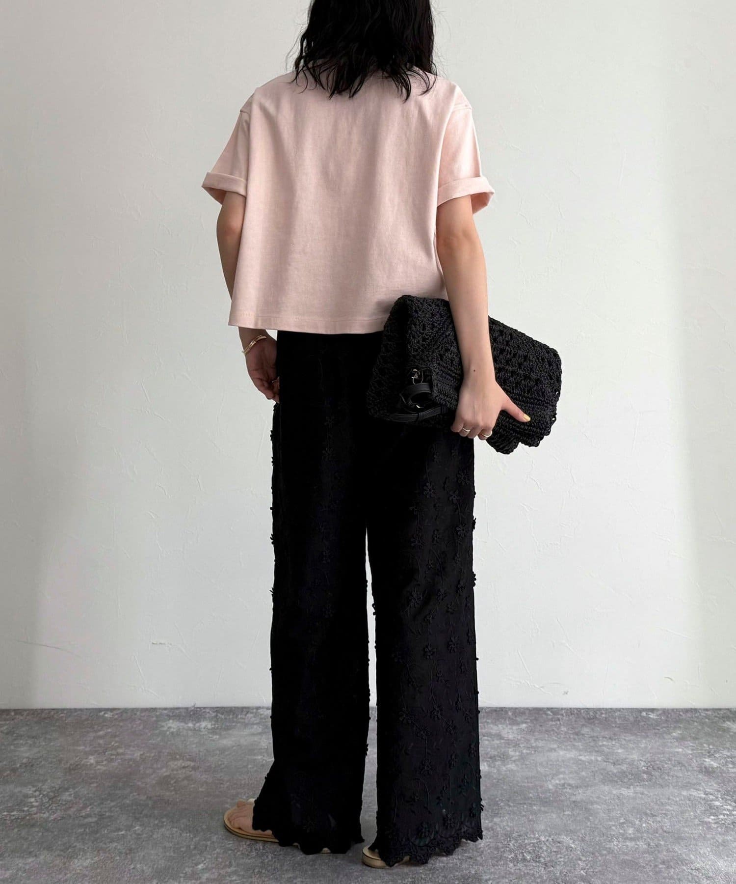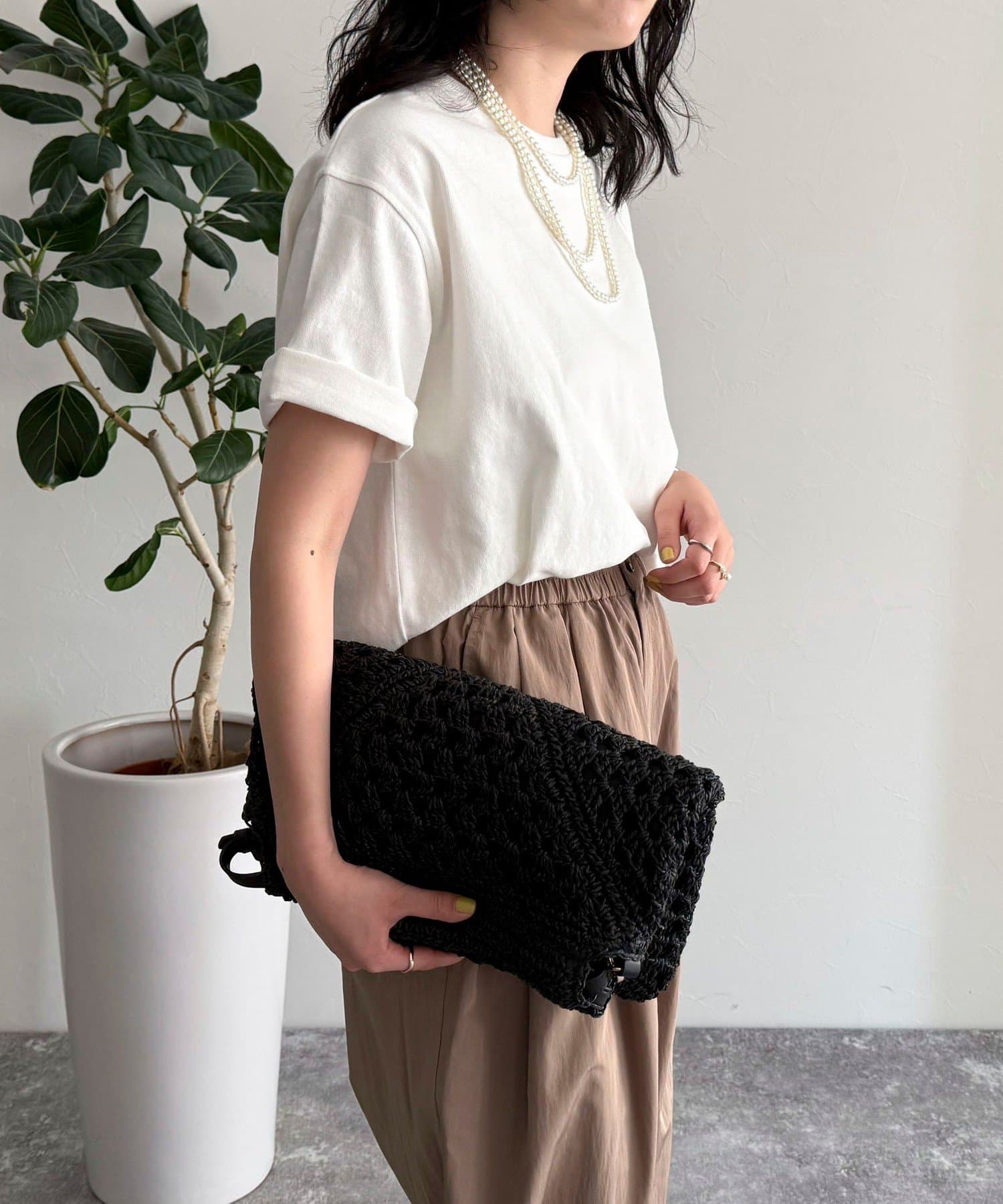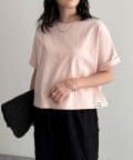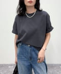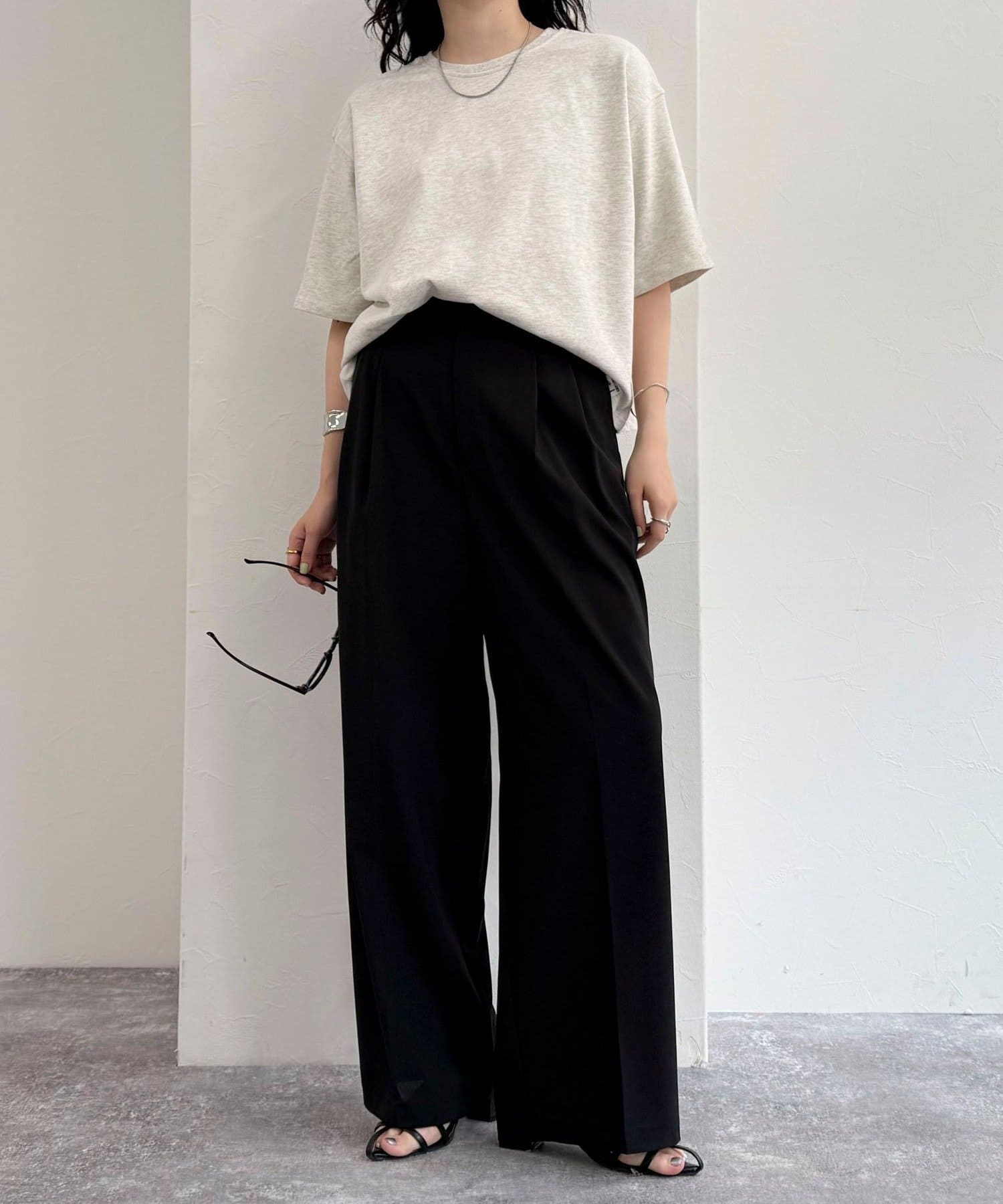 ・首元はすっきりとしたクルーネックで、ネックレスなどのアクセサリーも映えます