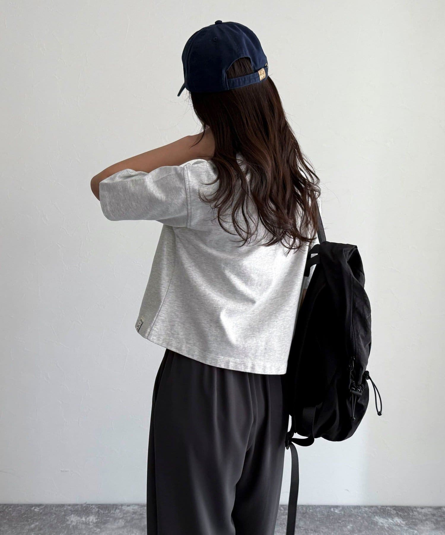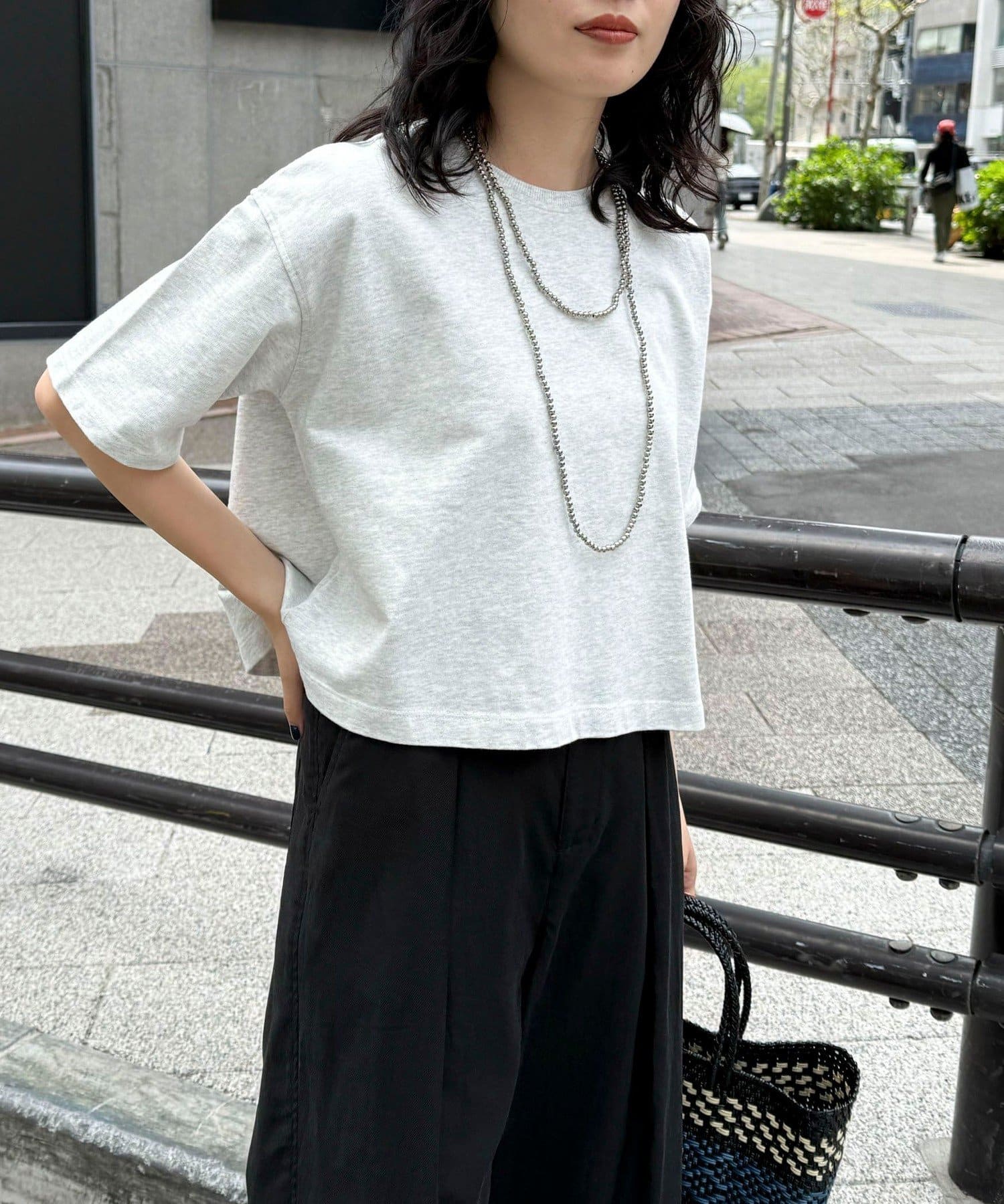 ・シンプルなデザインでどんなコーディネートにも万能に使えるベーシックロンTのクロップド丈バージョン!