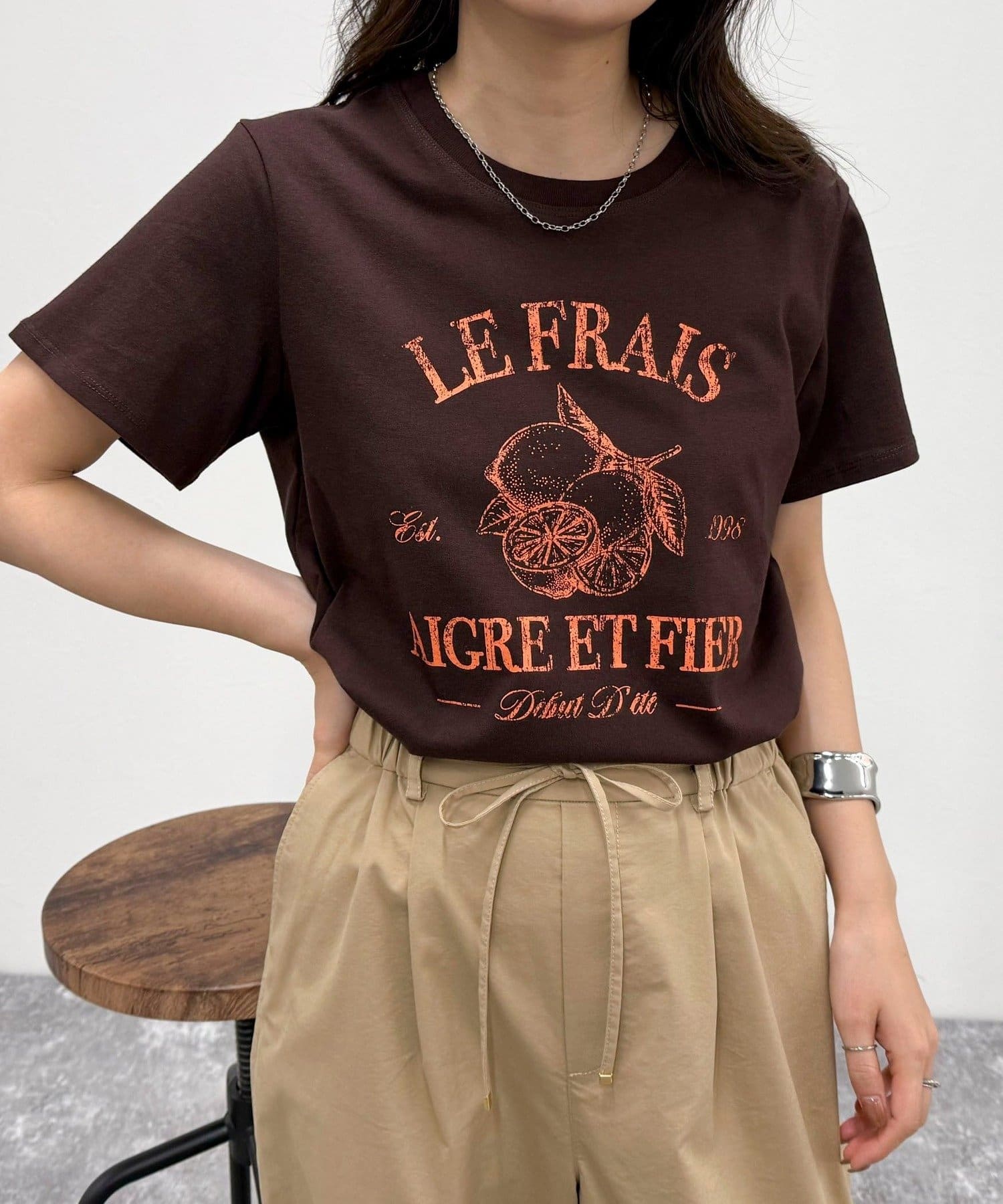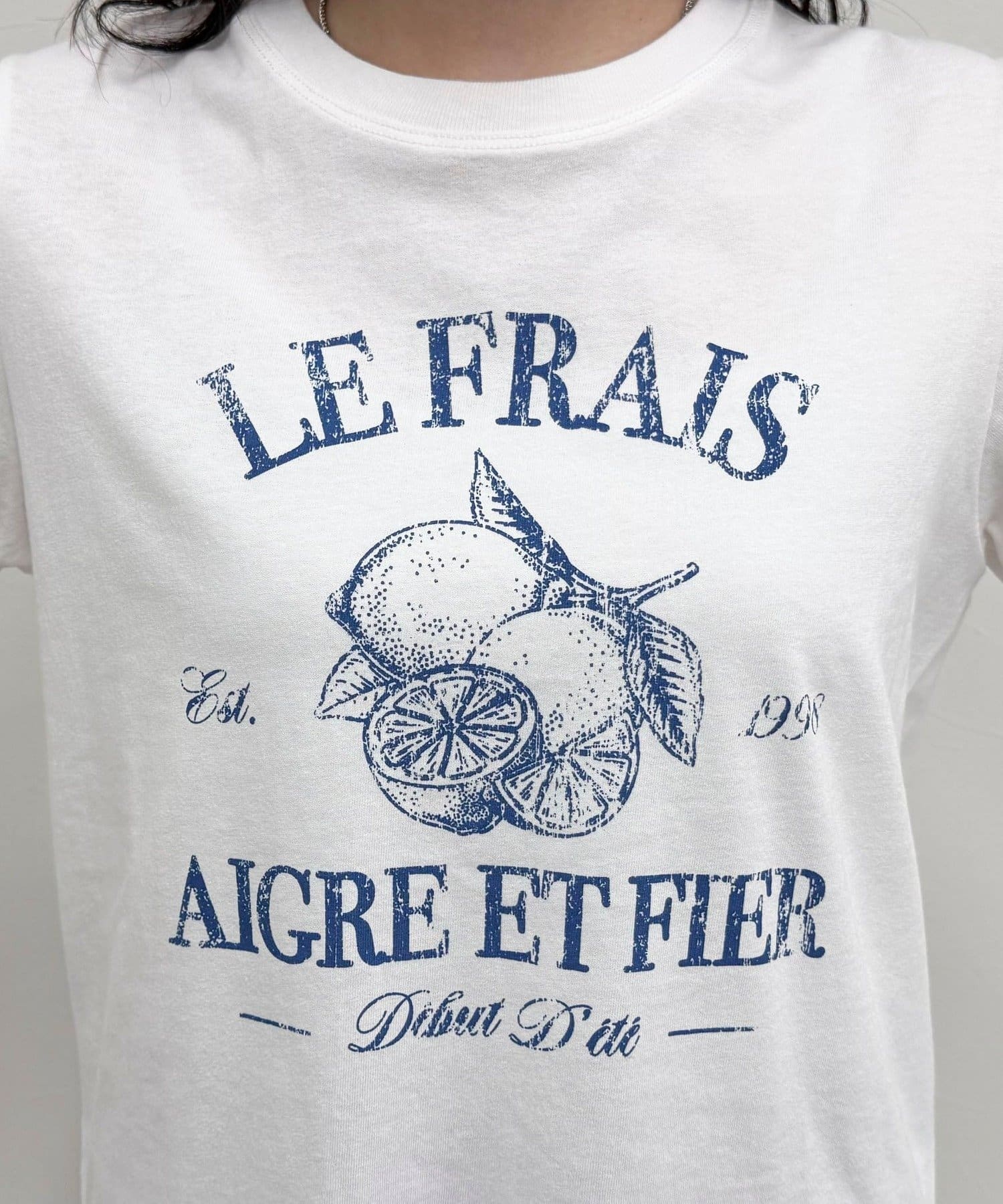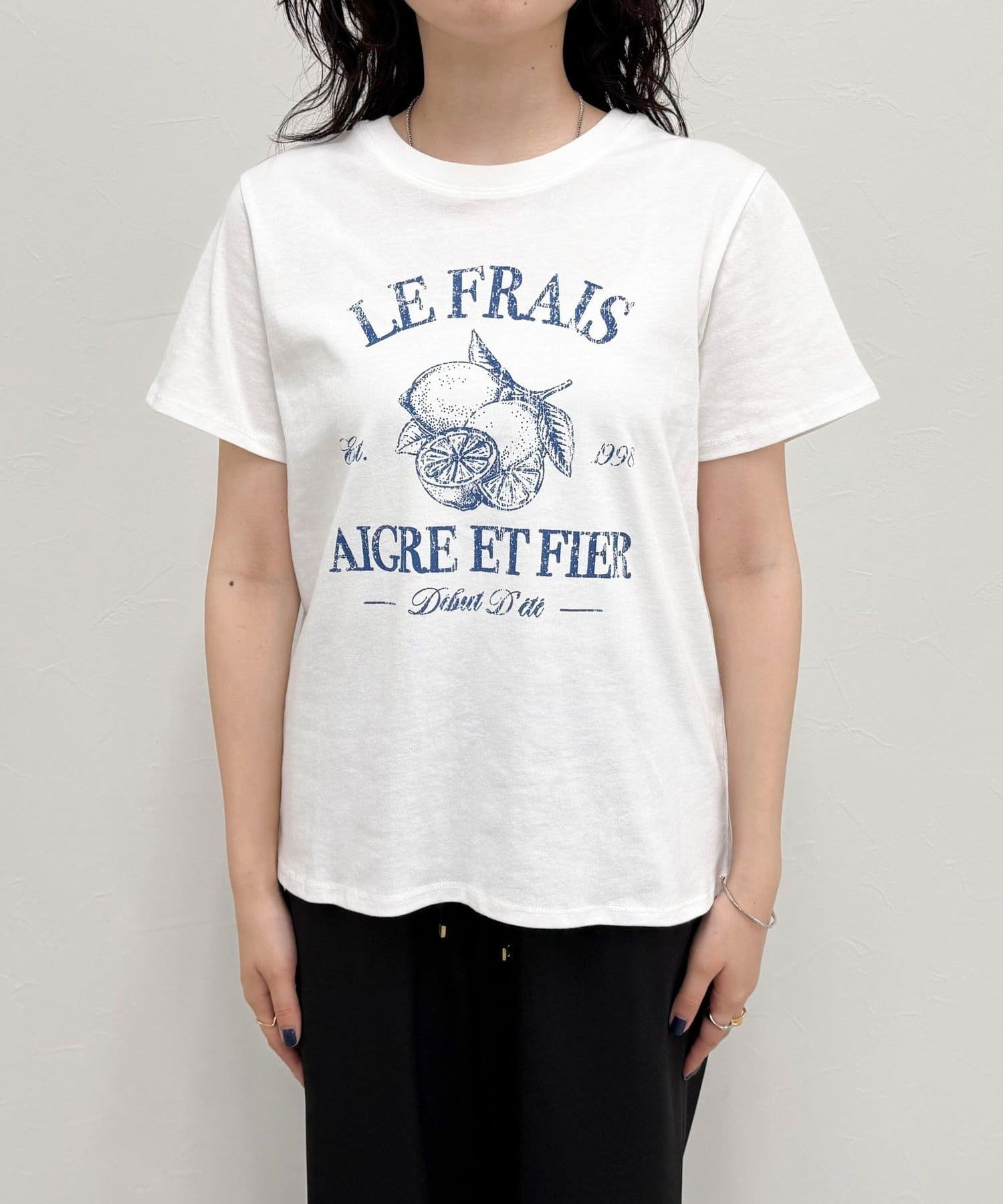 ・レモンのグラフィックがポイントの半袖Tシャツです