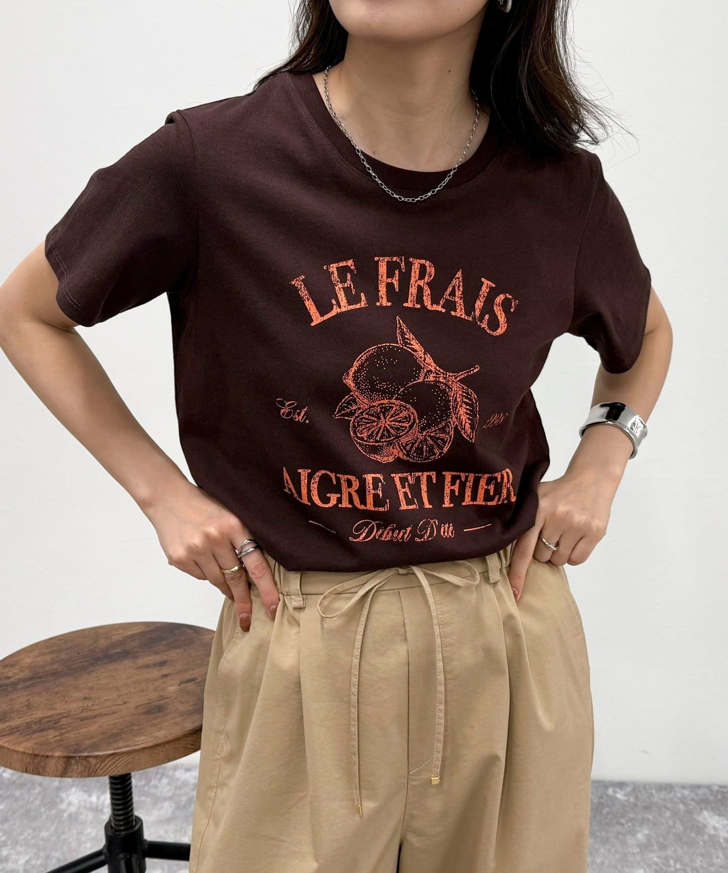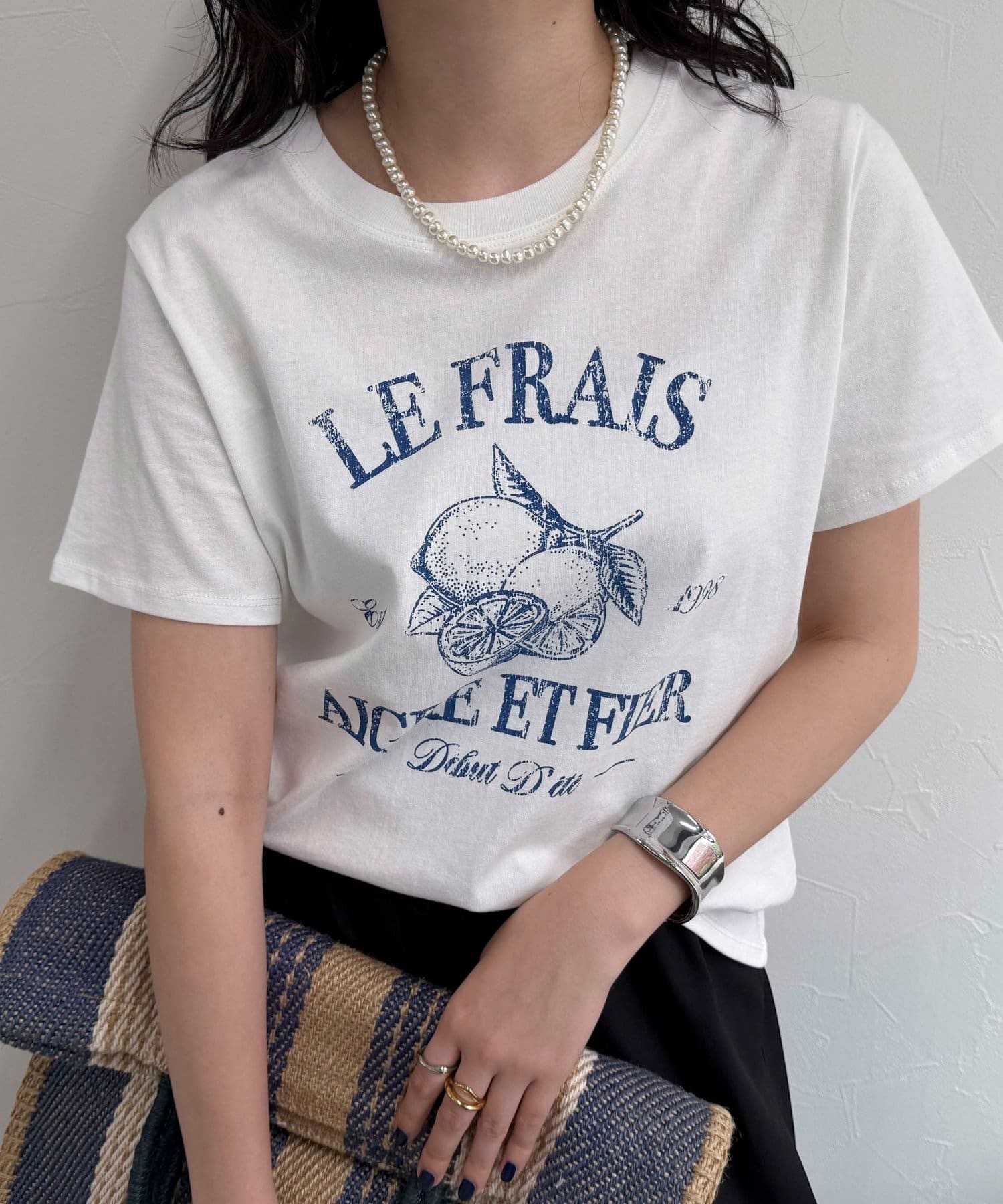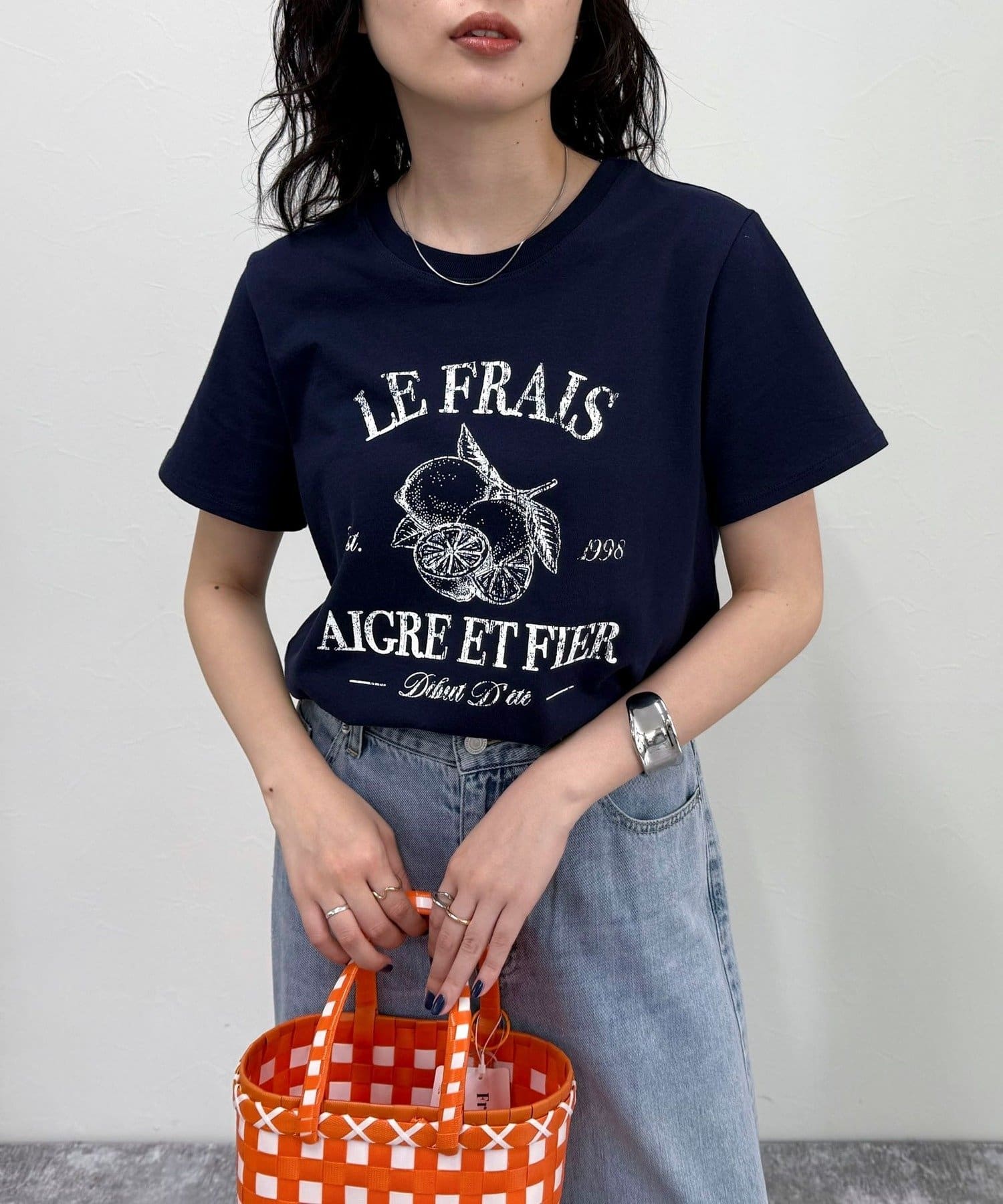 ・レモンのグラフィックがポイントの半袖Tシャツです