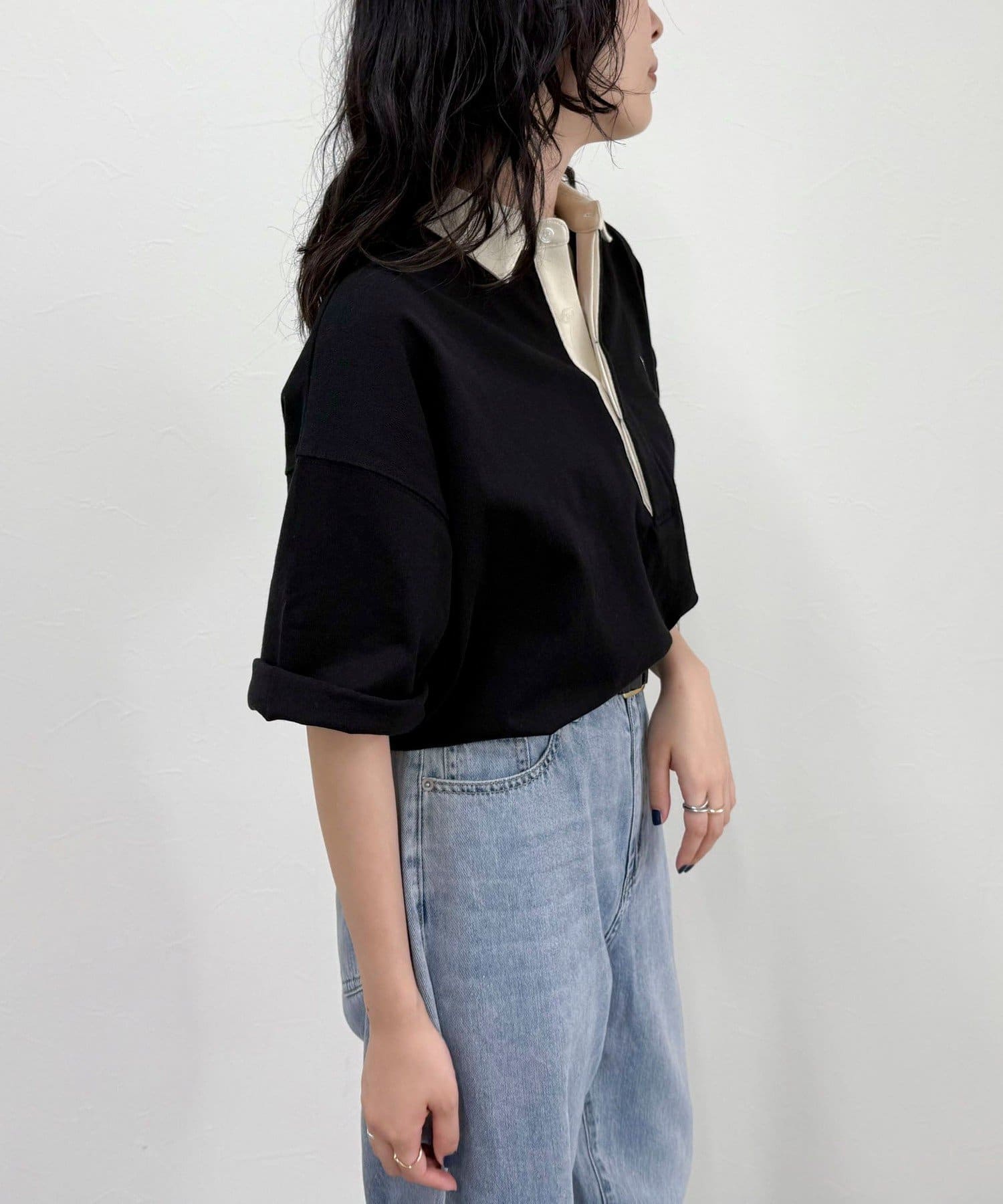 ワンポイント刺繍半袖ラガーシャツ