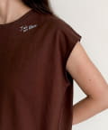 ・シンプルなデザインながらも、襟元の刺繍がワンポイントになったプルオーバーです