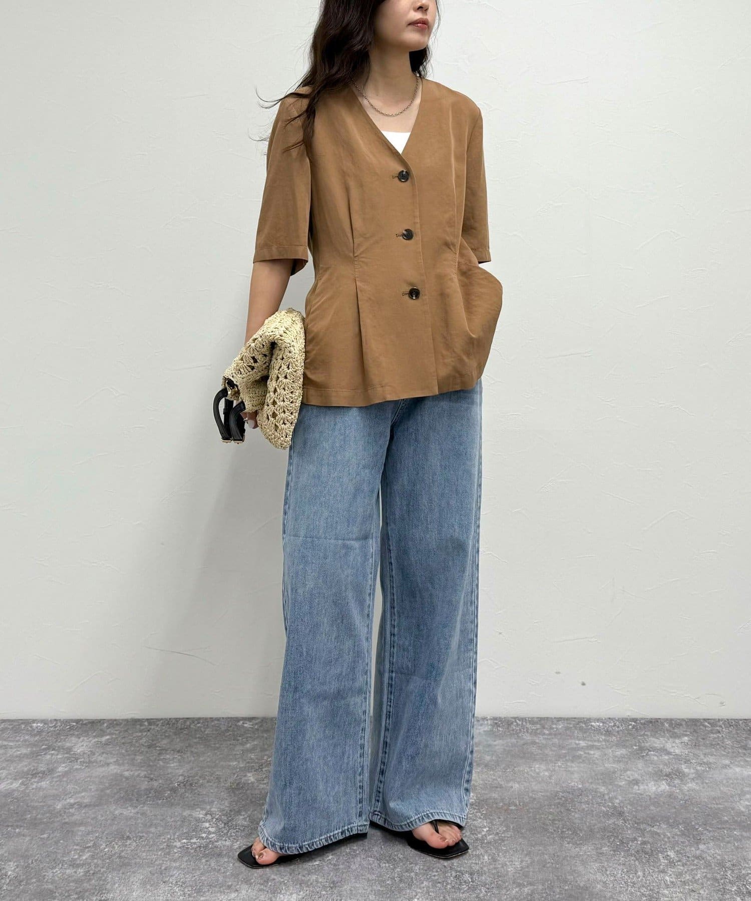 ・ワンピースにさらっと羽織ったり、デニムに合わせたカジュアルな着こなしがおすすめです