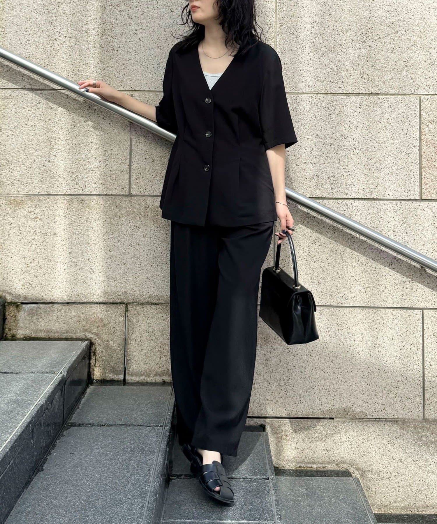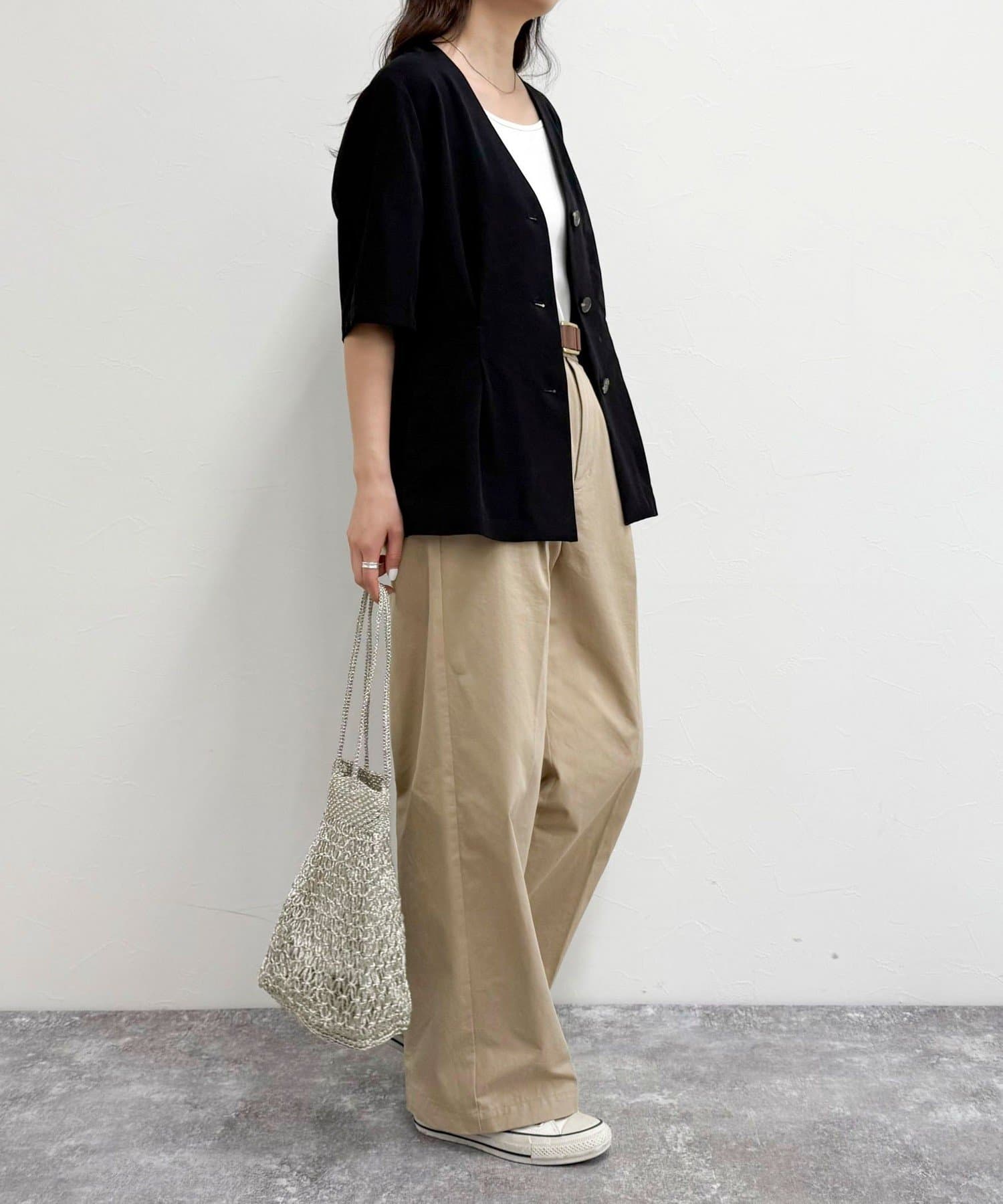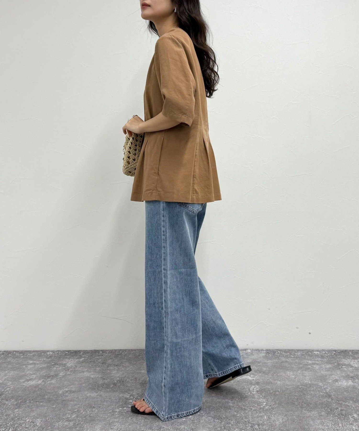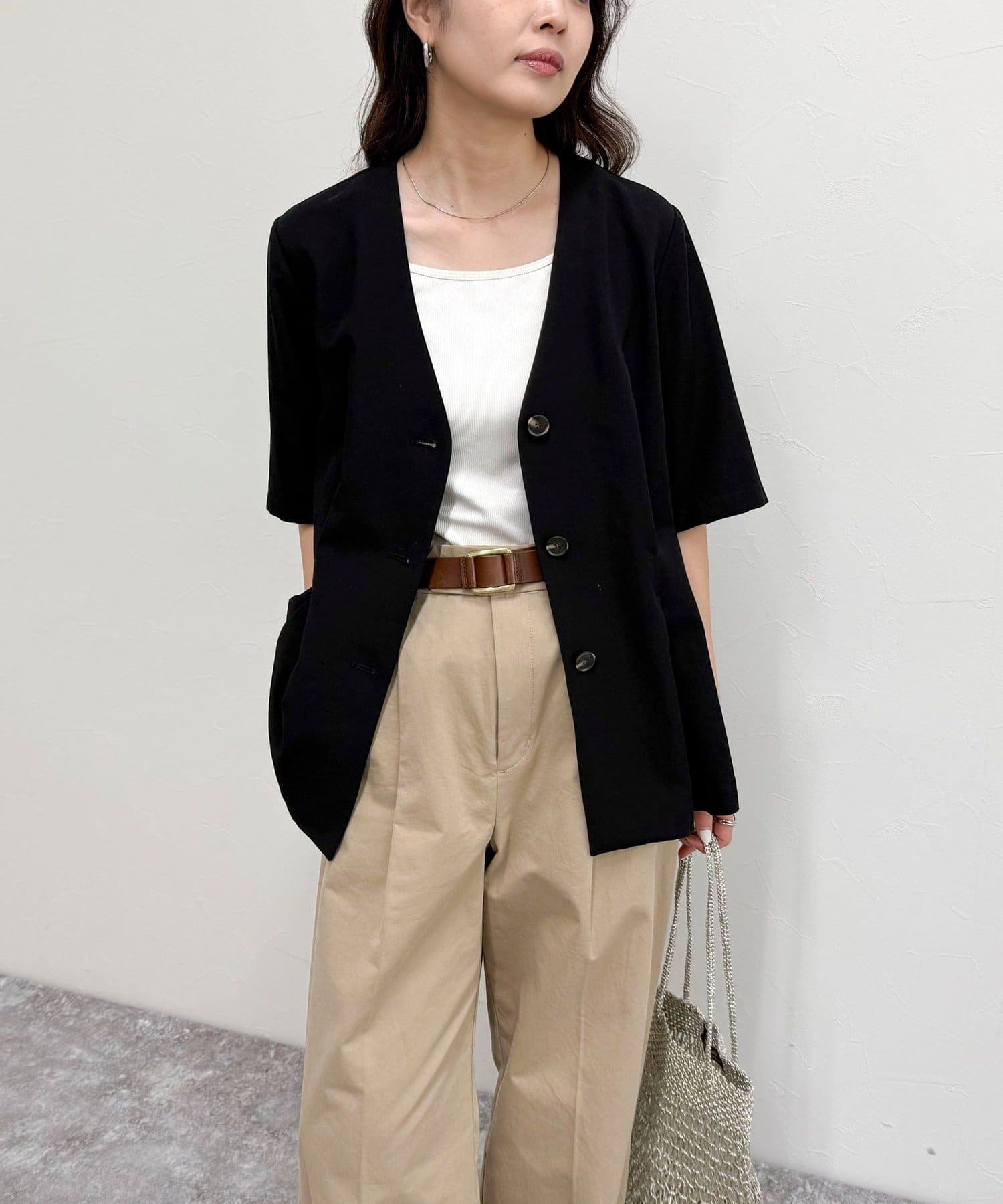 ・ノーカラーでかっちりし過ぎず、カジュアル合わせもしやすいデザインです