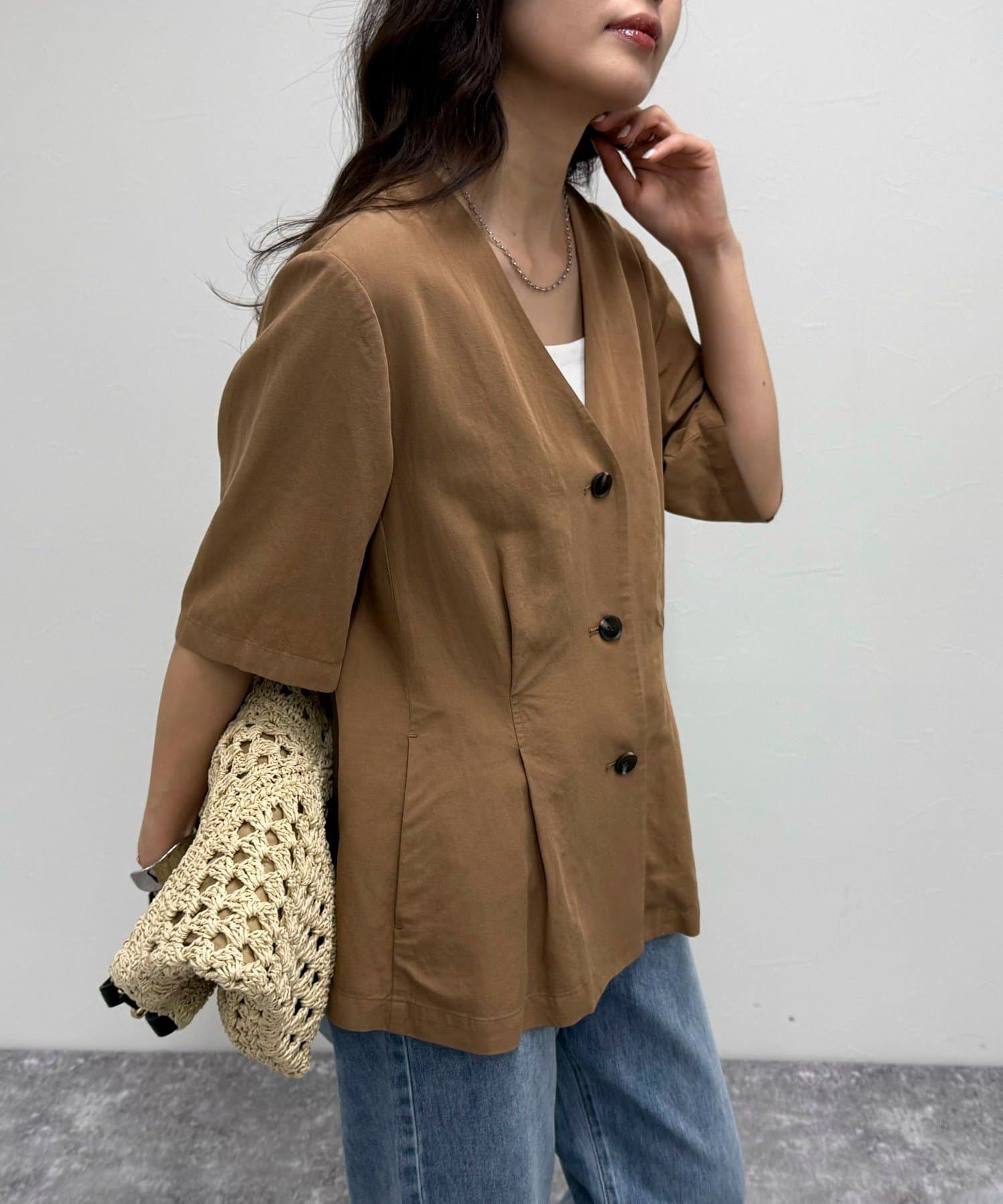 着心地の良さが魅力的なレーヨン麻半袖ジャケット