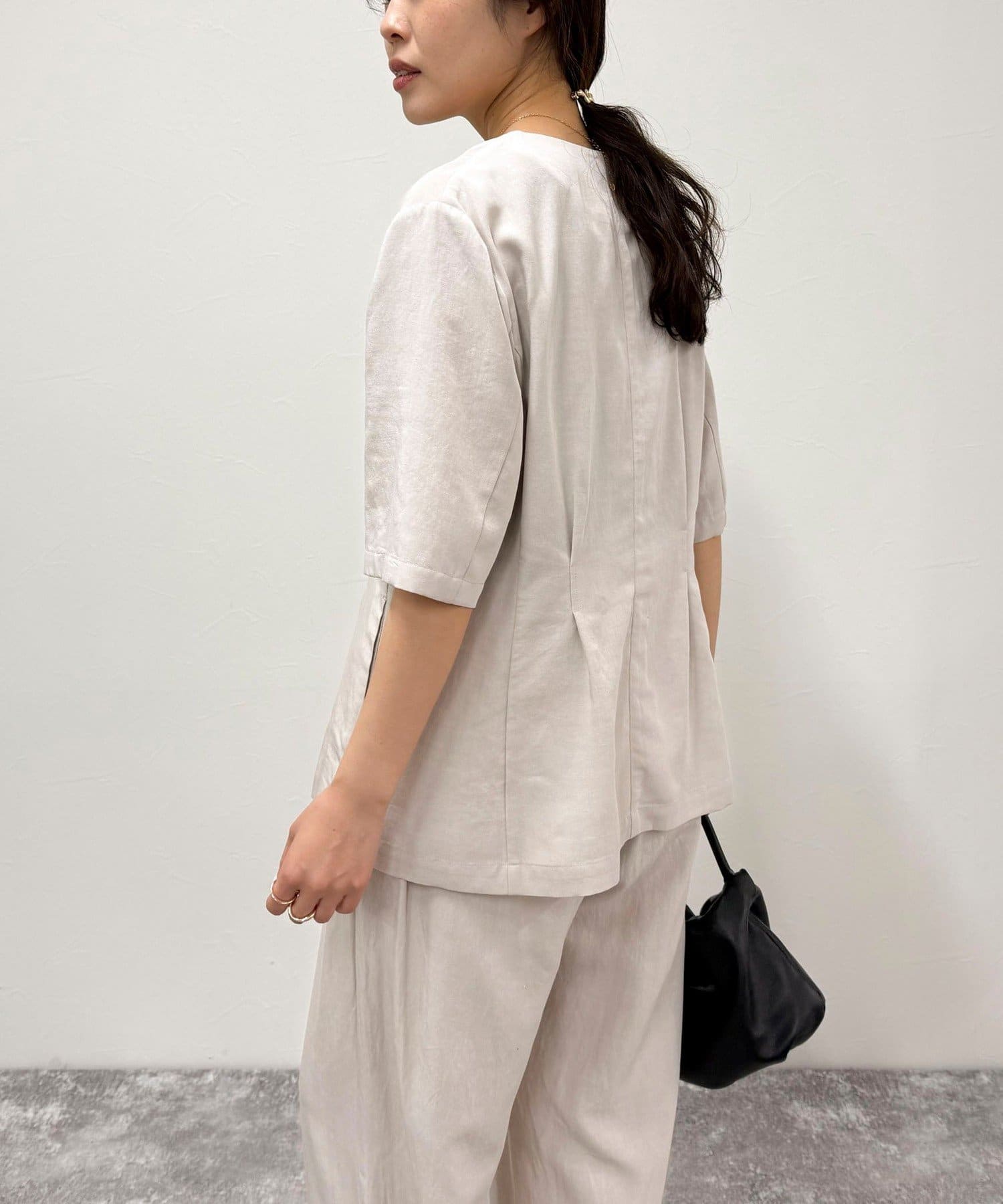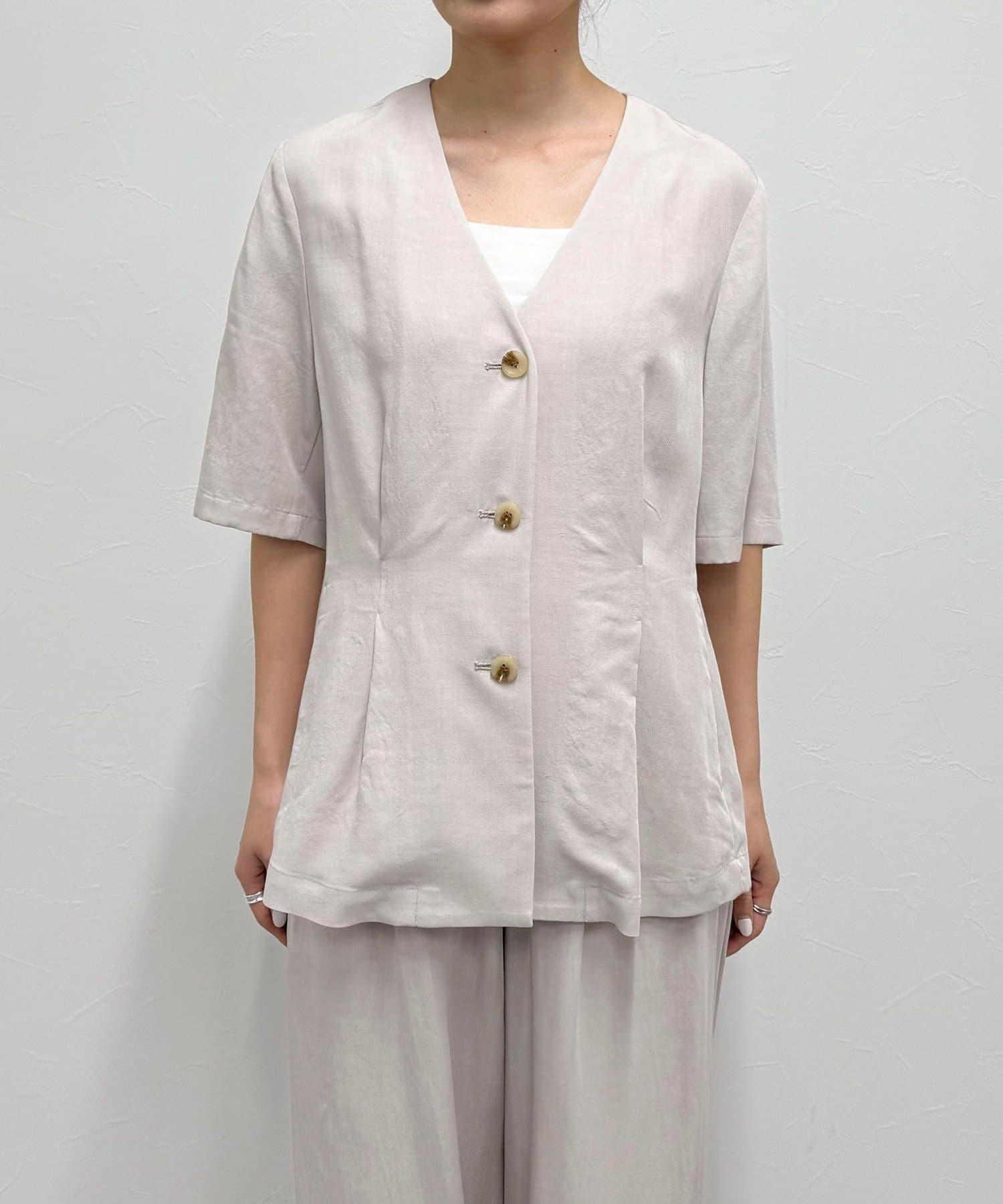 《セットアップ対応》レーヨン麻半袖ジャケット