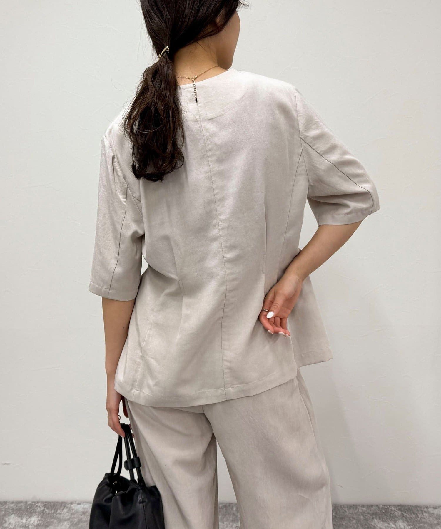 ・身体のラインを拾いすぎない程よくゆとりのあるシルエットで、パンツやスカートなど様々なボトムスと好相性です