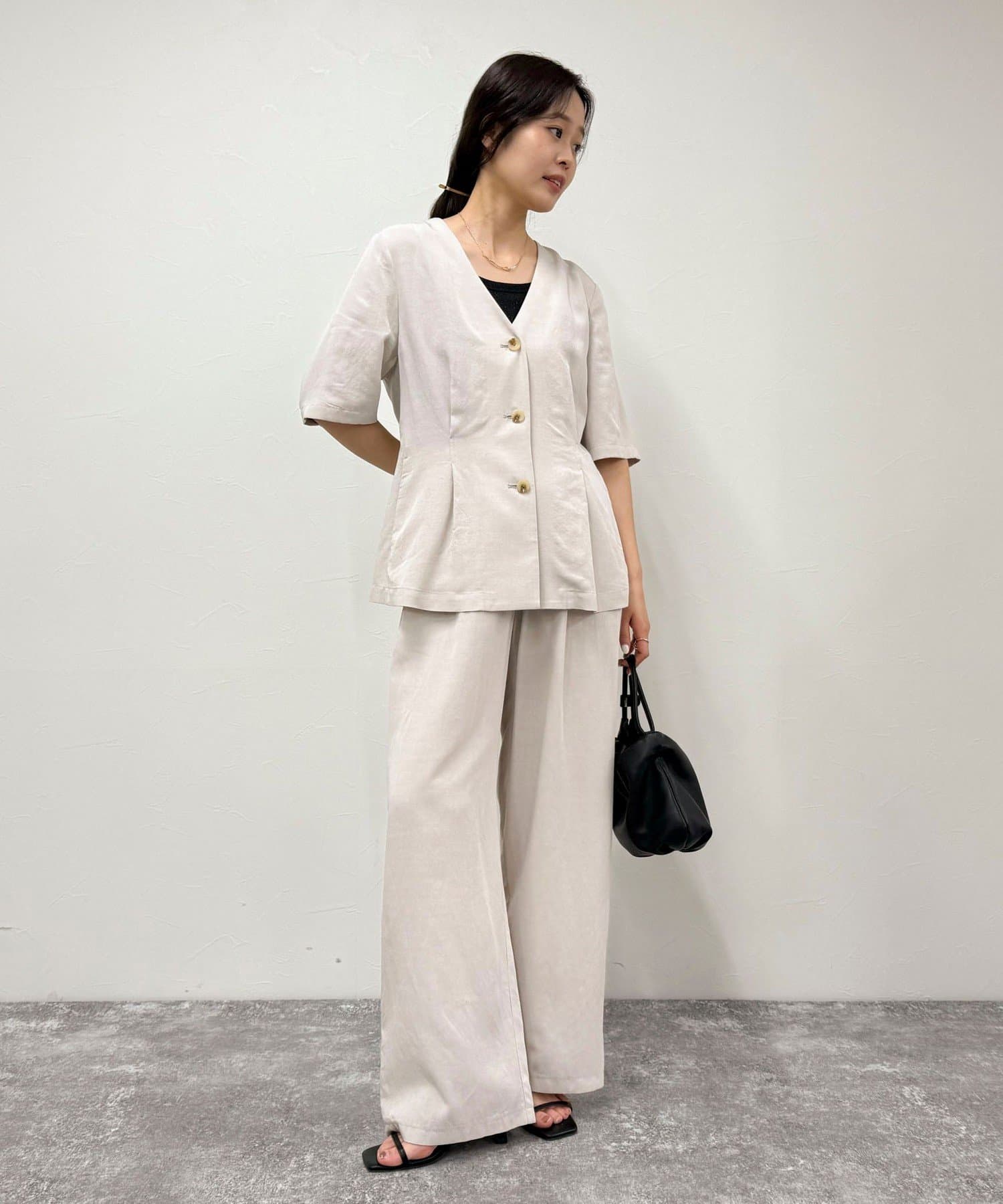 (【5-0021-3-29-007】レーヨン麻セミワイドイージーパンツ)