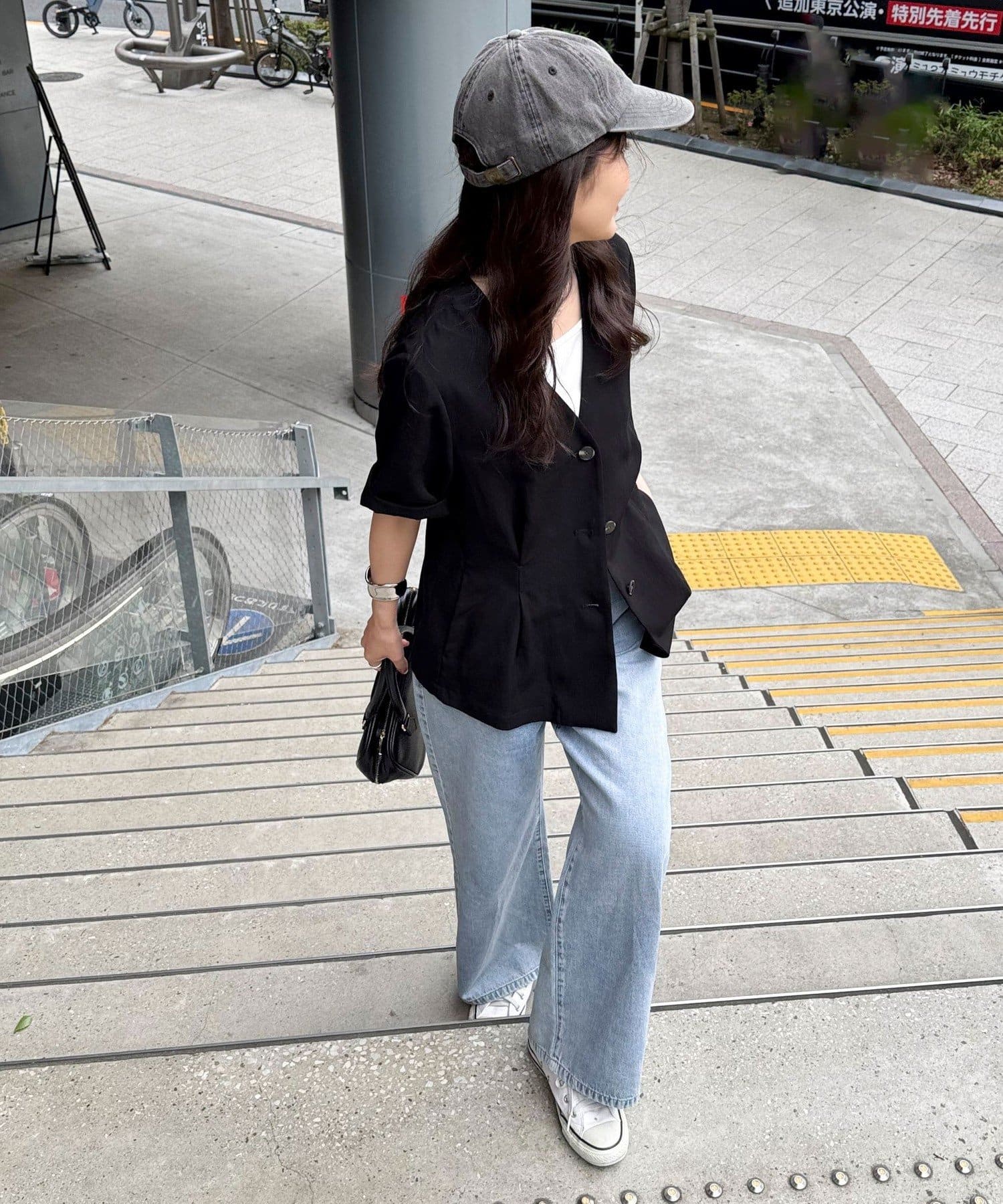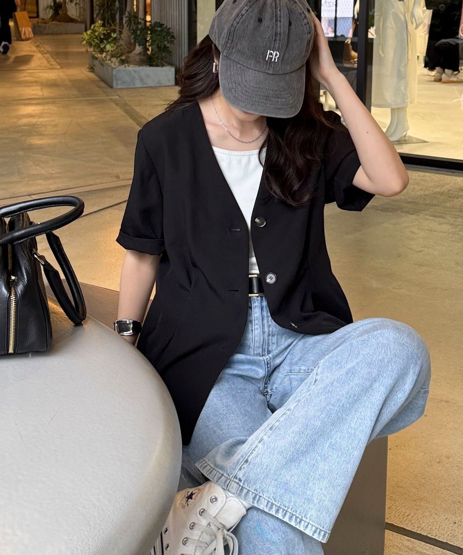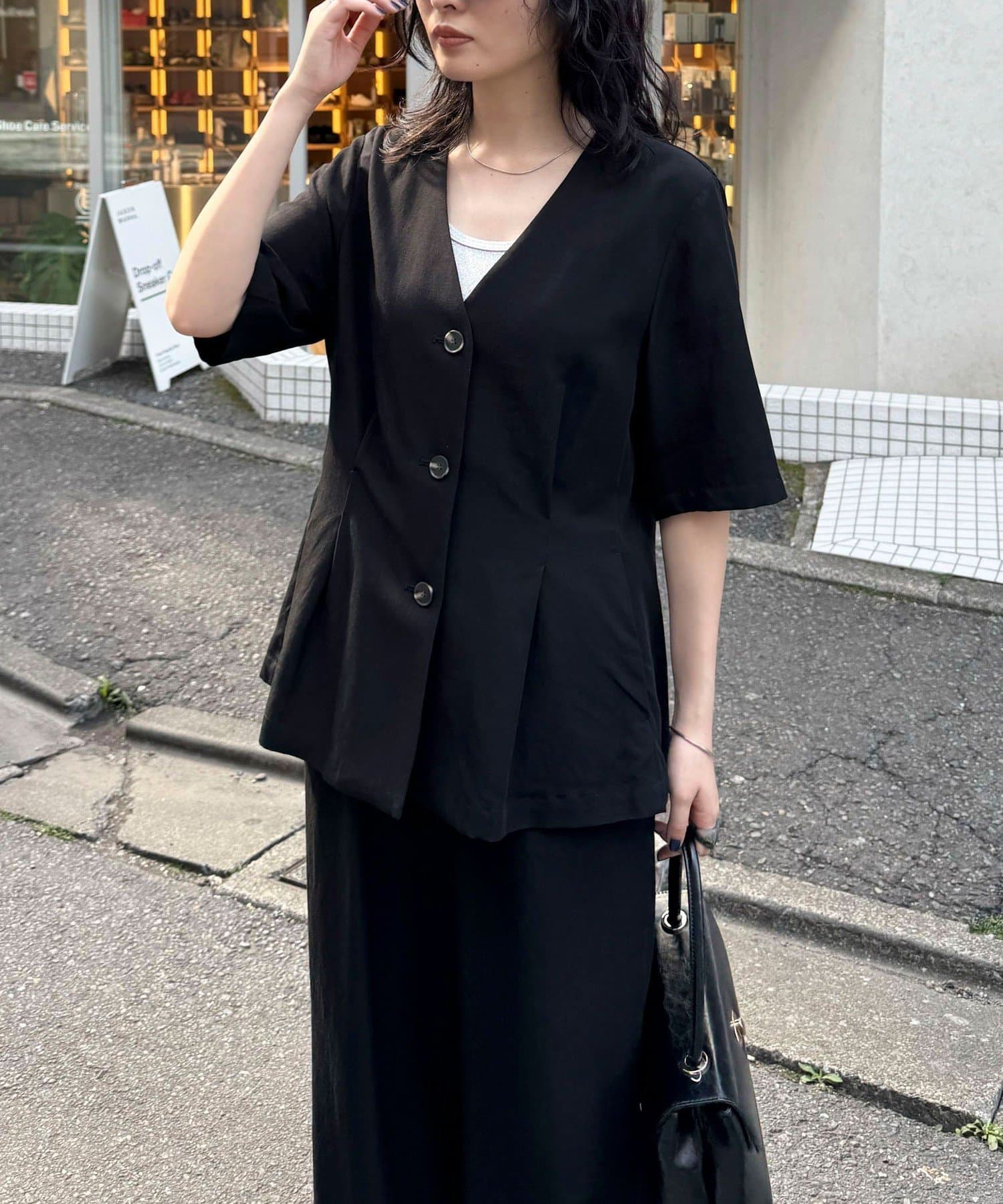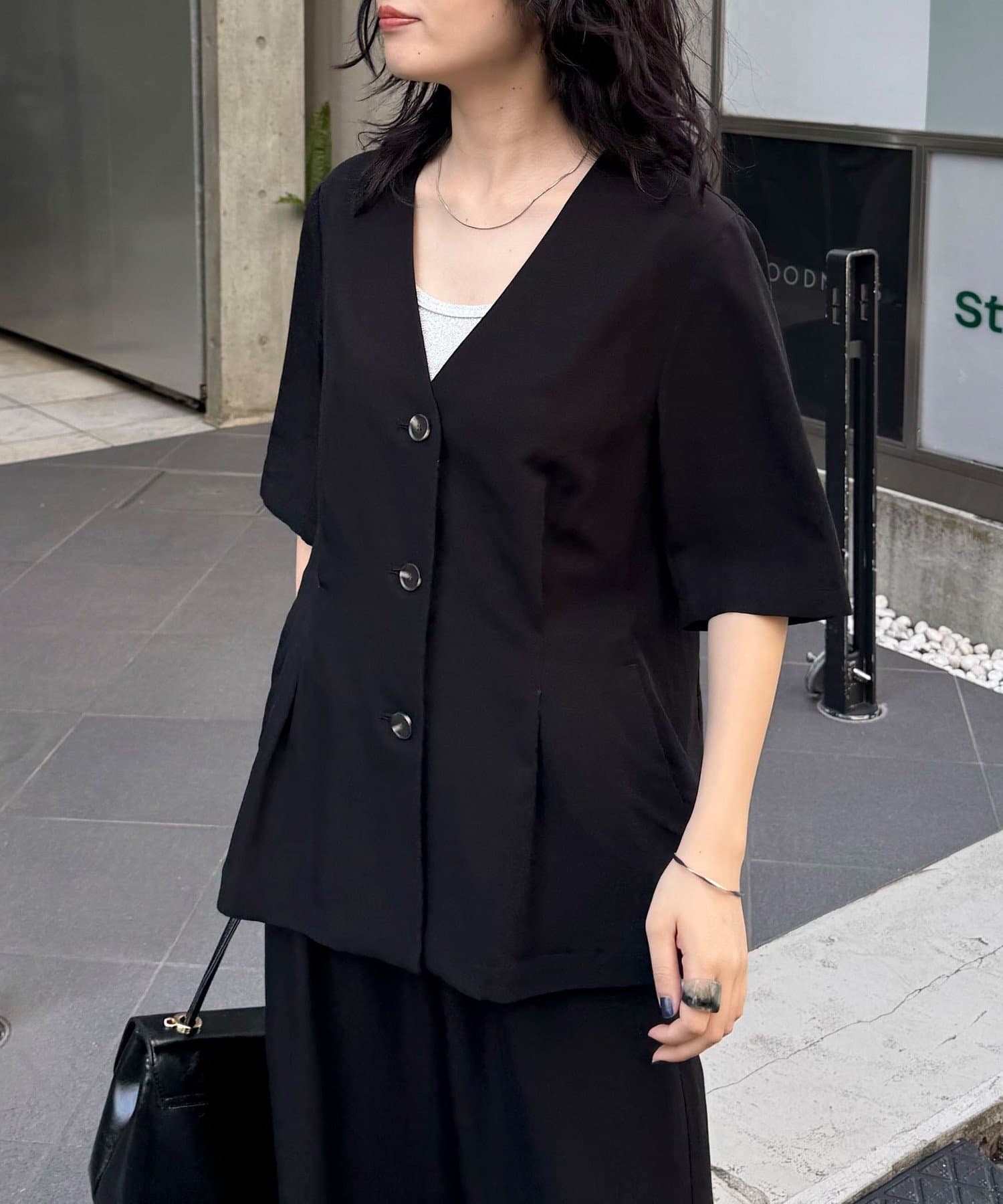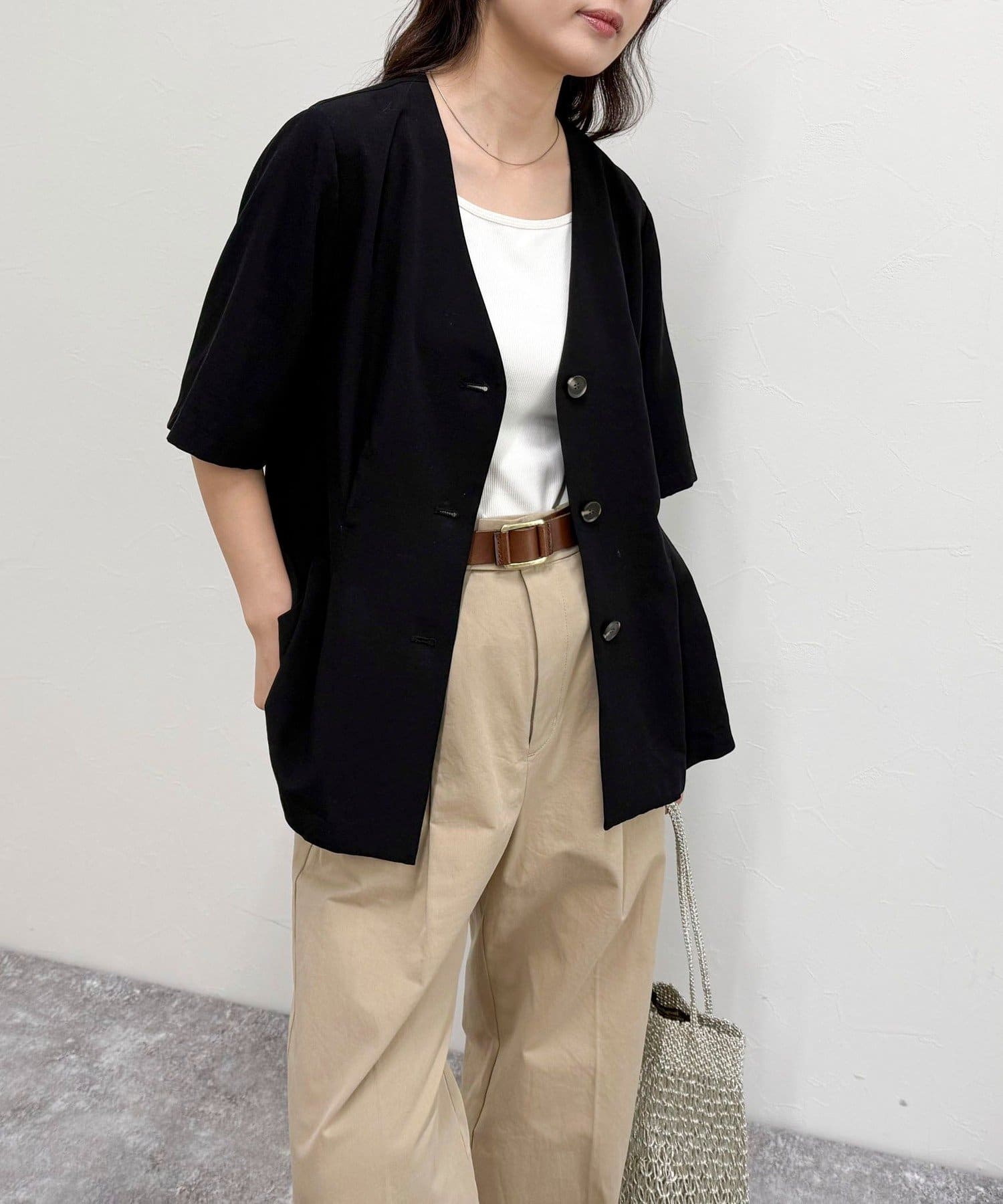 ・大人っぽい雰囲気で着こなせる半袖ジャケットです