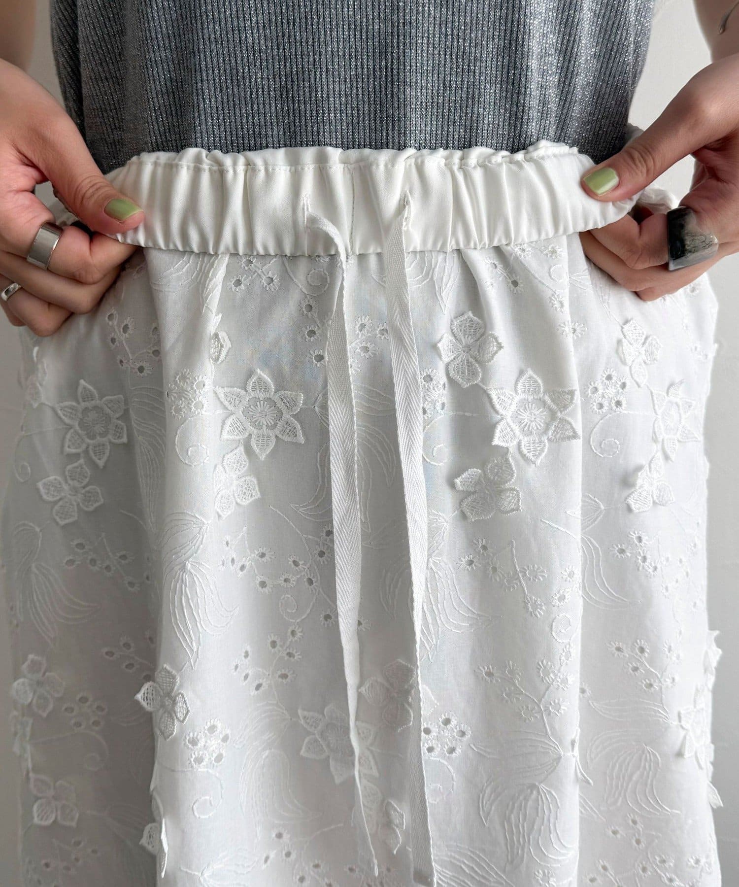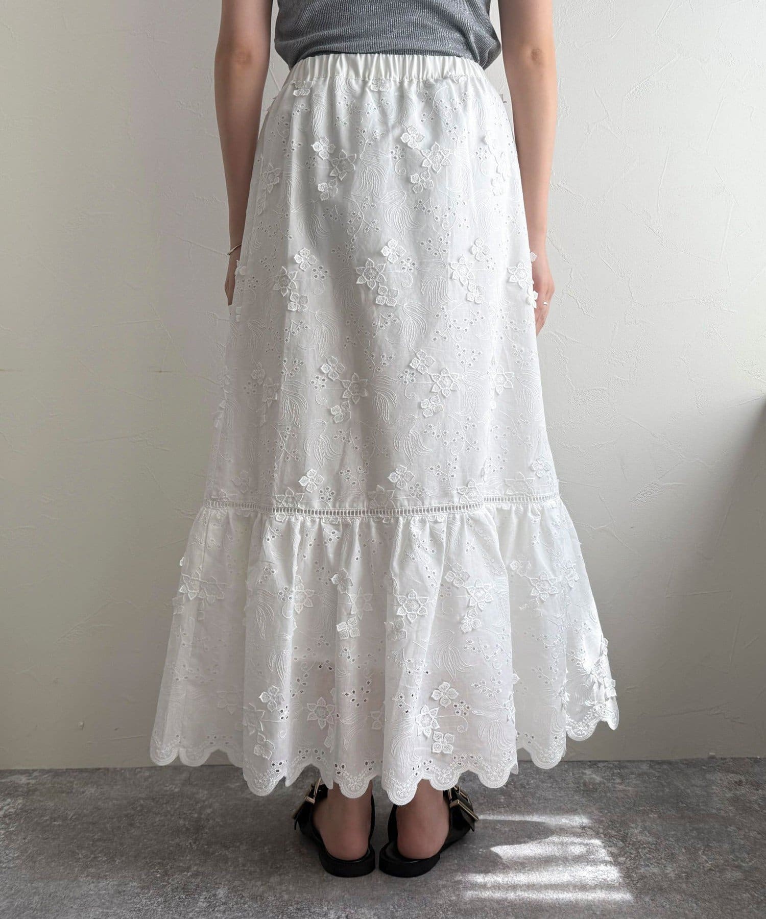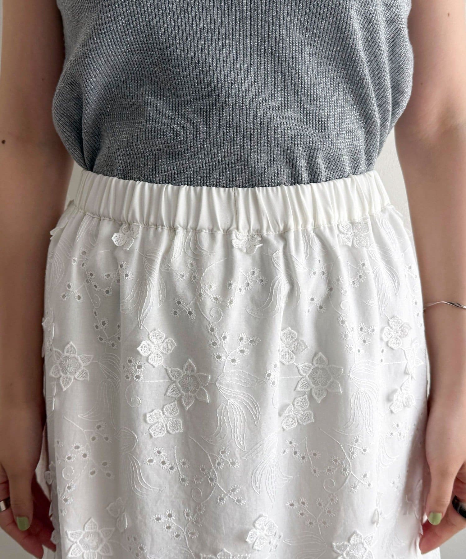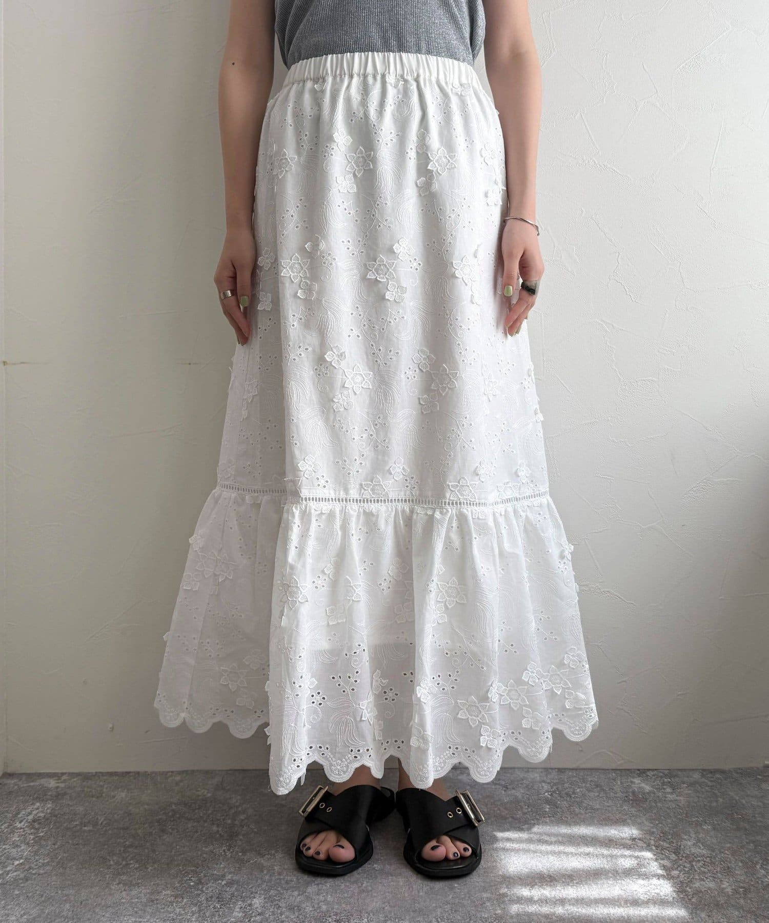 ・コットンの立体的な刺繍生地が可愛いスカートです