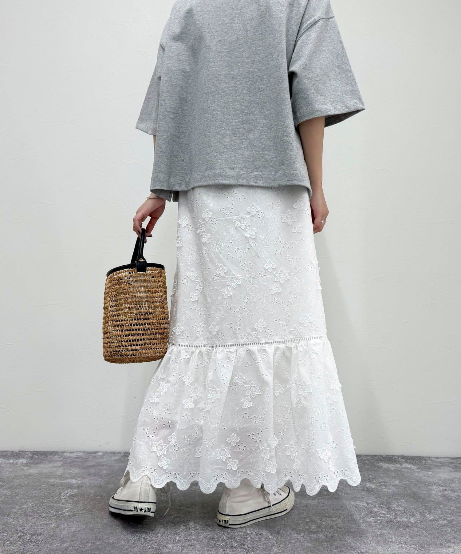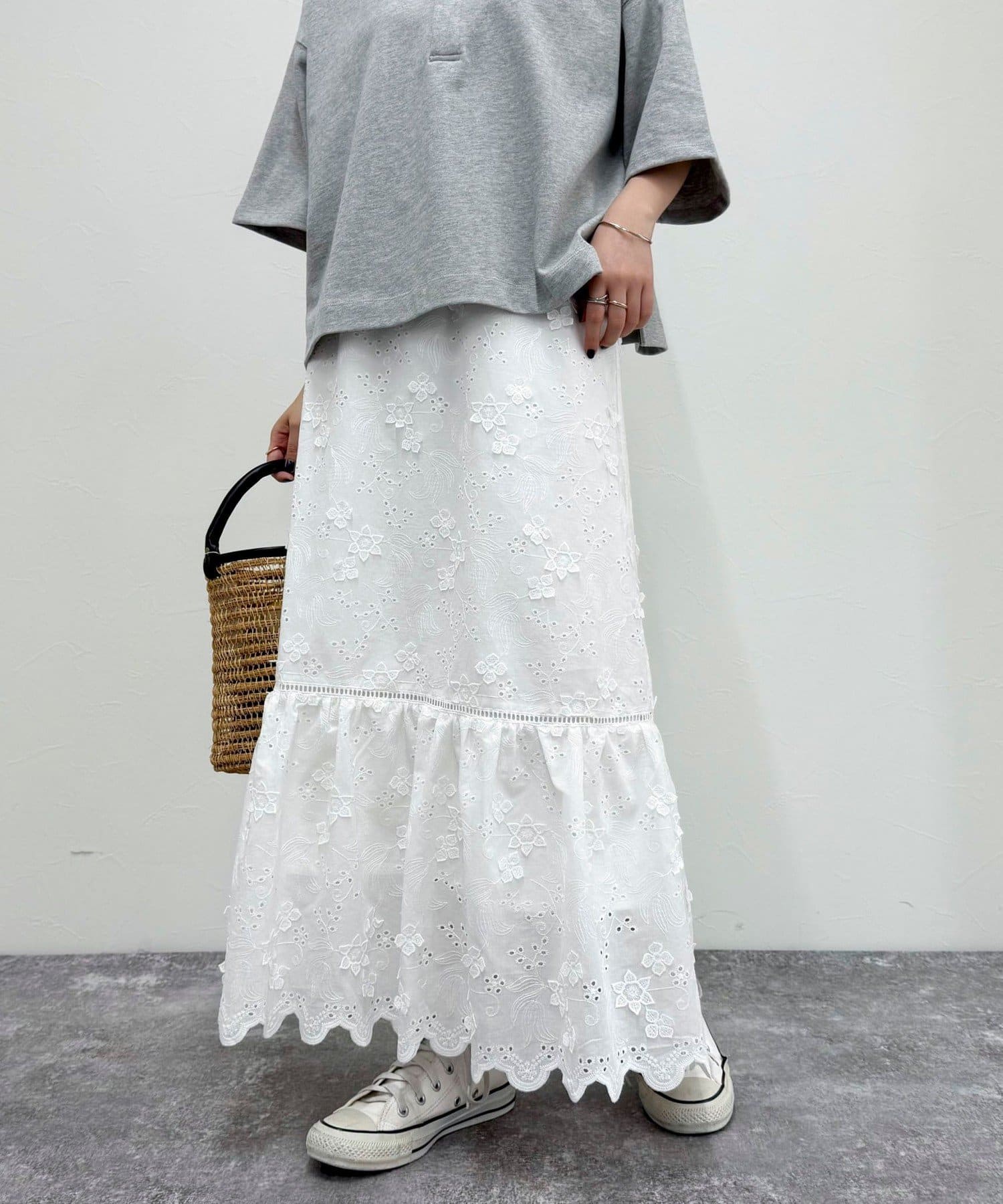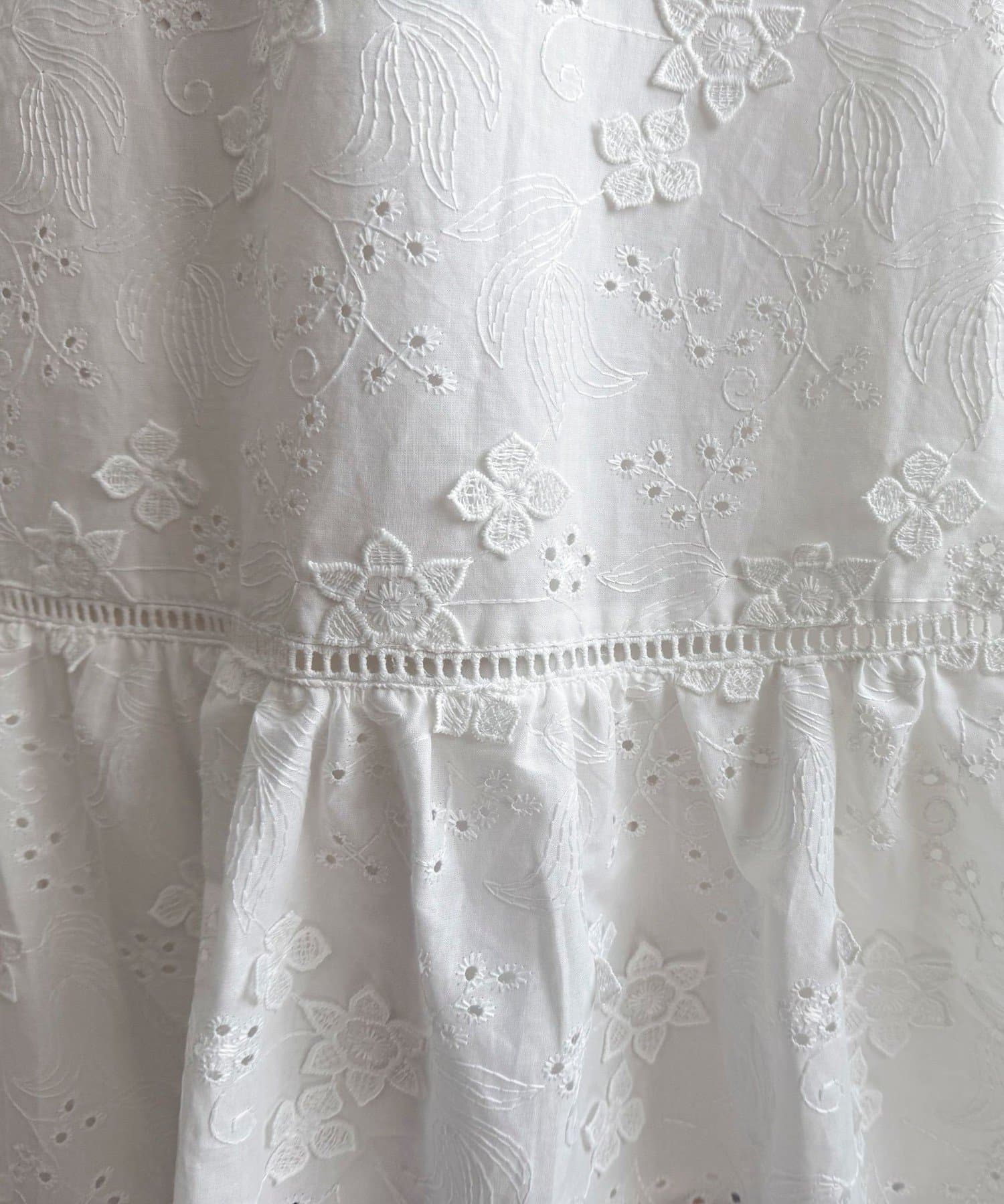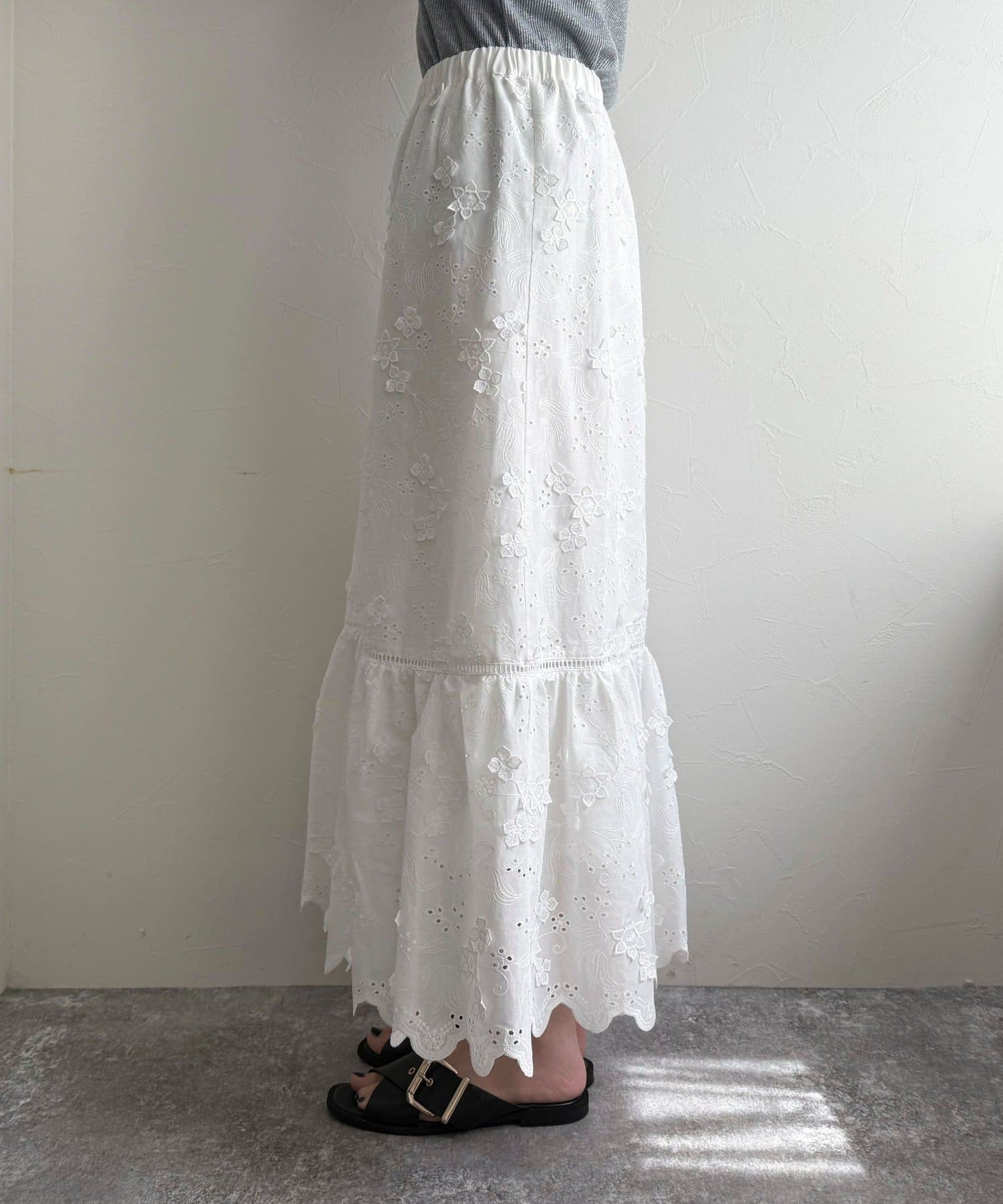 ・コットンの立体的な刺繍生地が可愛いスカートです