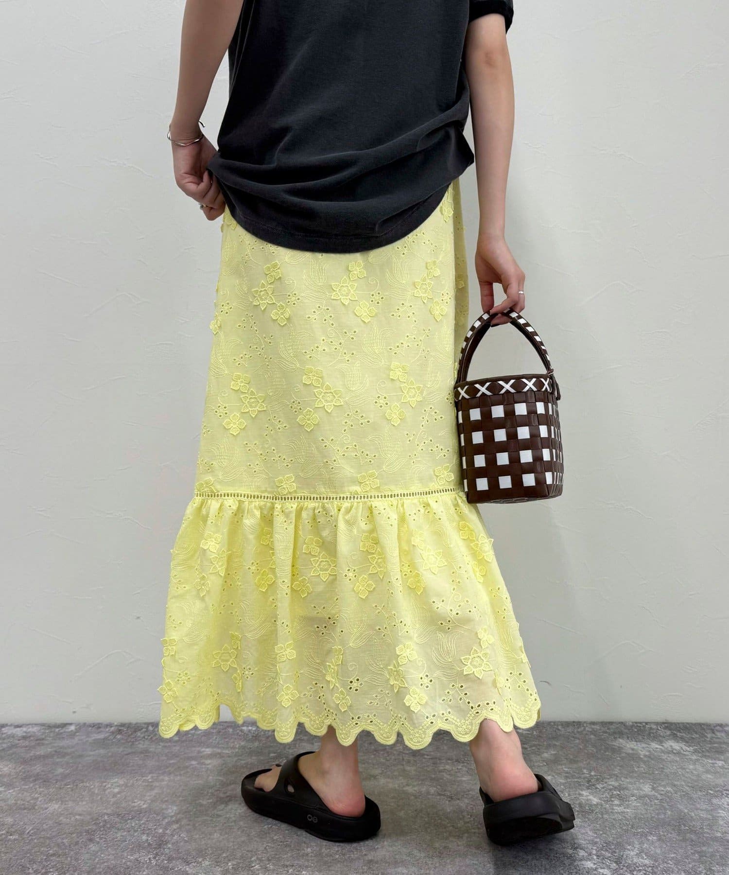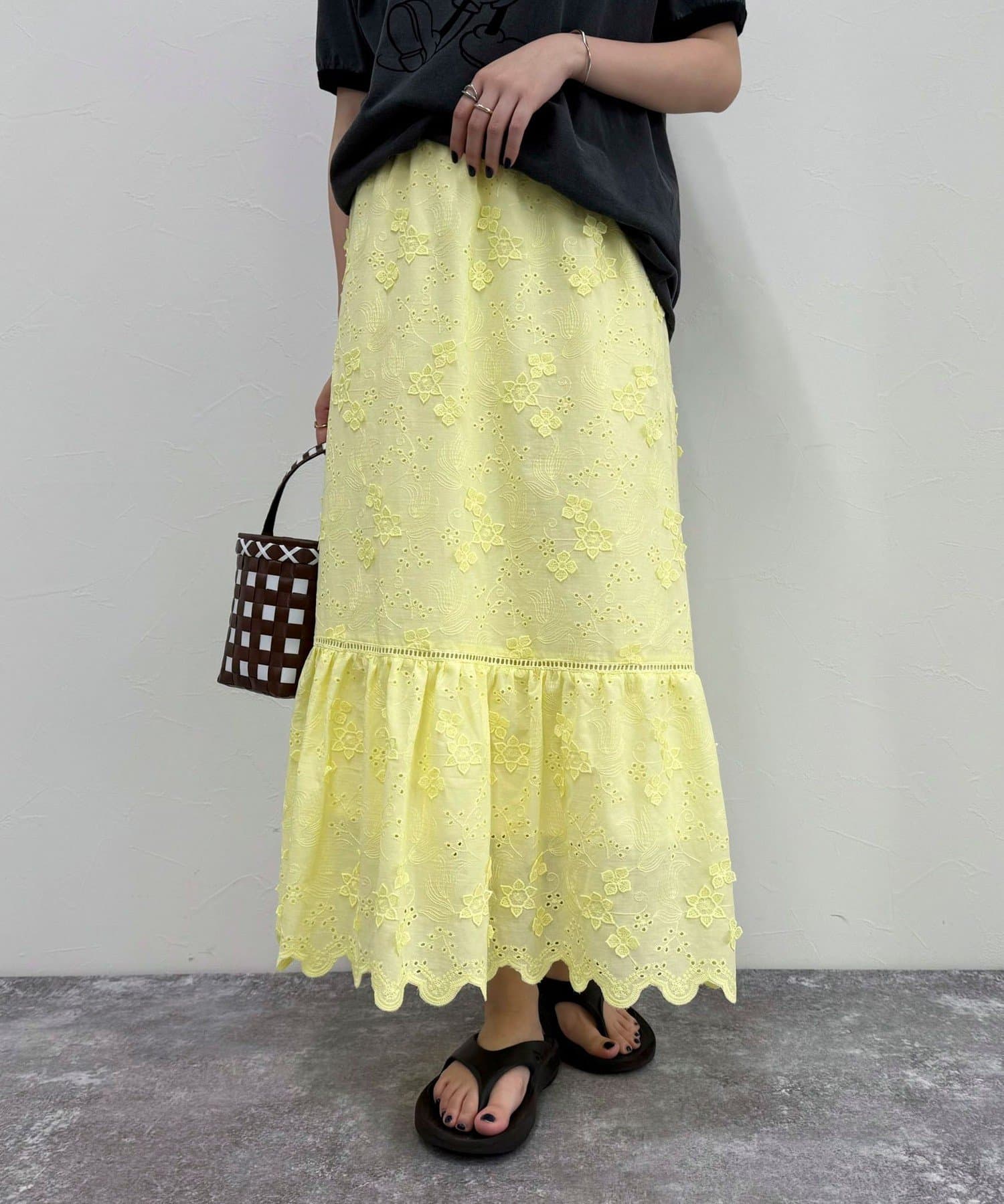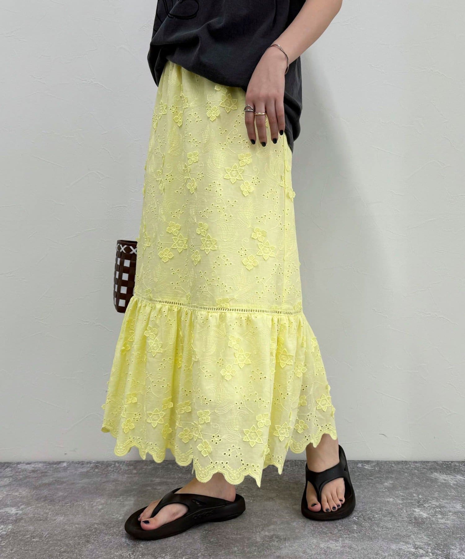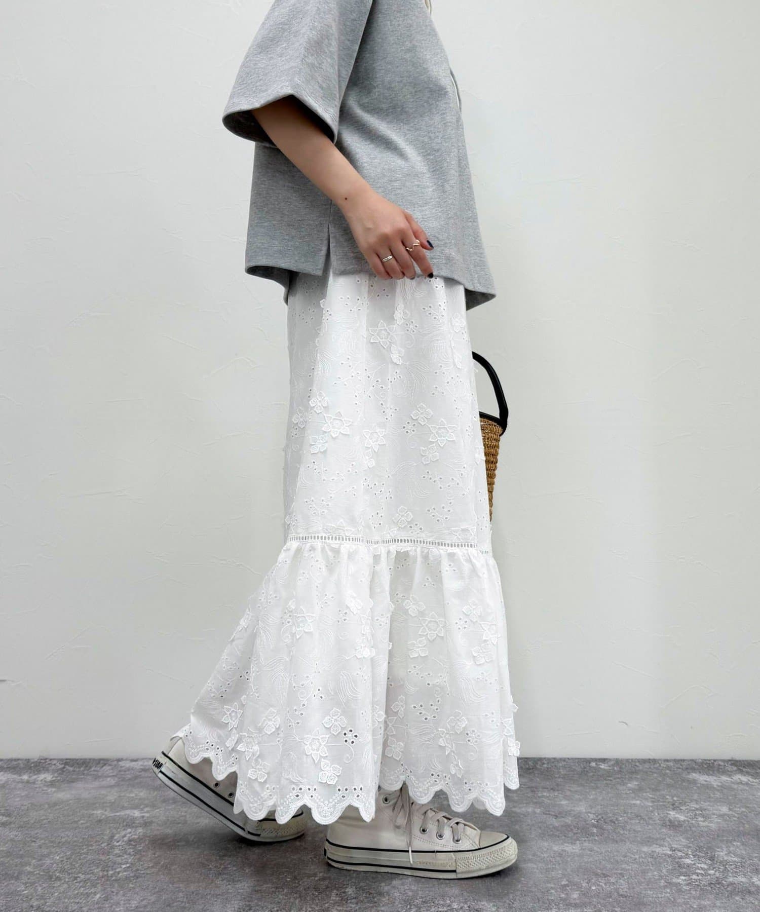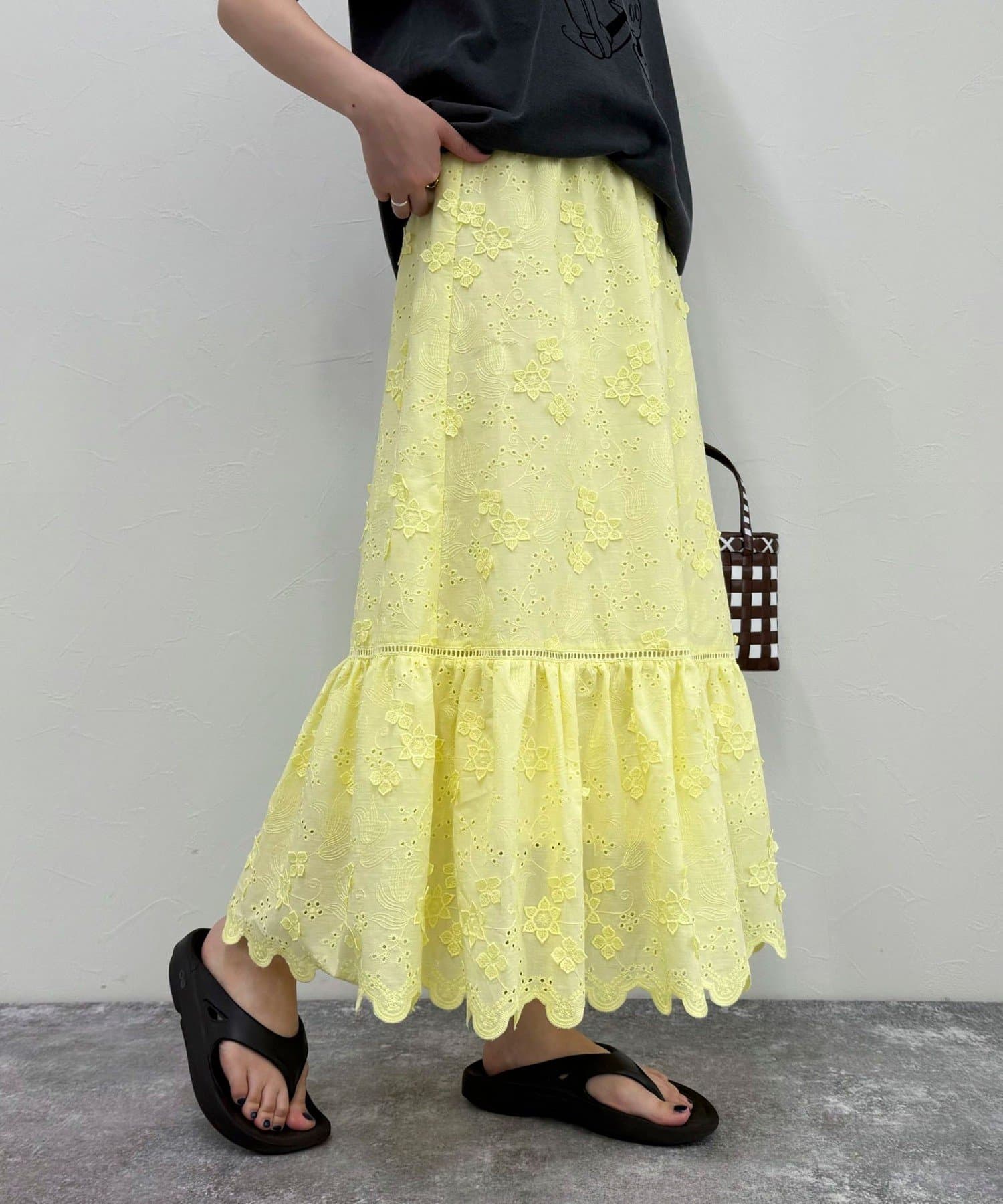 ・コットンの立体的な刺繍生地が可愛いスカートです