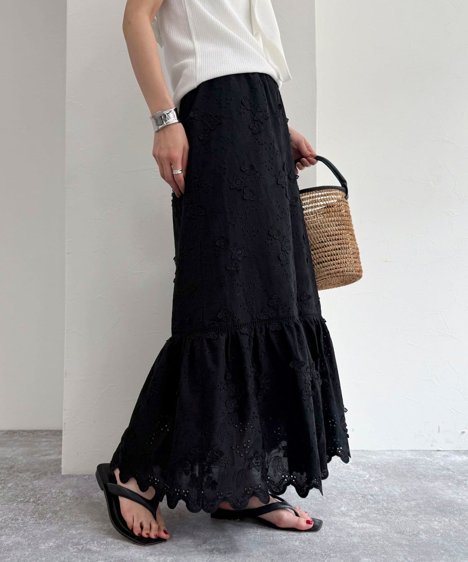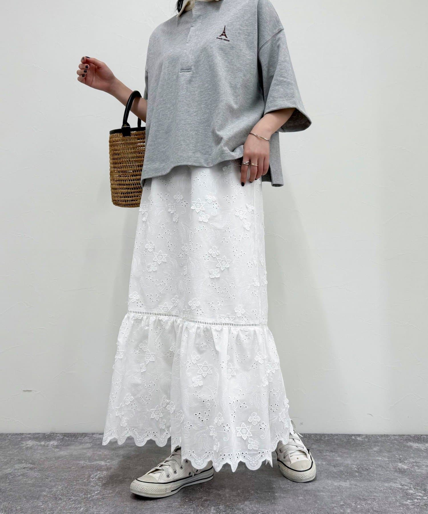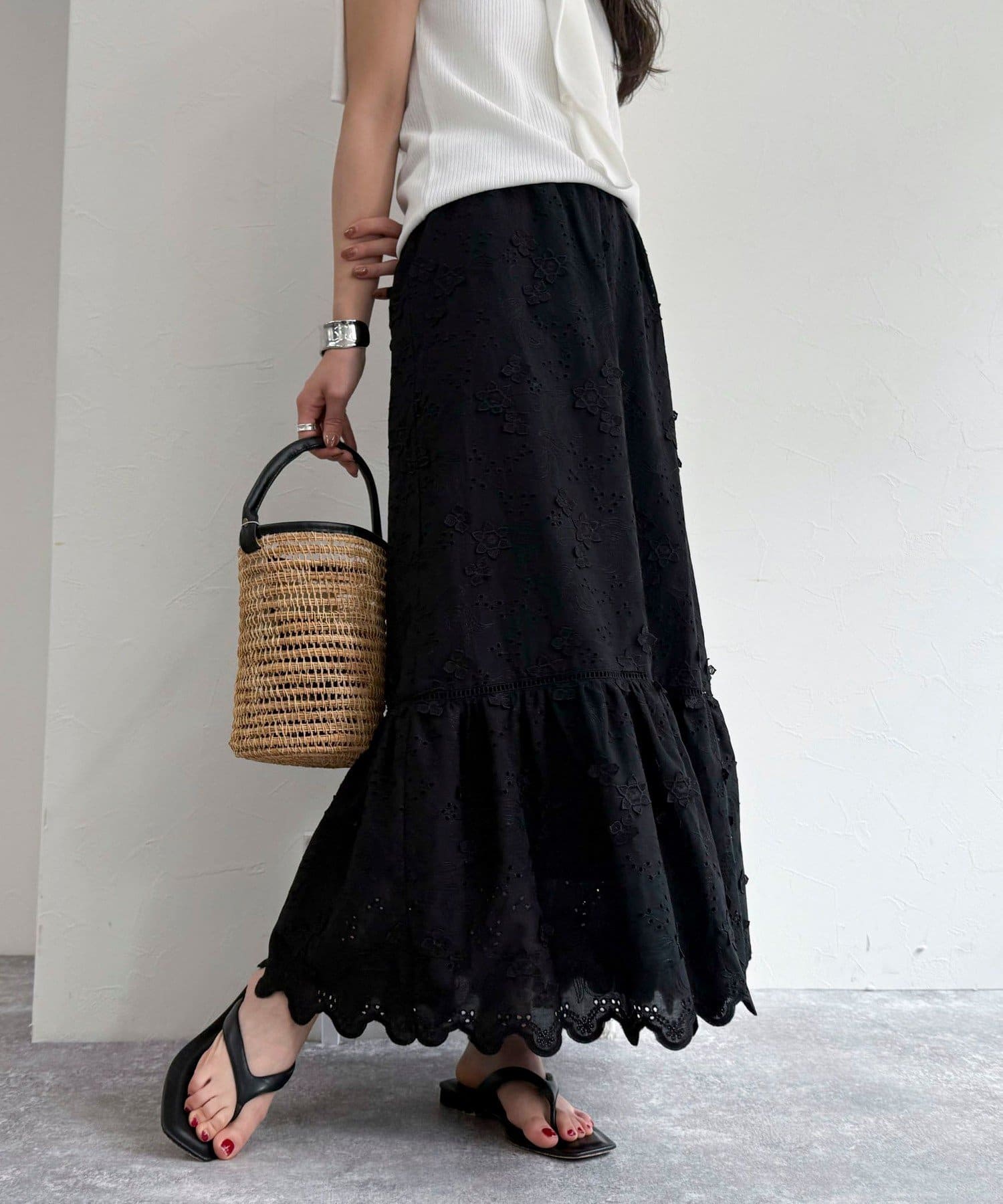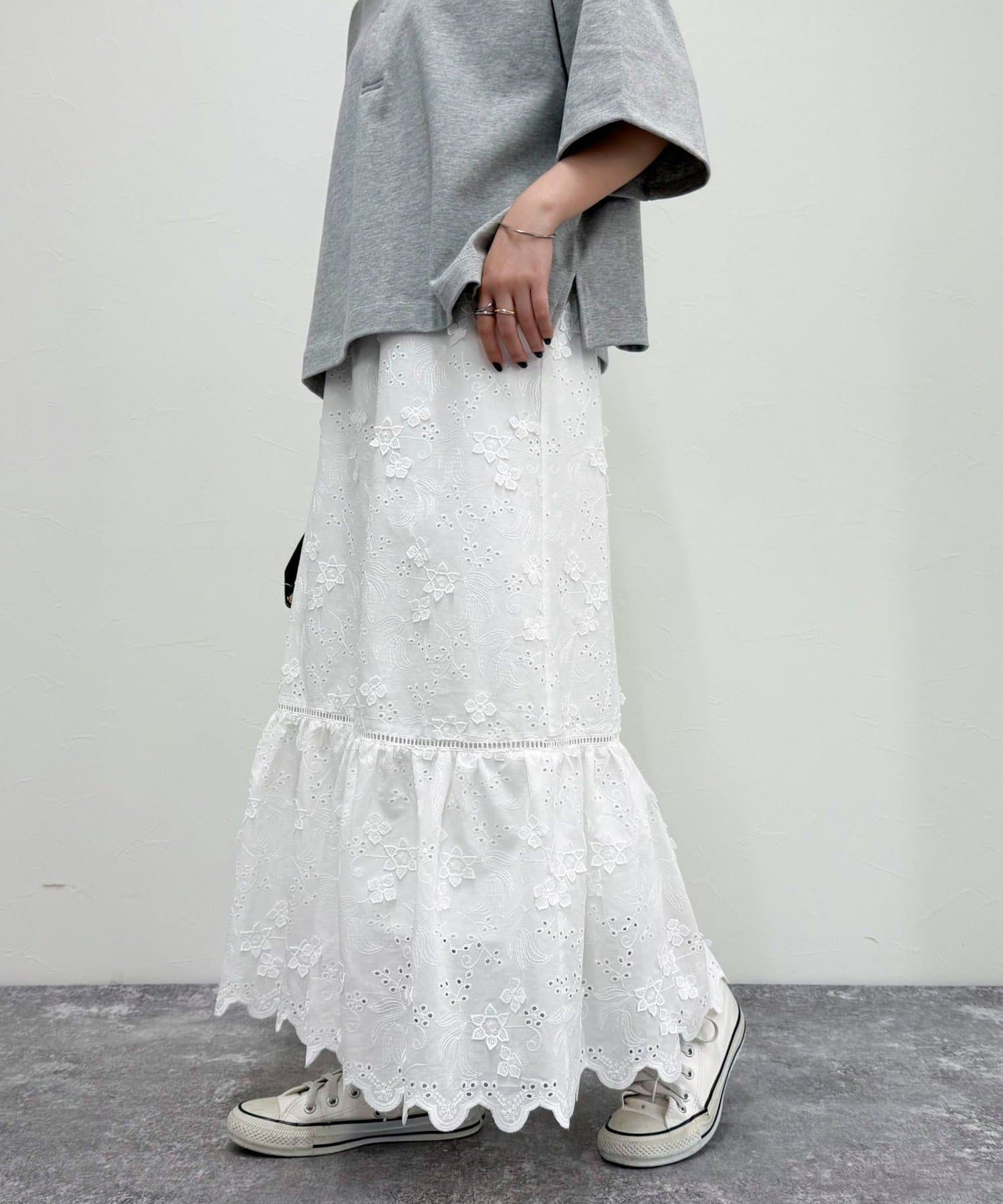・コットンの立体的な刺繍生地が可愛いスカートです