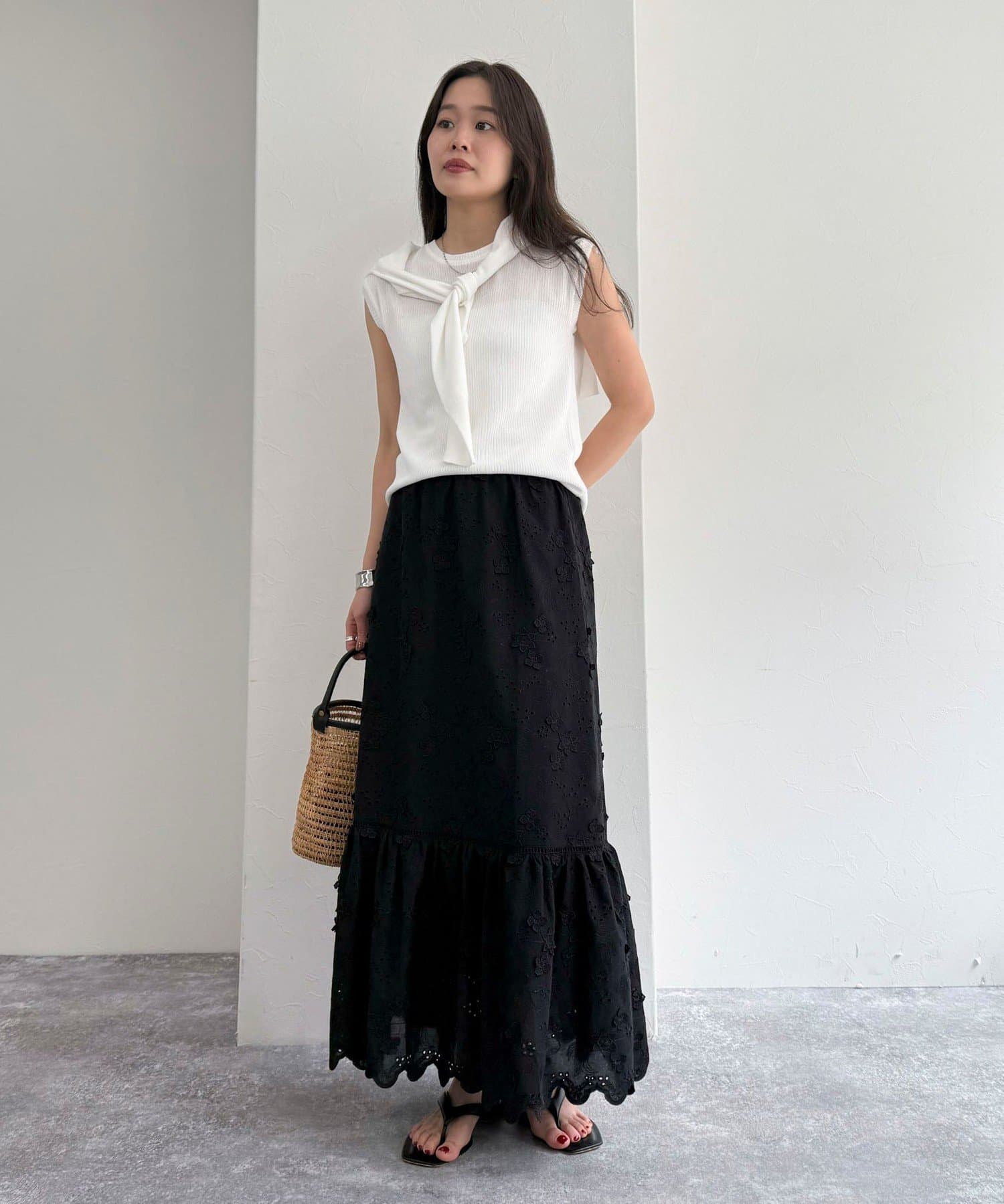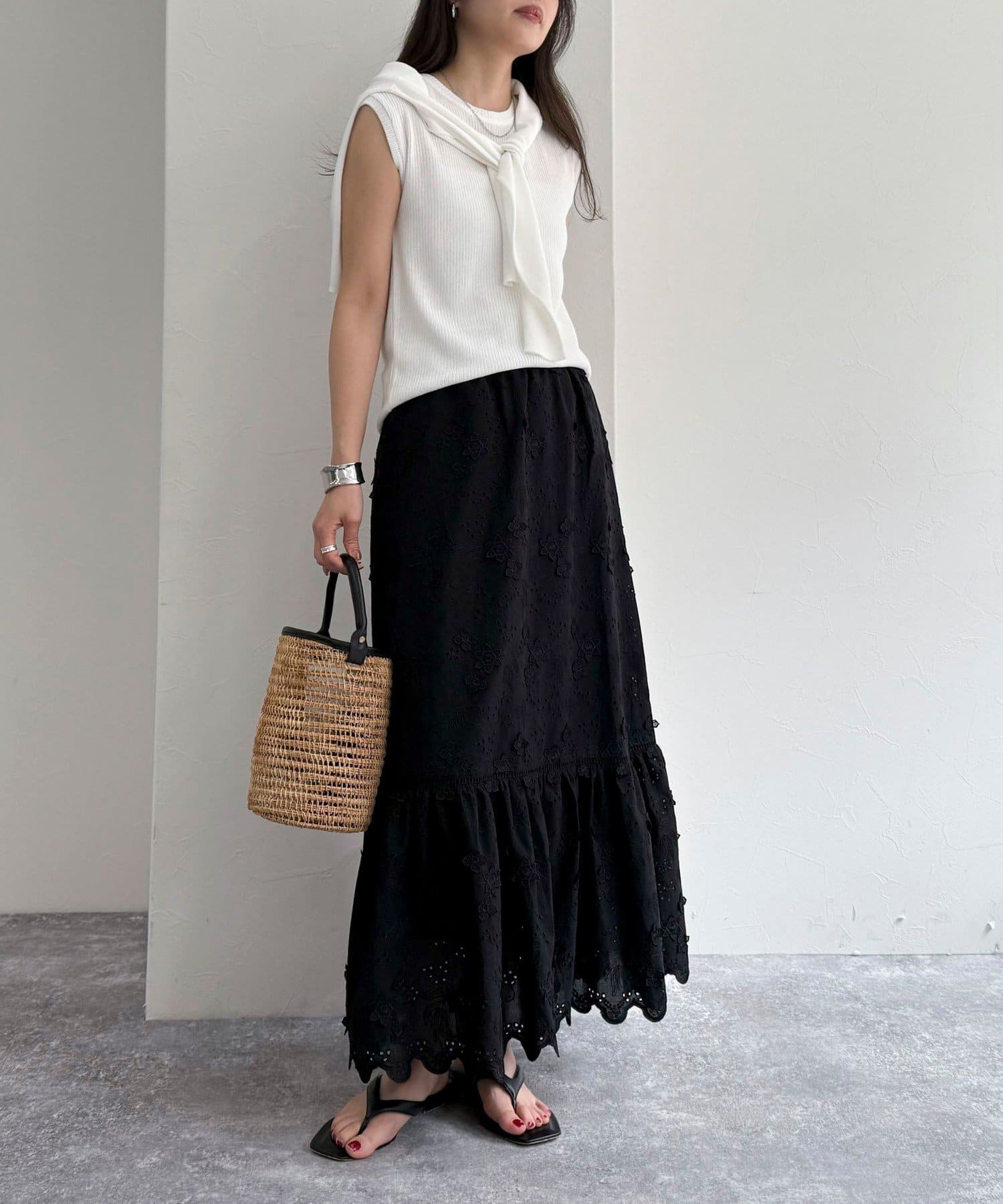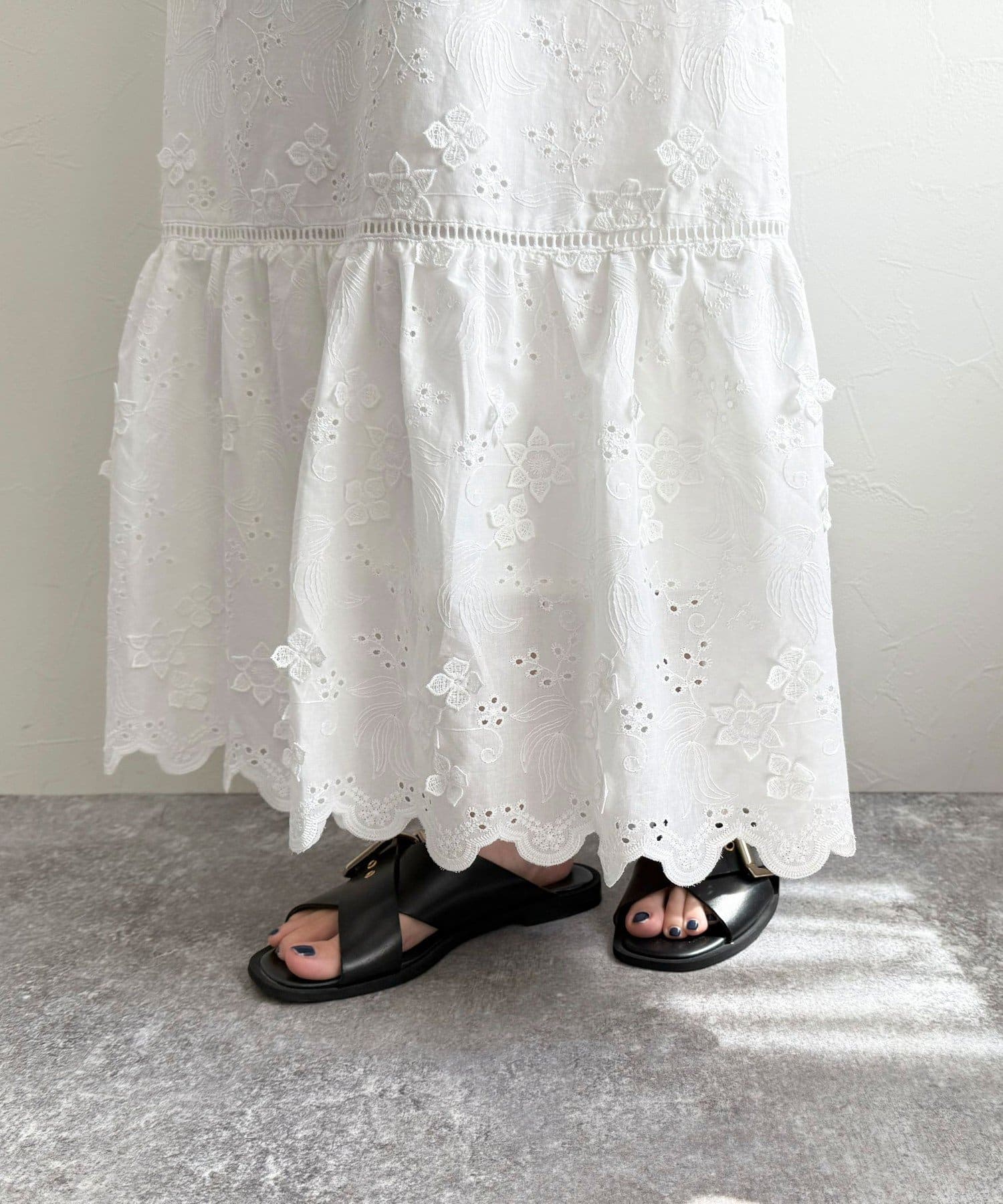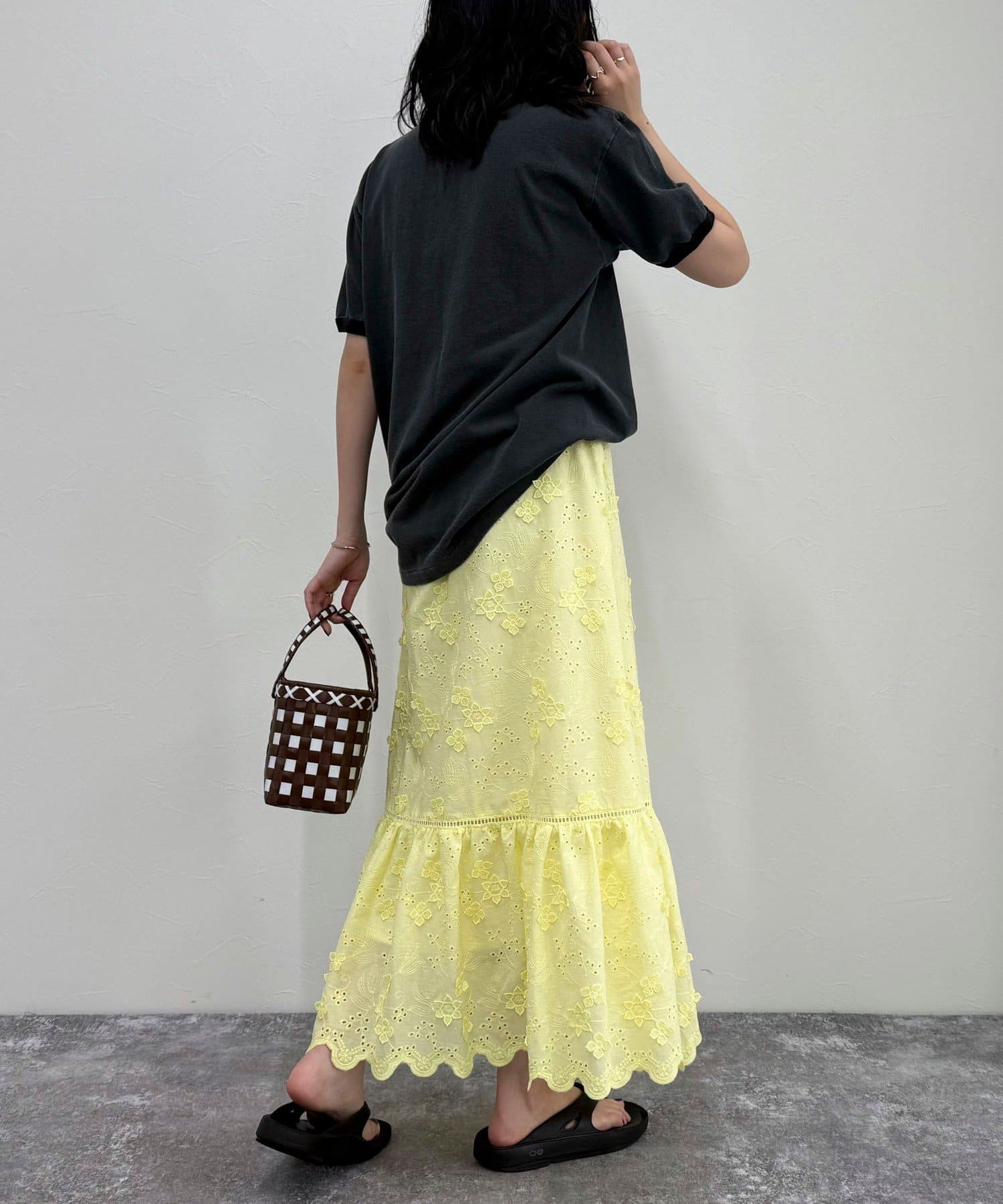 ・コットンの立体的な刺繍生地が可愛いスカートです