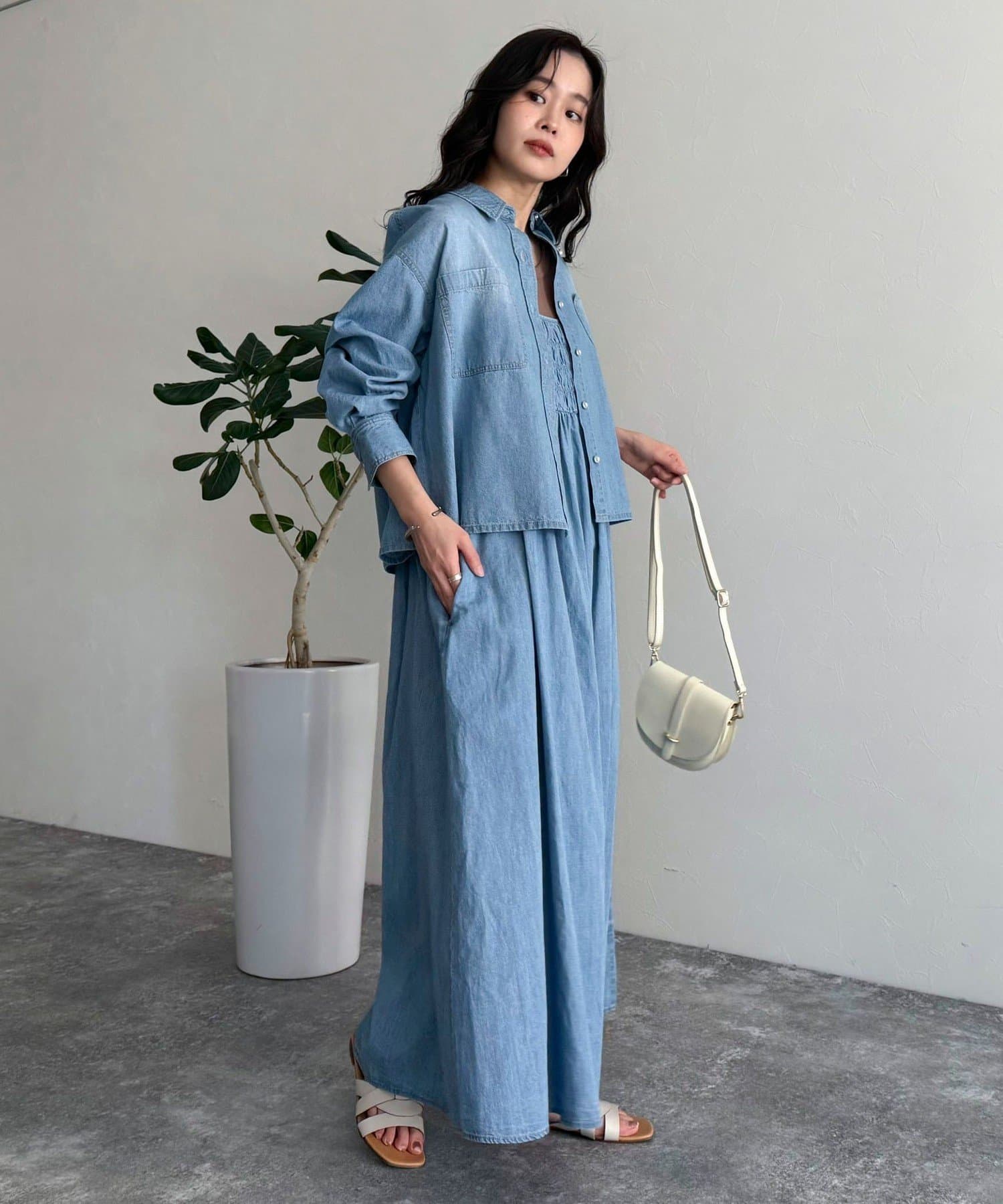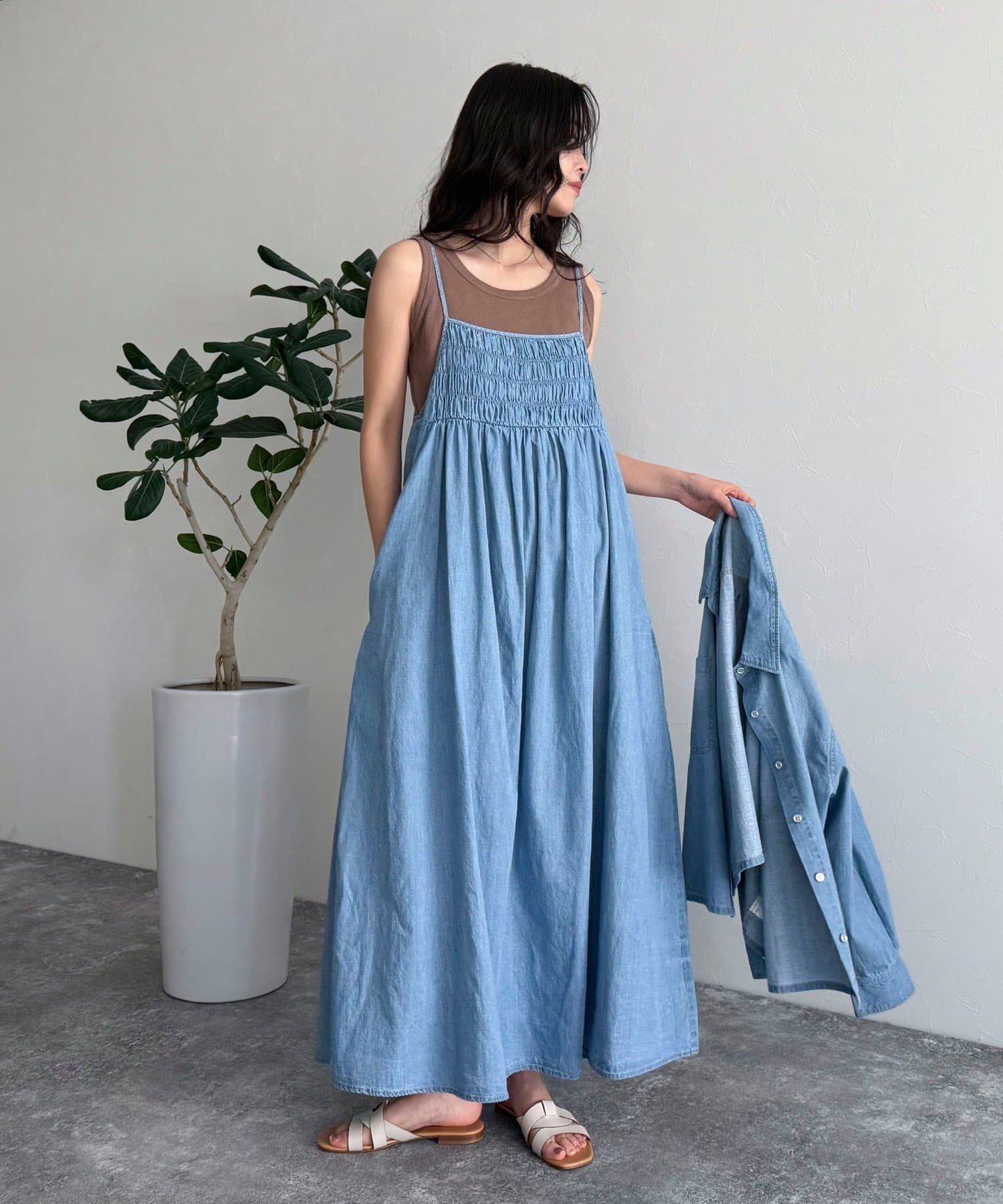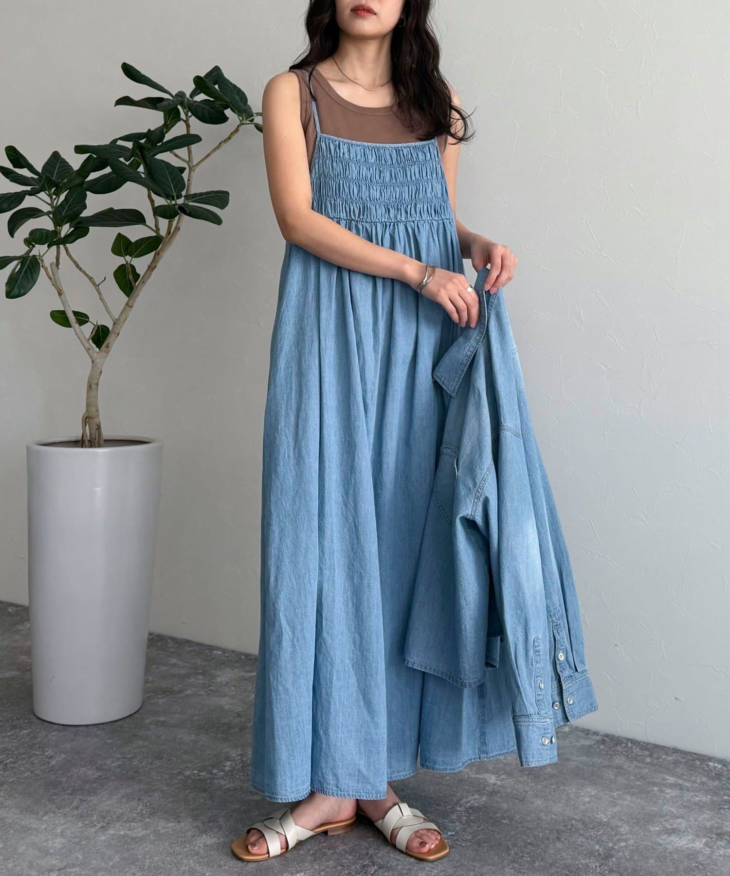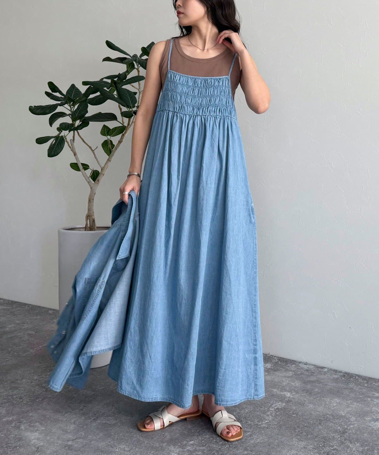 大人カジュアルスタイルにオススメのデニムキャミワンピ
