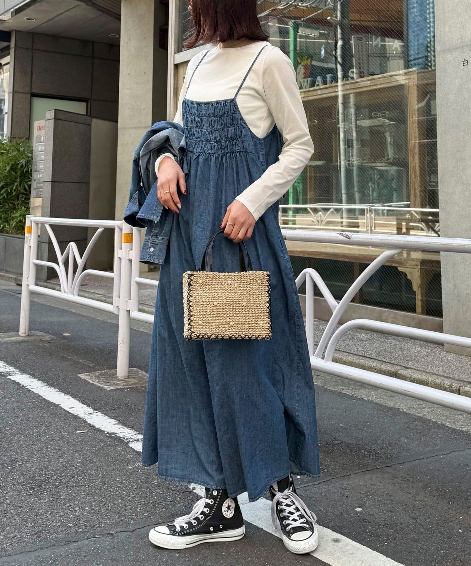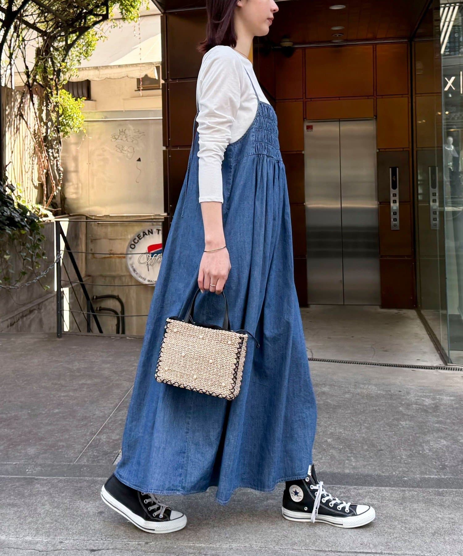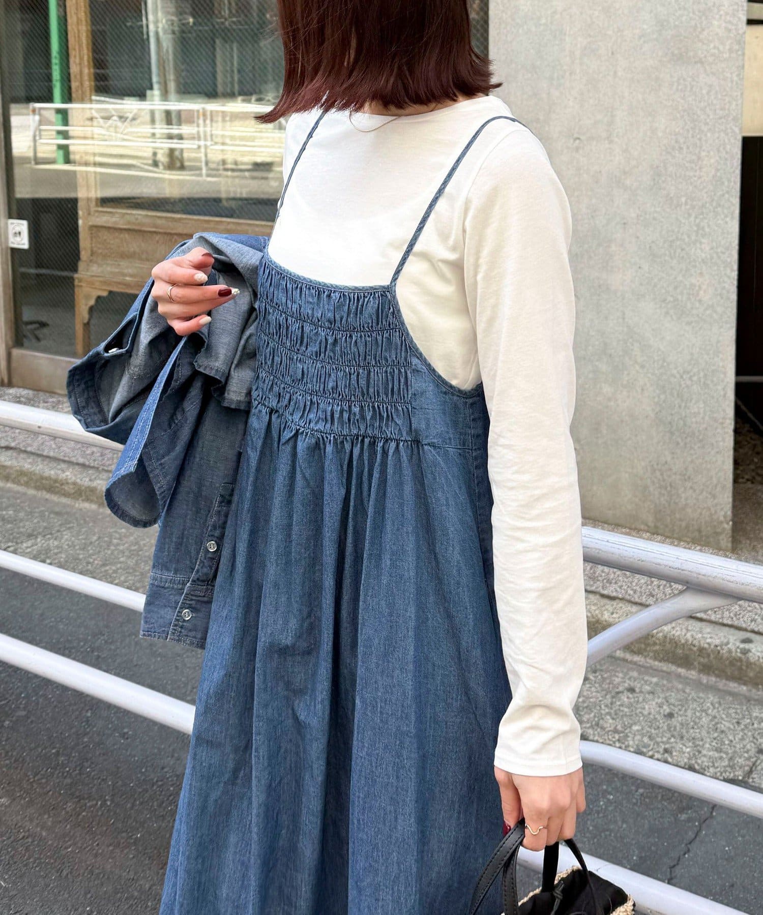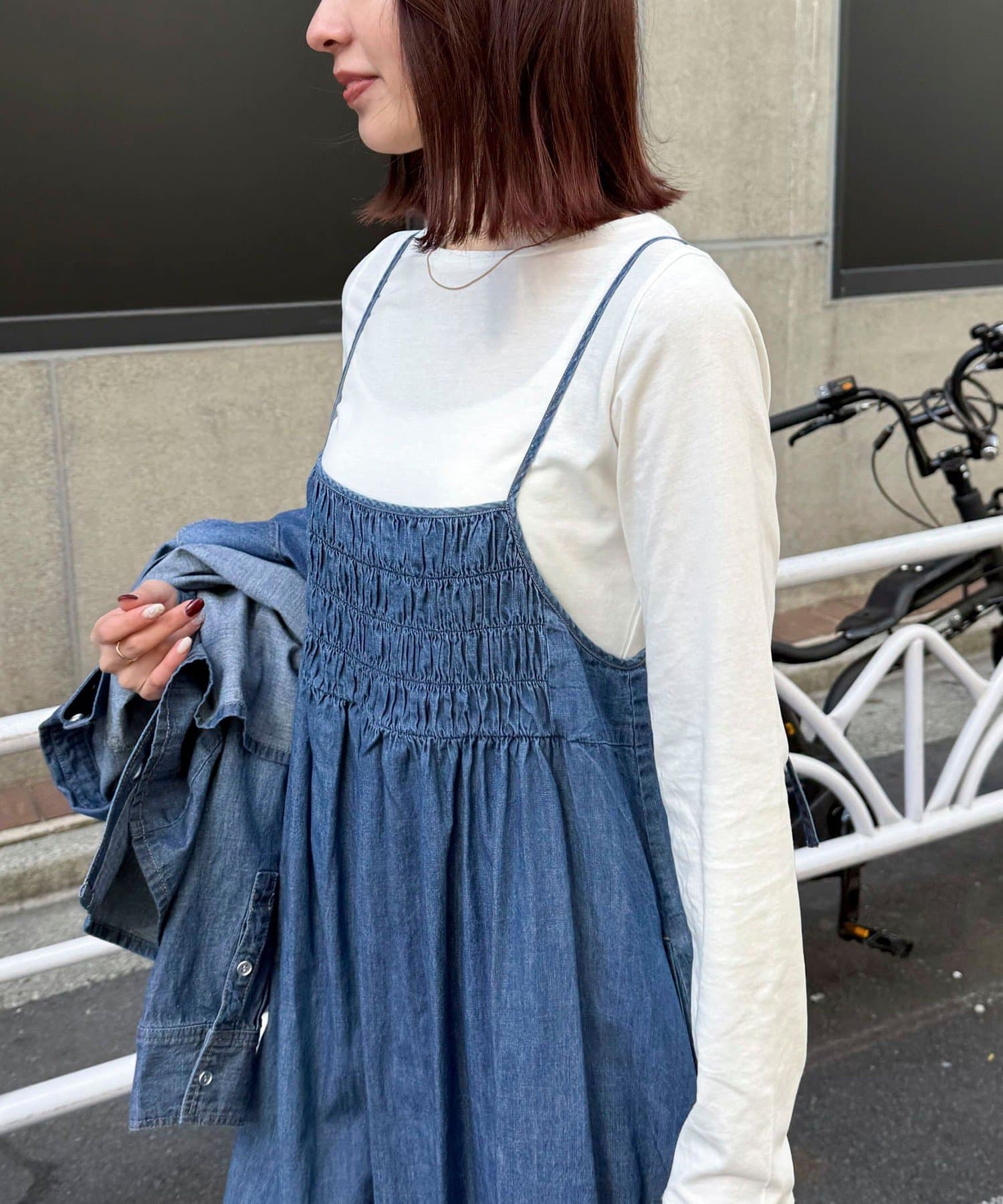 大人カジュアルスタイルにオススメのデニムキャミワンピ
