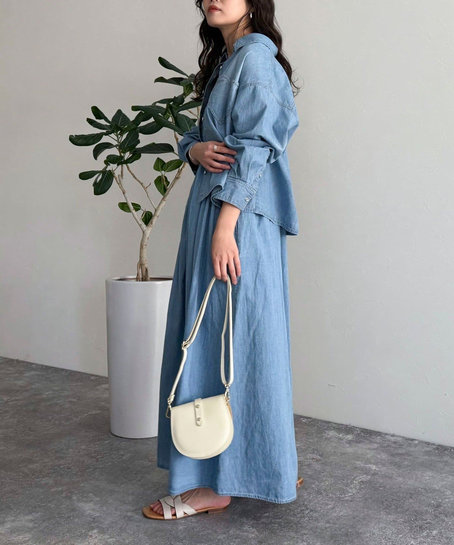 ・同素材のデニムシャツとのセットアップコーデもオススメです