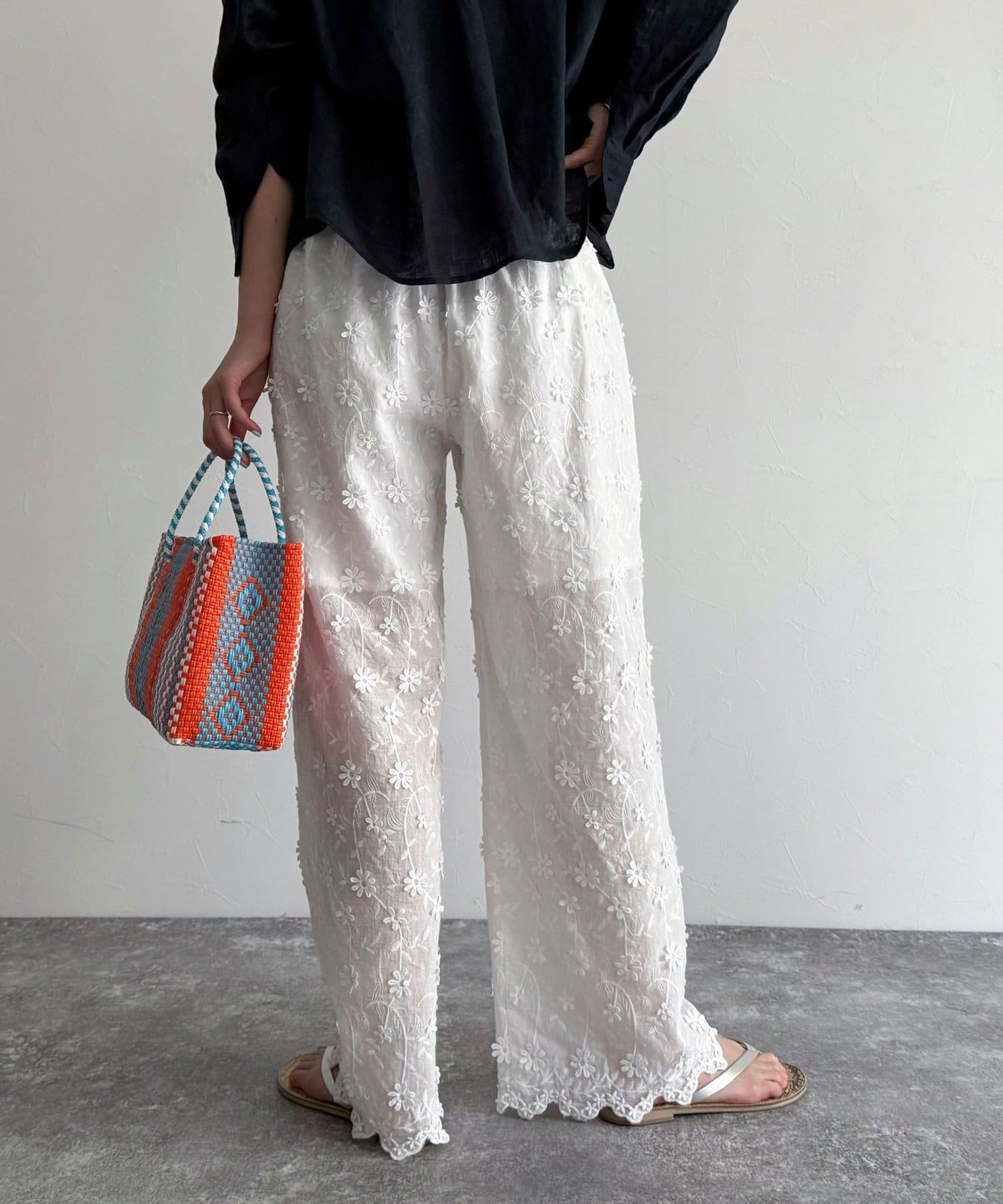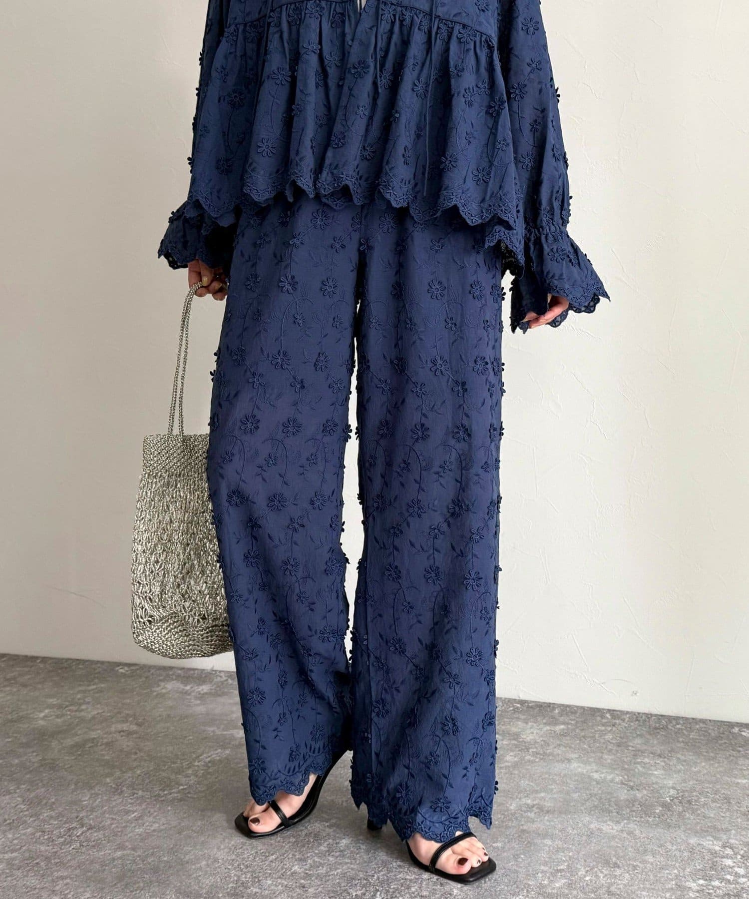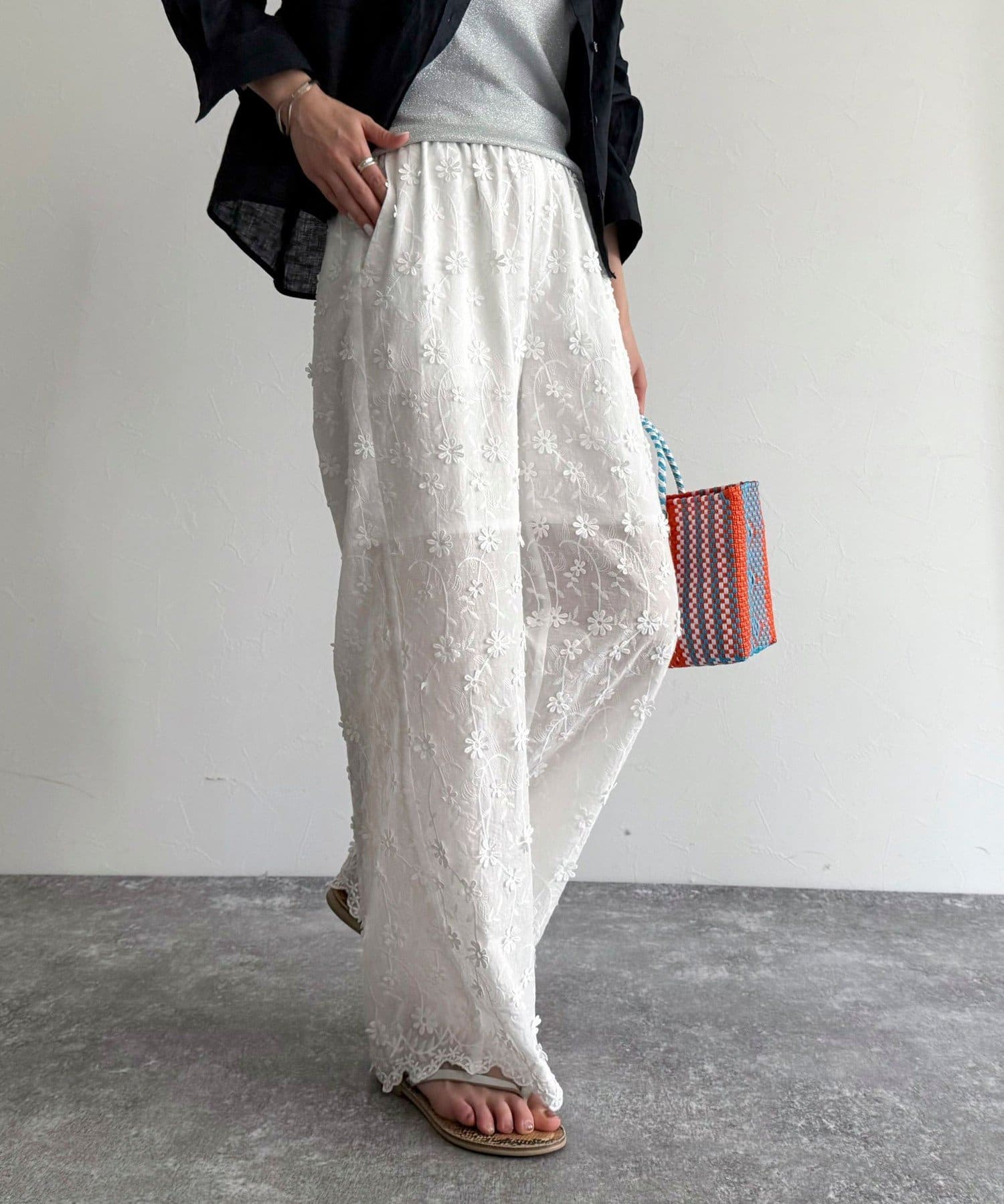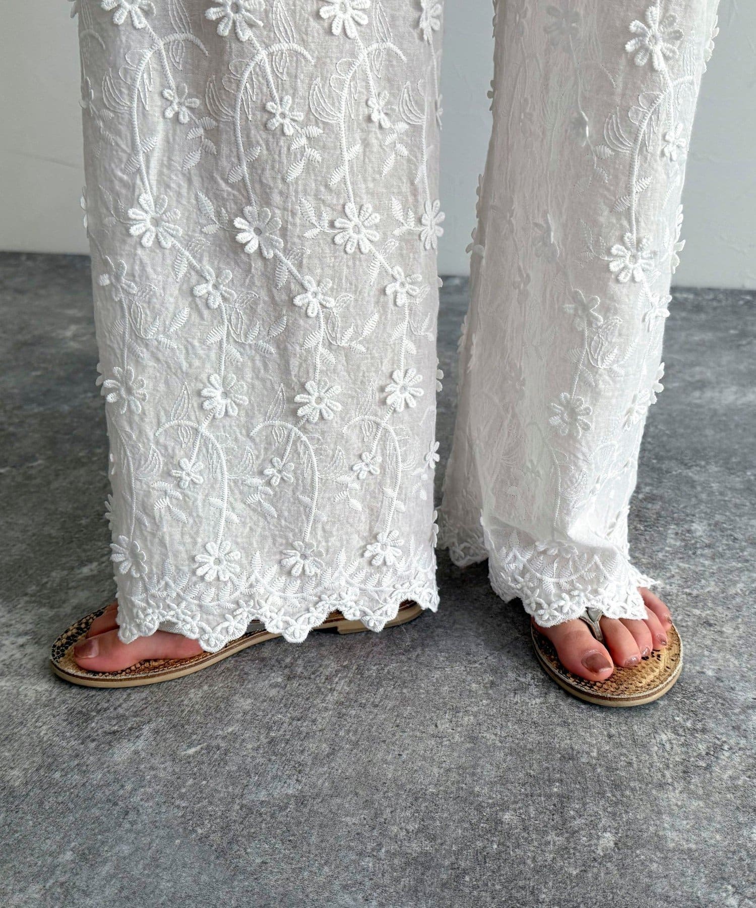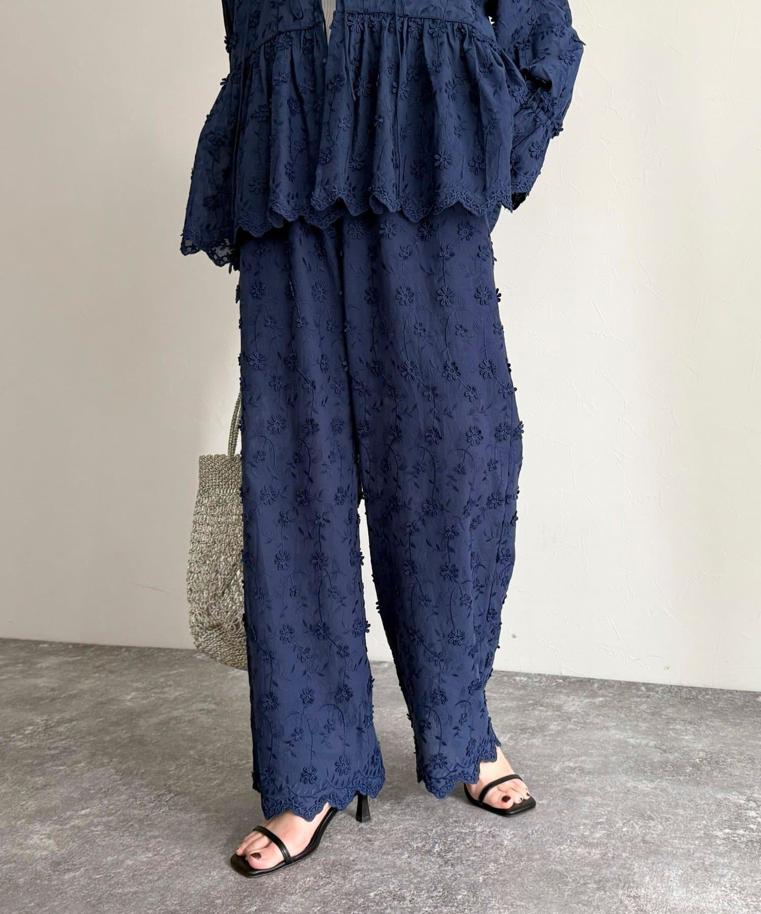 FREDY & GLOSTER(フレディ アンド グロスター) 3D刺繍スカラップイージーパンツ
