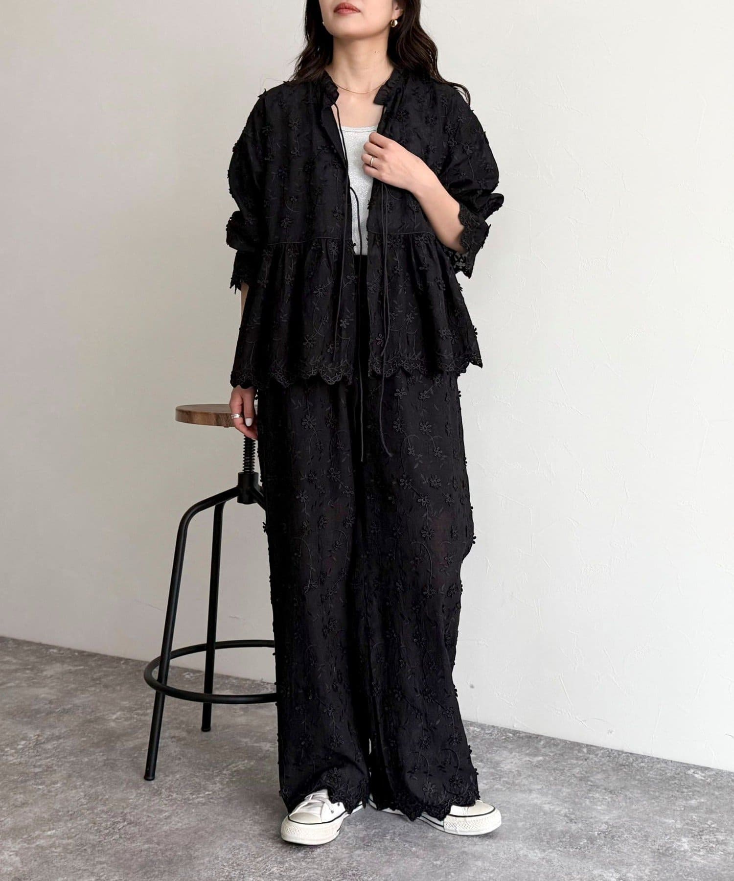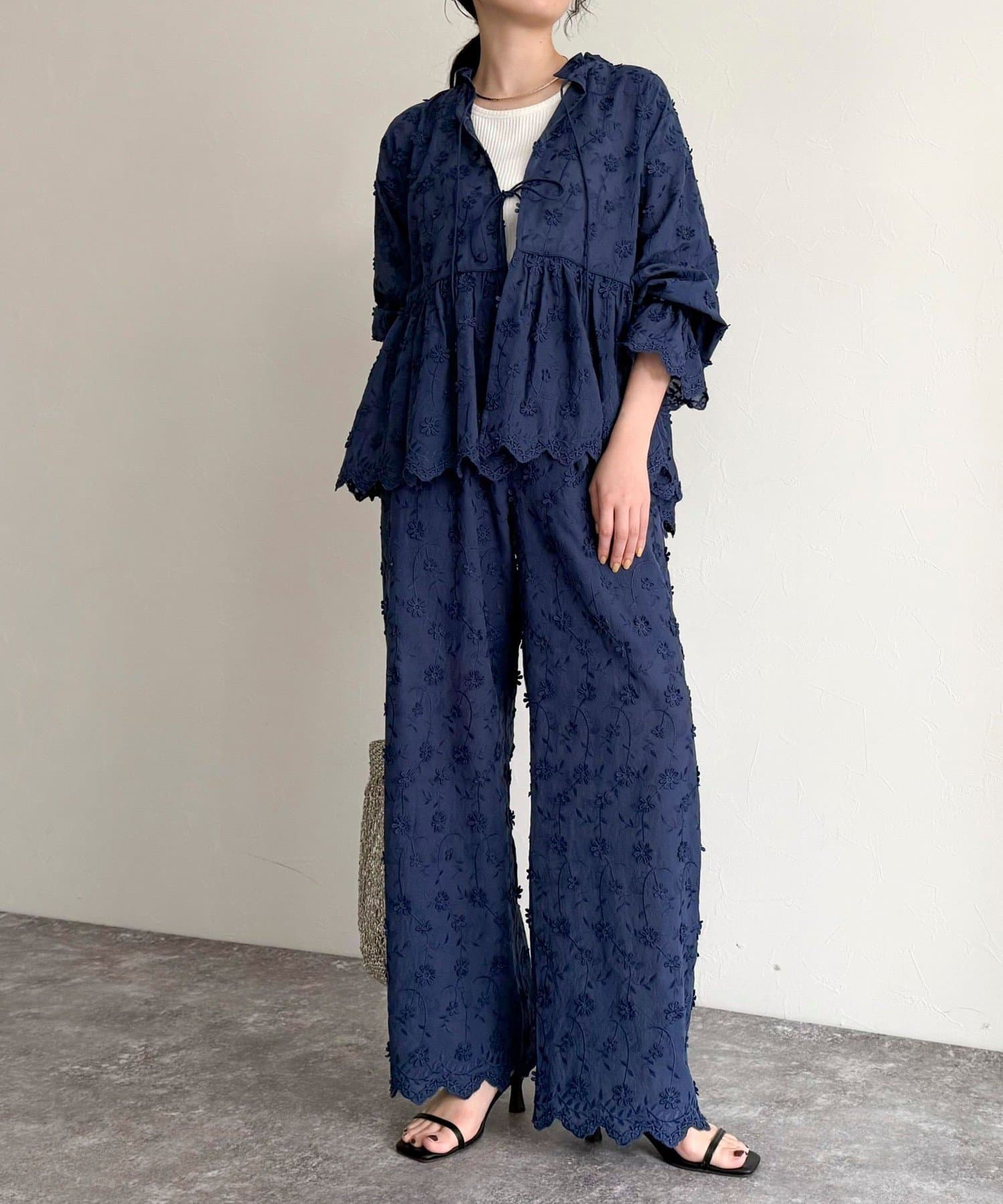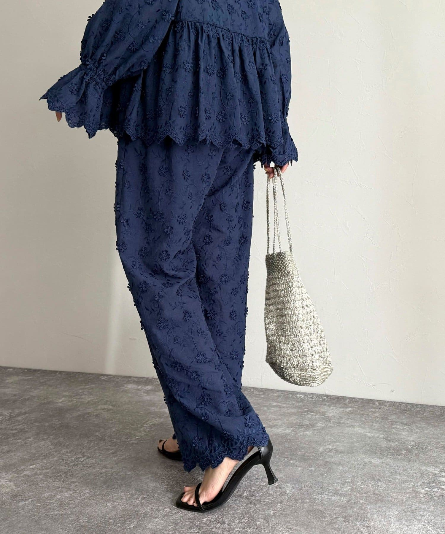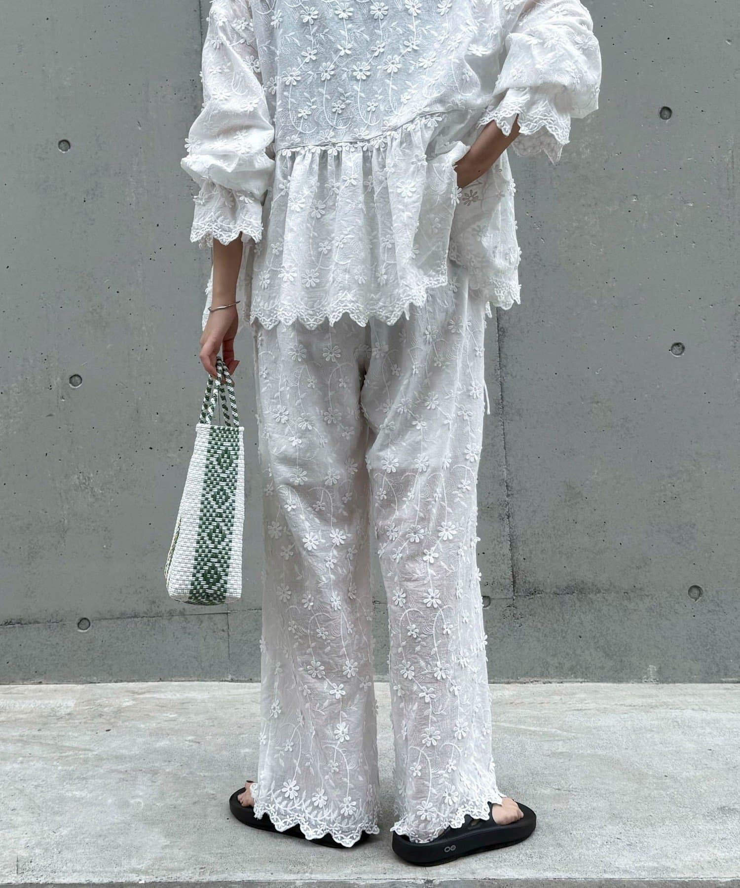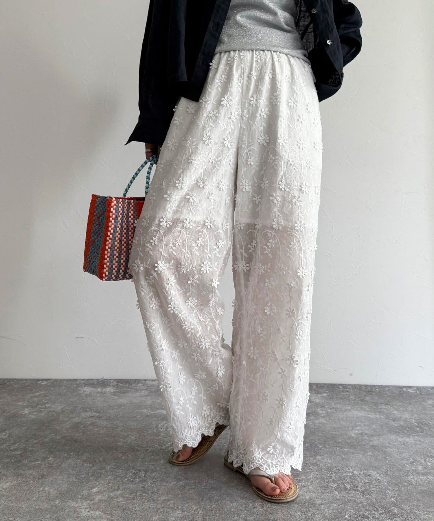 FREDY & GLOSTER(フレディ アンド グロスター) 3D刺繍スカラップイージーパンツ