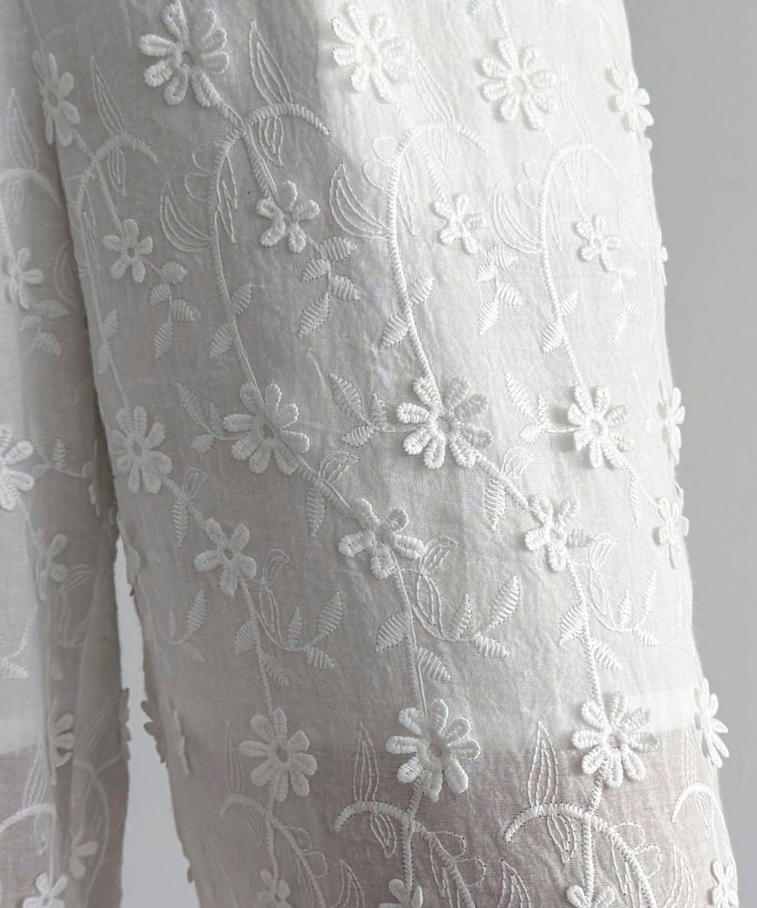 (【5-0021-3-21-003】3D刺繍スカラップ前開きブラウス)