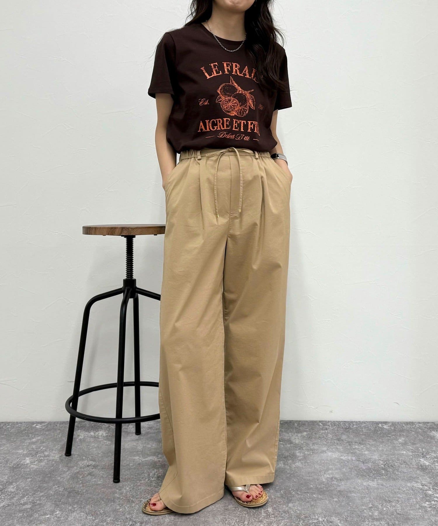 ・コンパクトなトップスをあわせて、パンツのボリューム感をいかしたメリハリのある着こなしがおすすめです