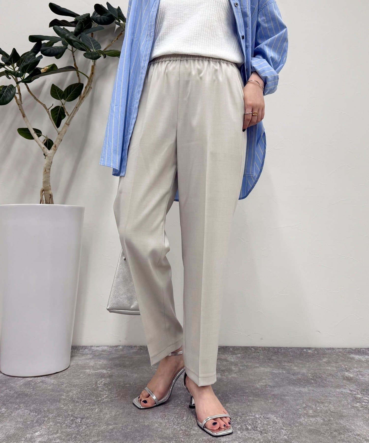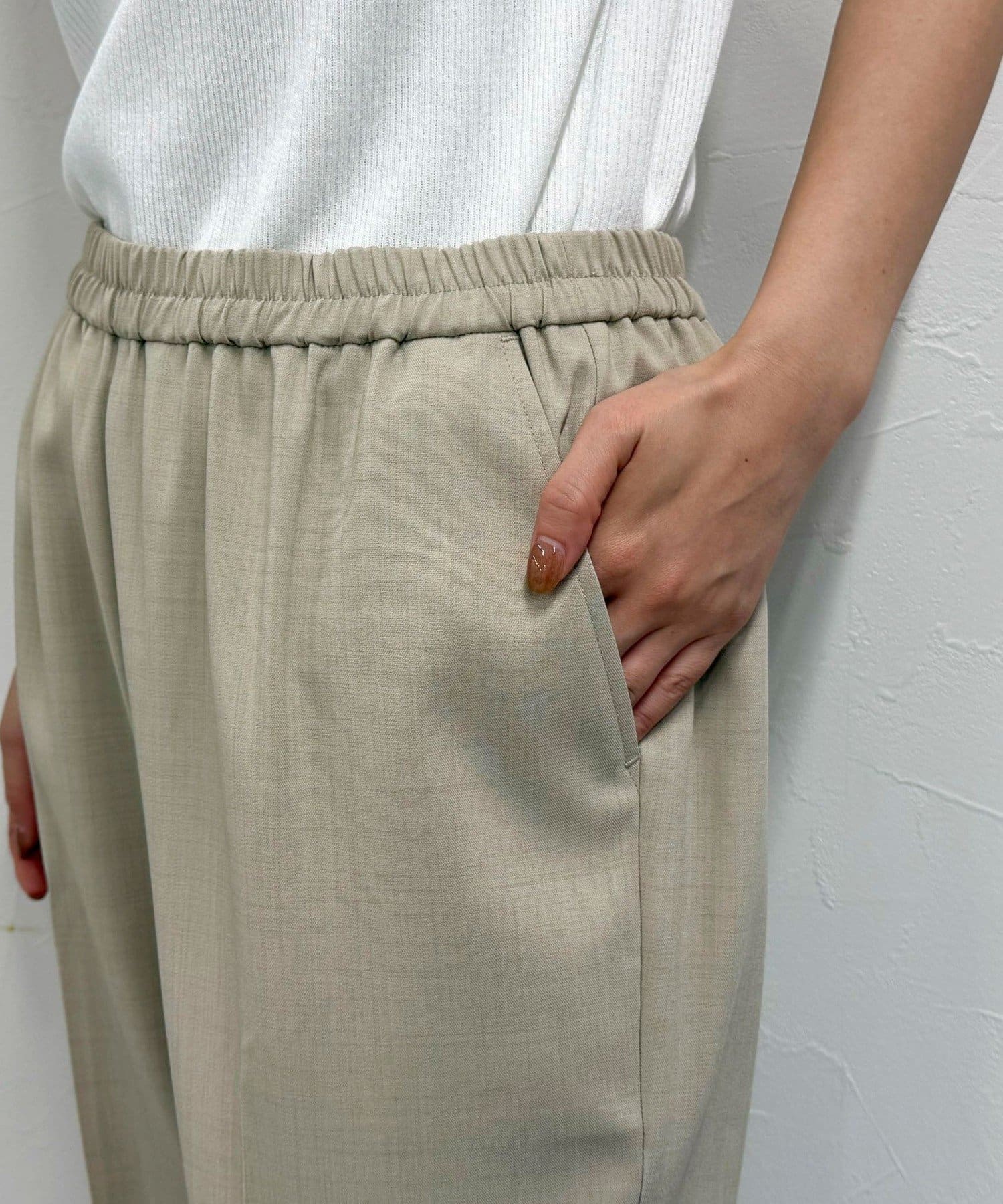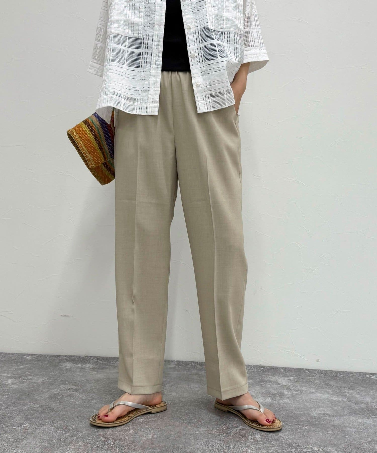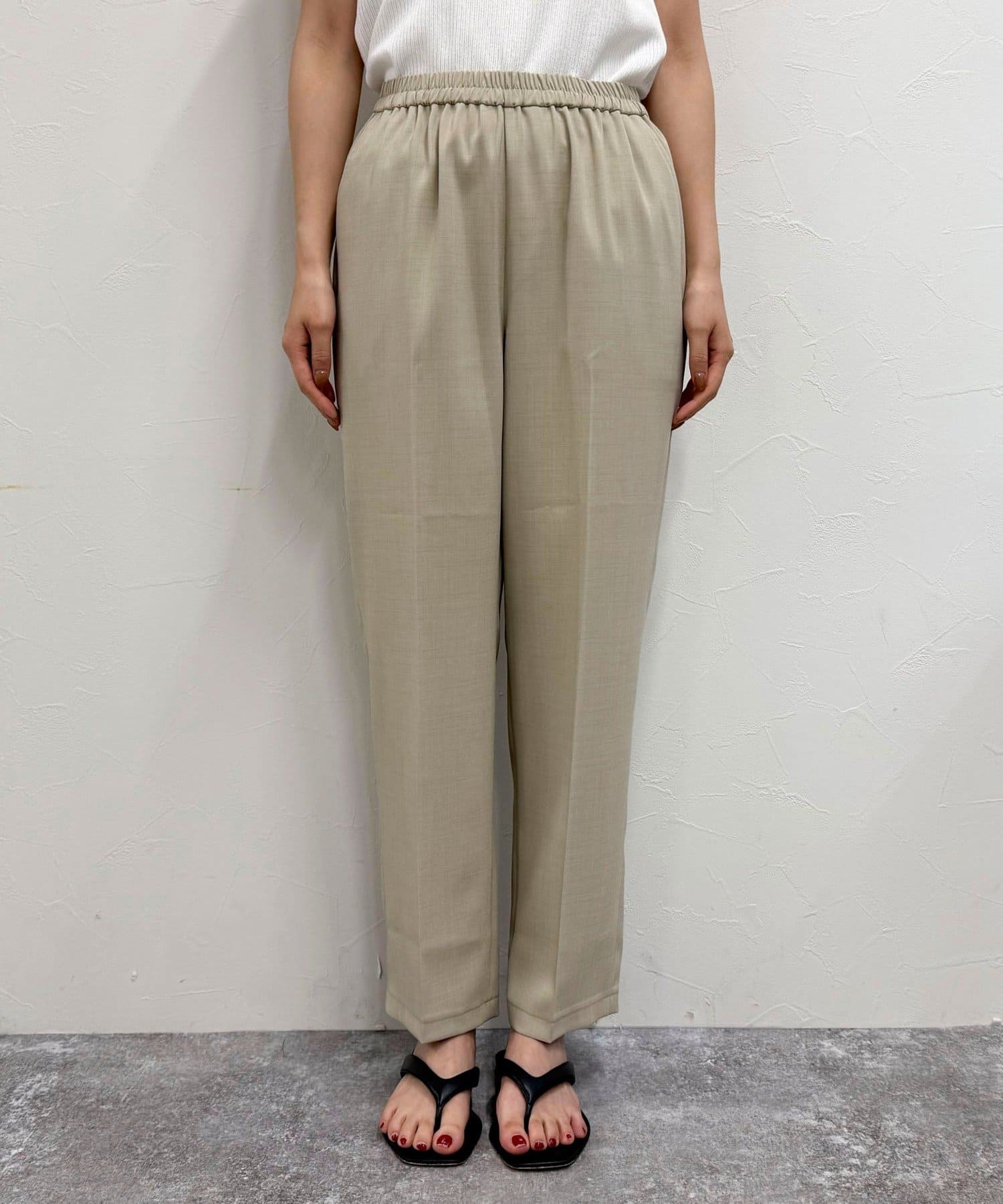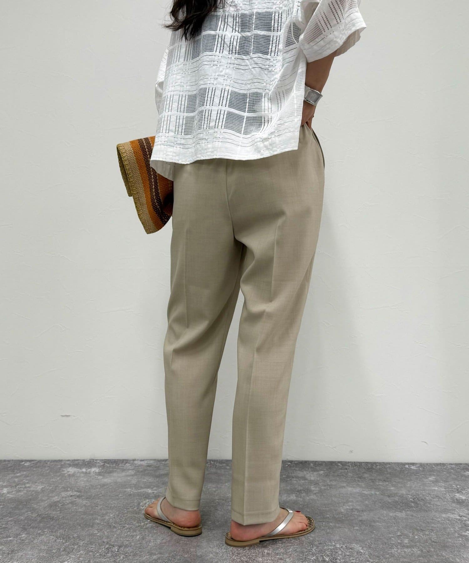 ・イージーケアなドライポリ素材を使用したテーパードパンツです