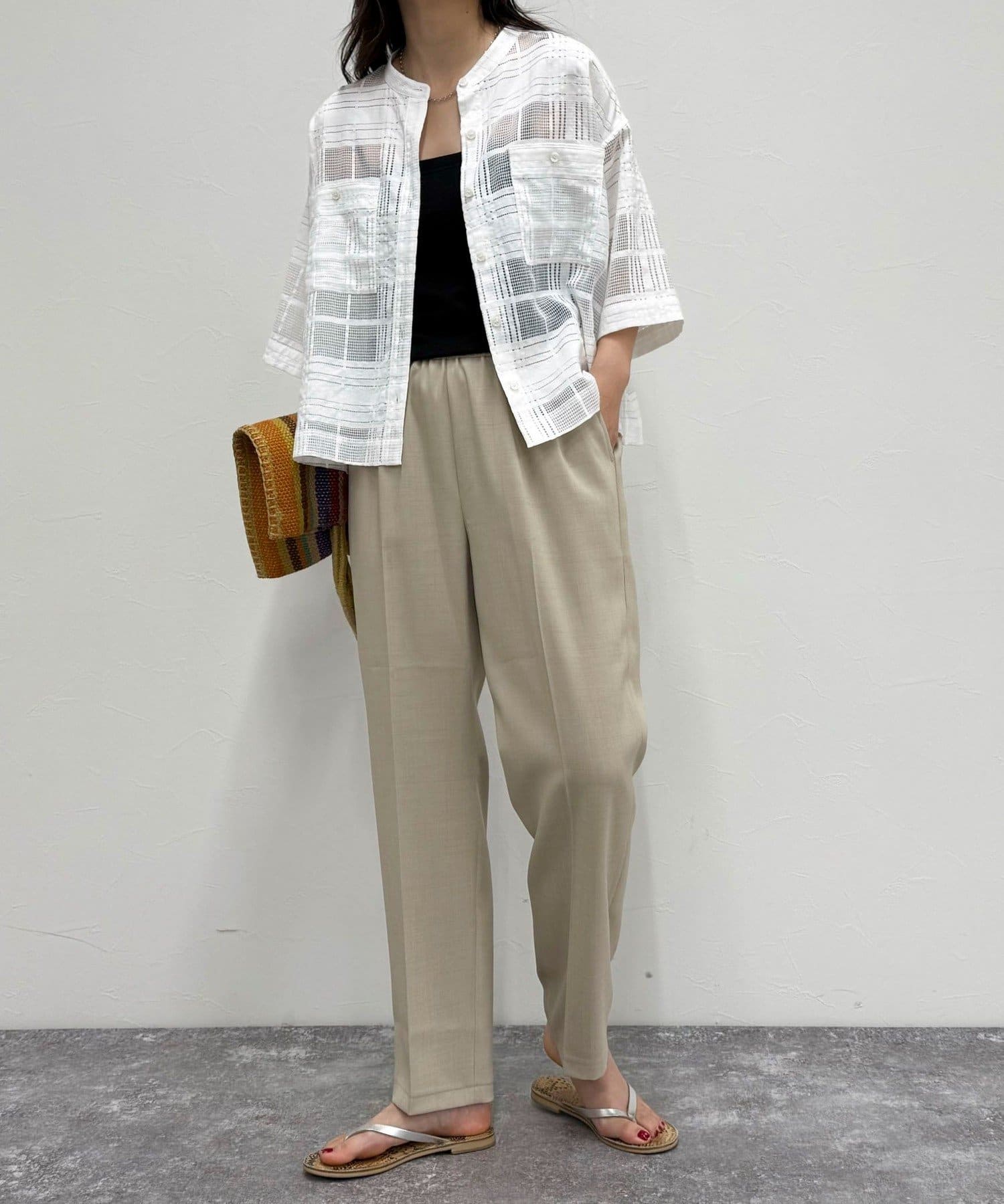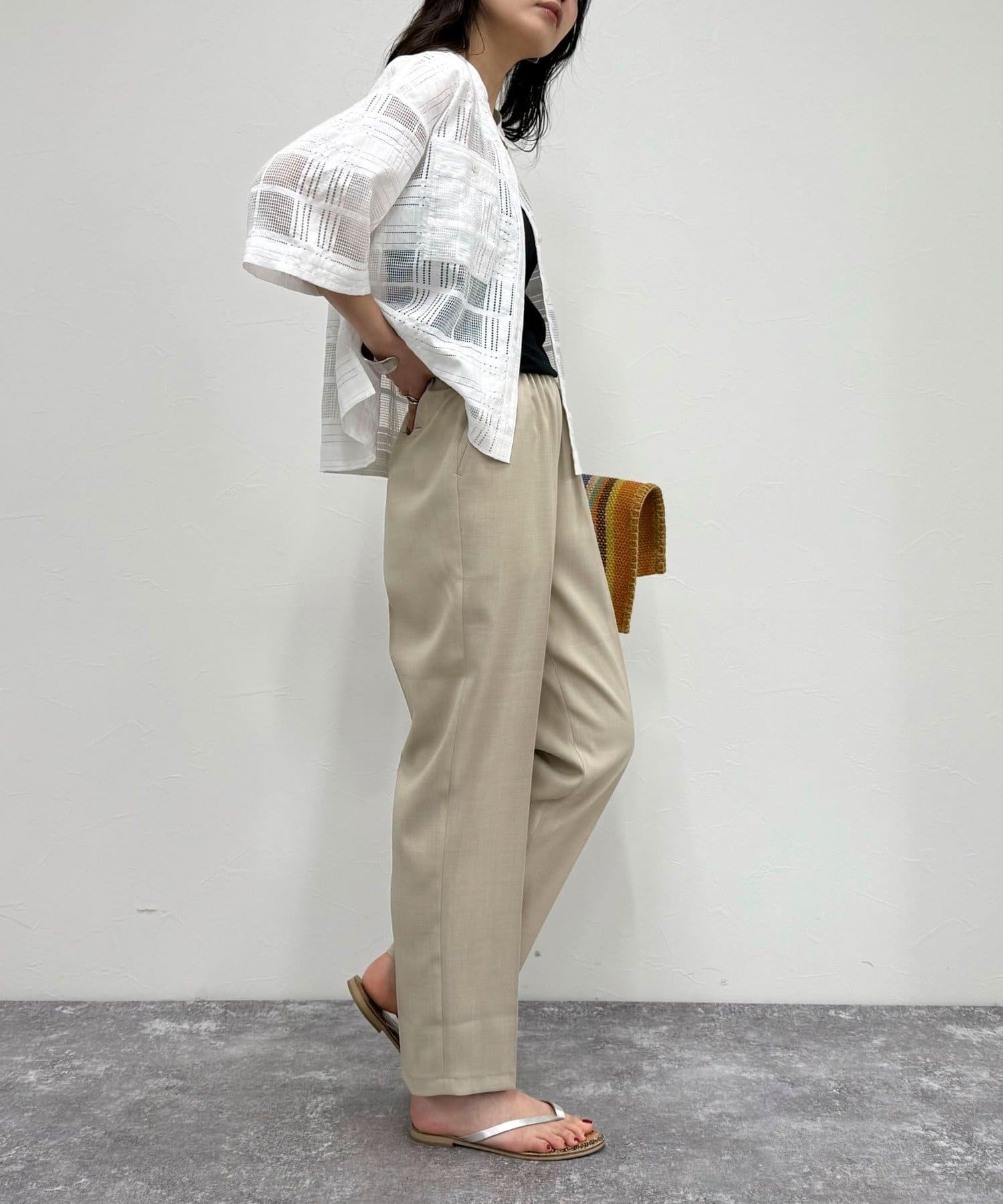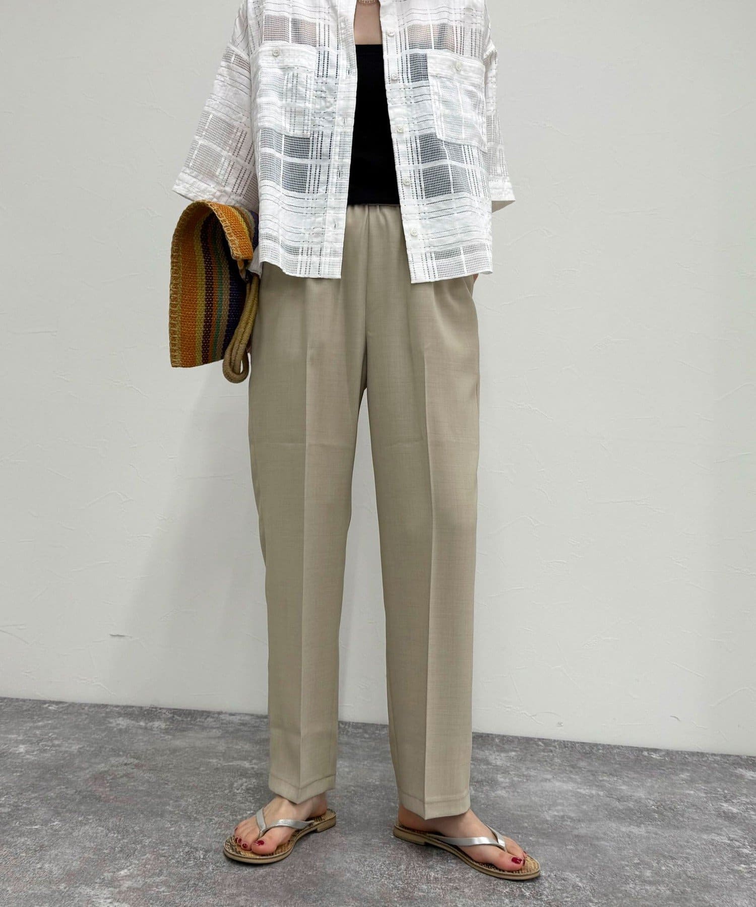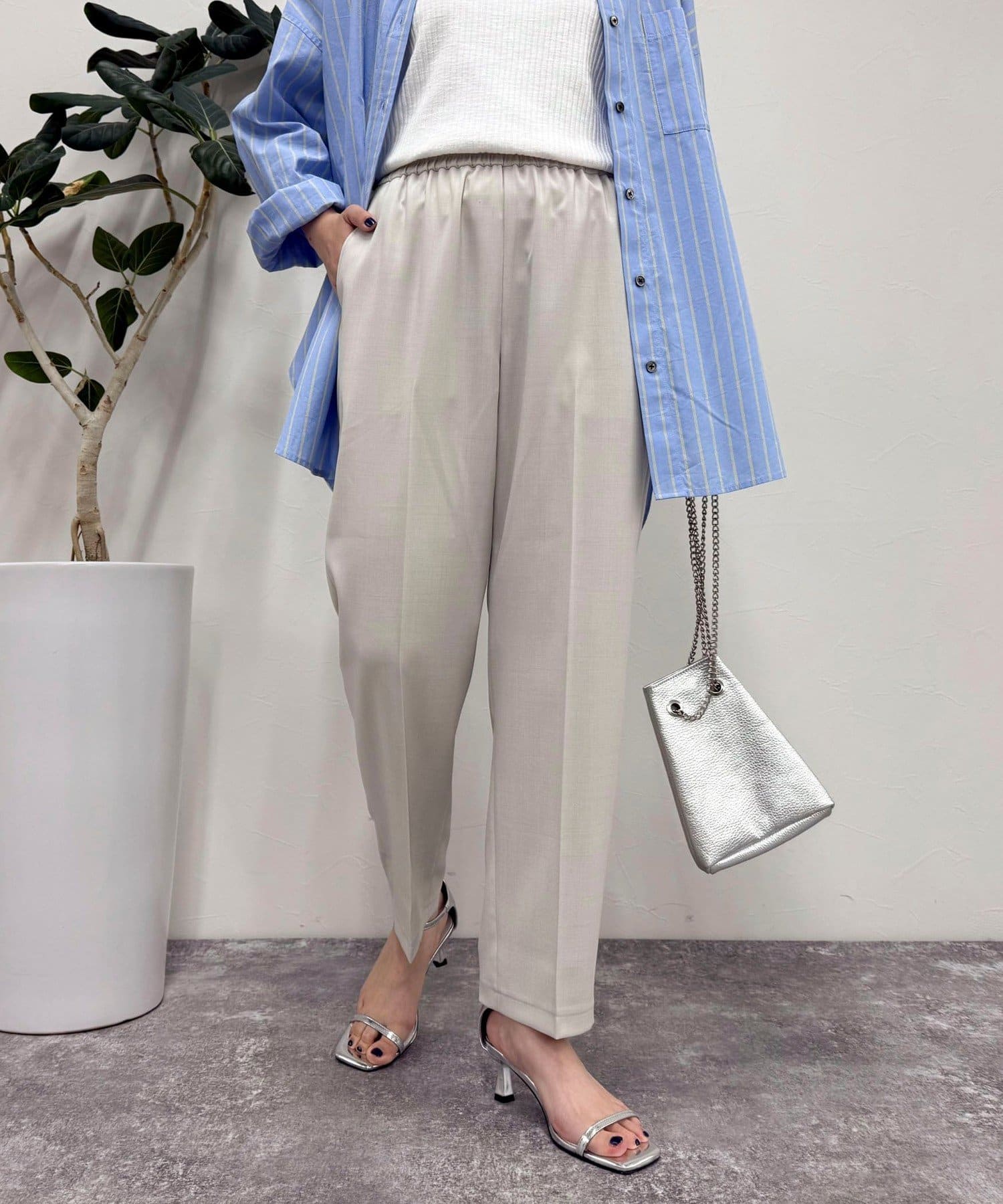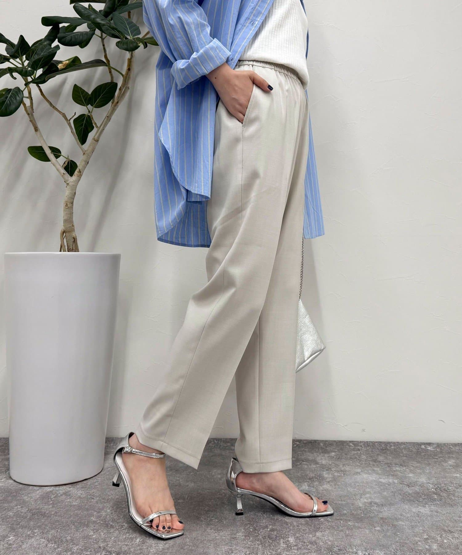 ・イージーケアなドライポリ素材を使用したテーパードパンツです