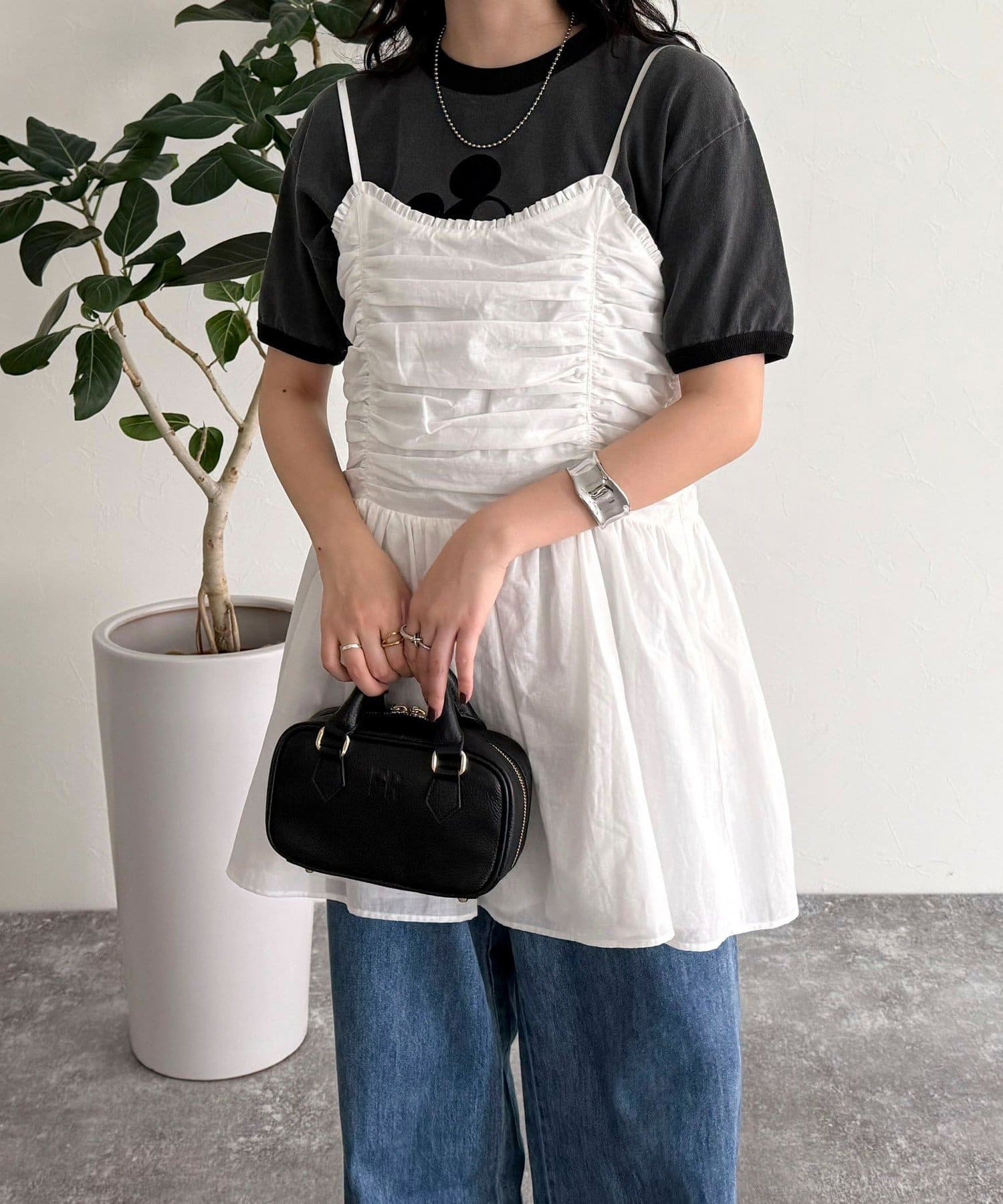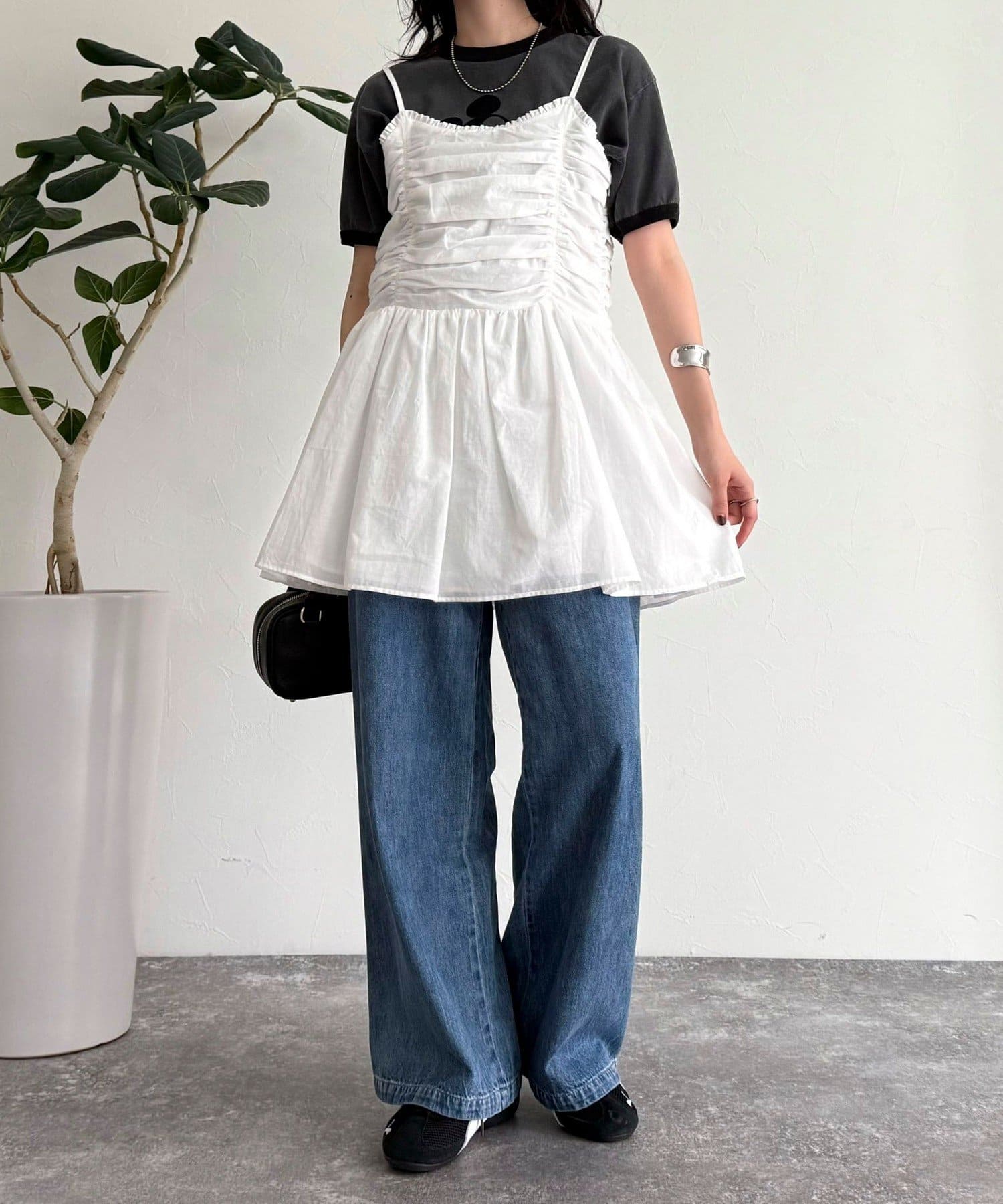 ・たっぷり入ったギャザーがポイントのトレンドライクなキャミビスチェです