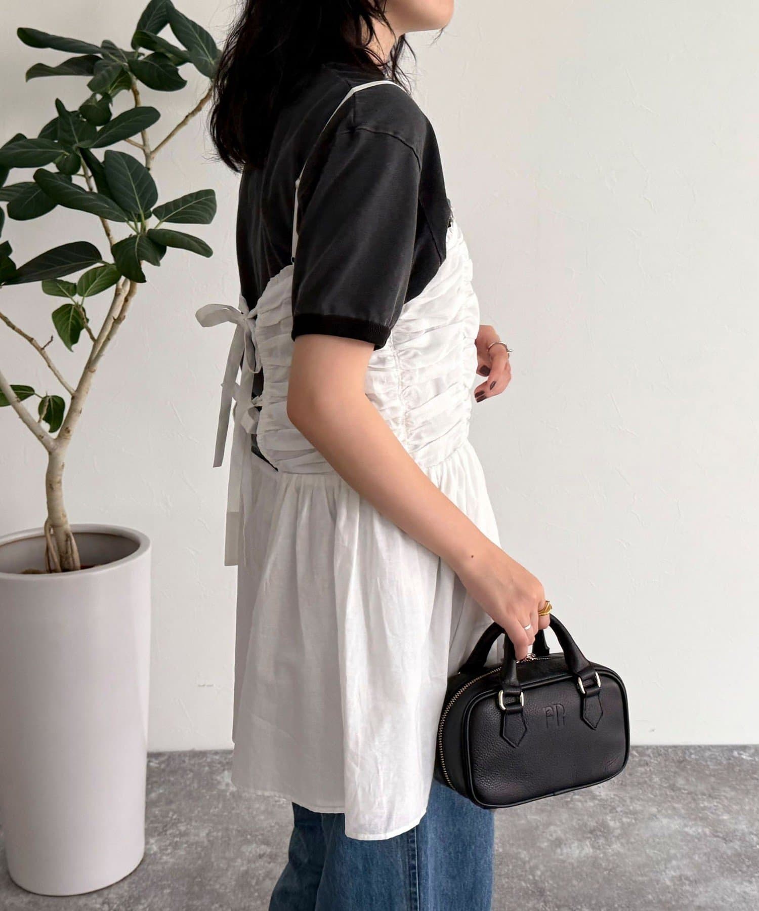 ・ふんわりとギャザーを寄せたデザインが、大人レディな装いを演出