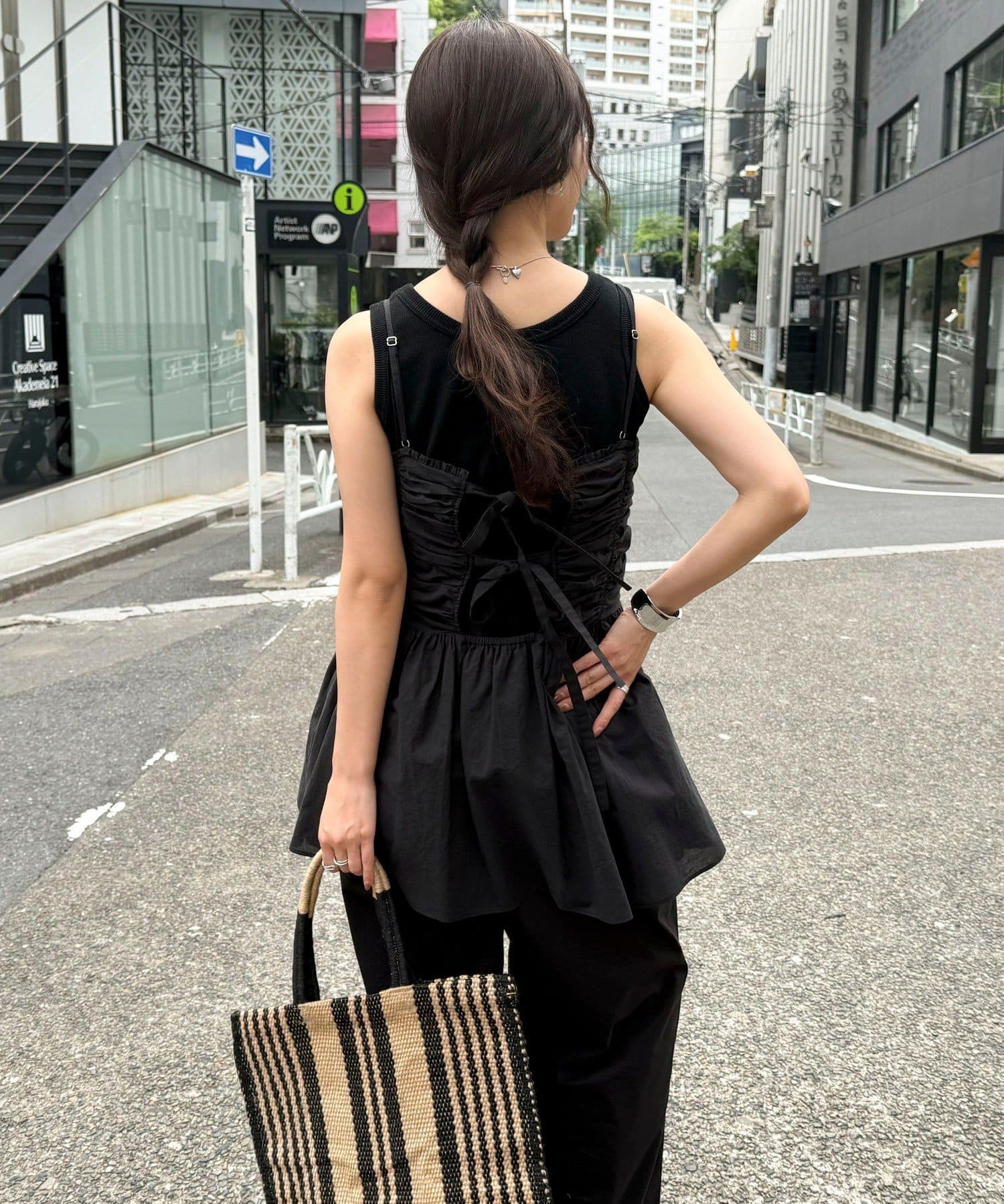 ・後ろのリボンデザインも可愛く、全身抜かりなくお洒落な1枚です