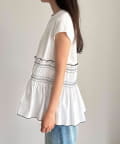 ・繊細なスモッキング刺繍をあしらった表情豊かなフレンチスリーブのプルオーバーです