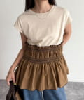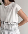 ・肩まわりをやさしくカバーするフレンチスリーブと程よくゆとりのあるシルエットが抜け感を演出