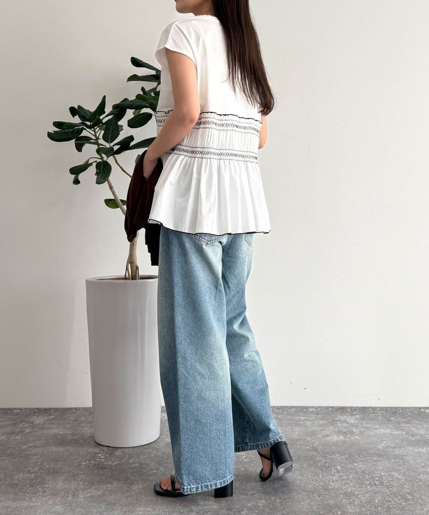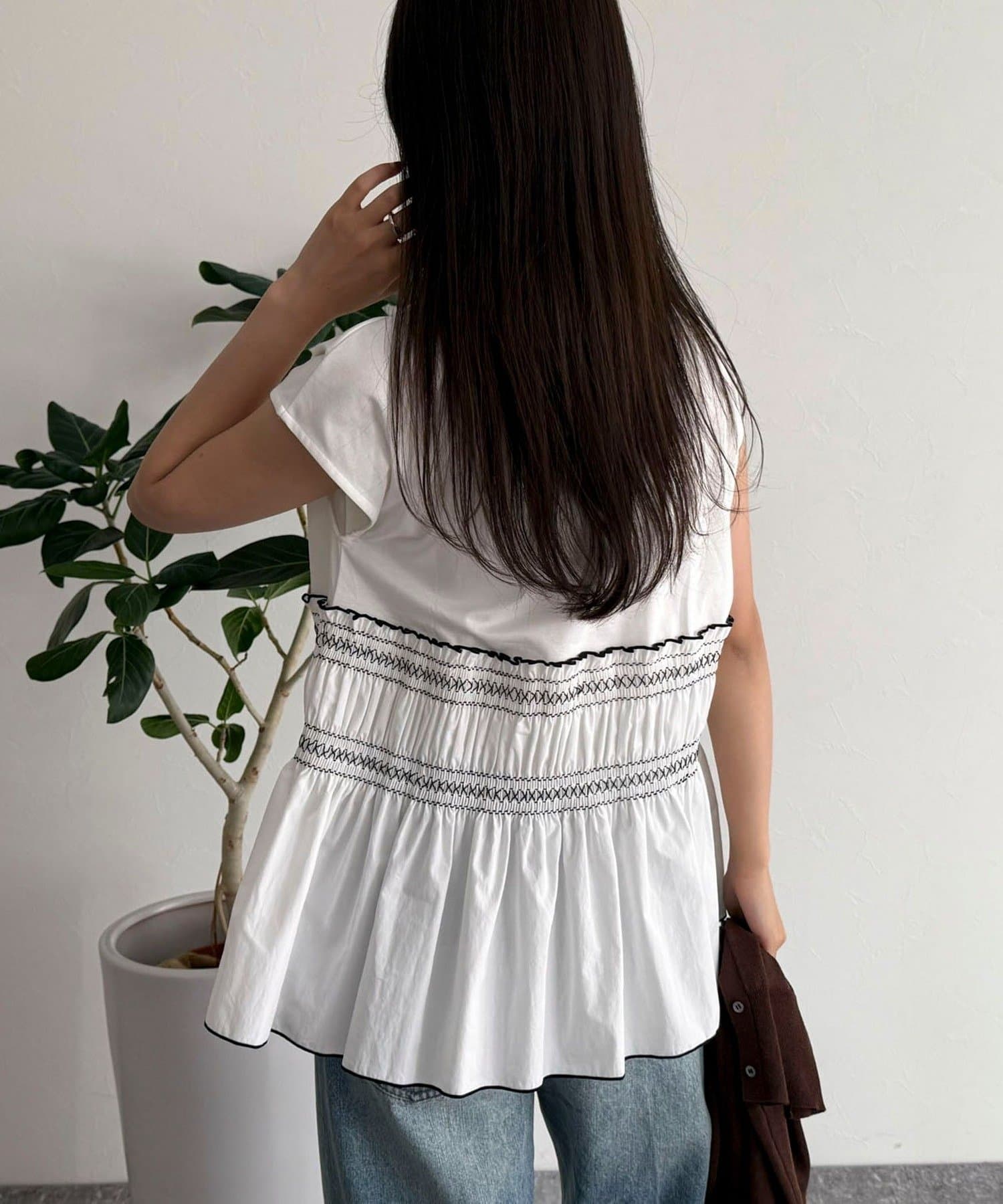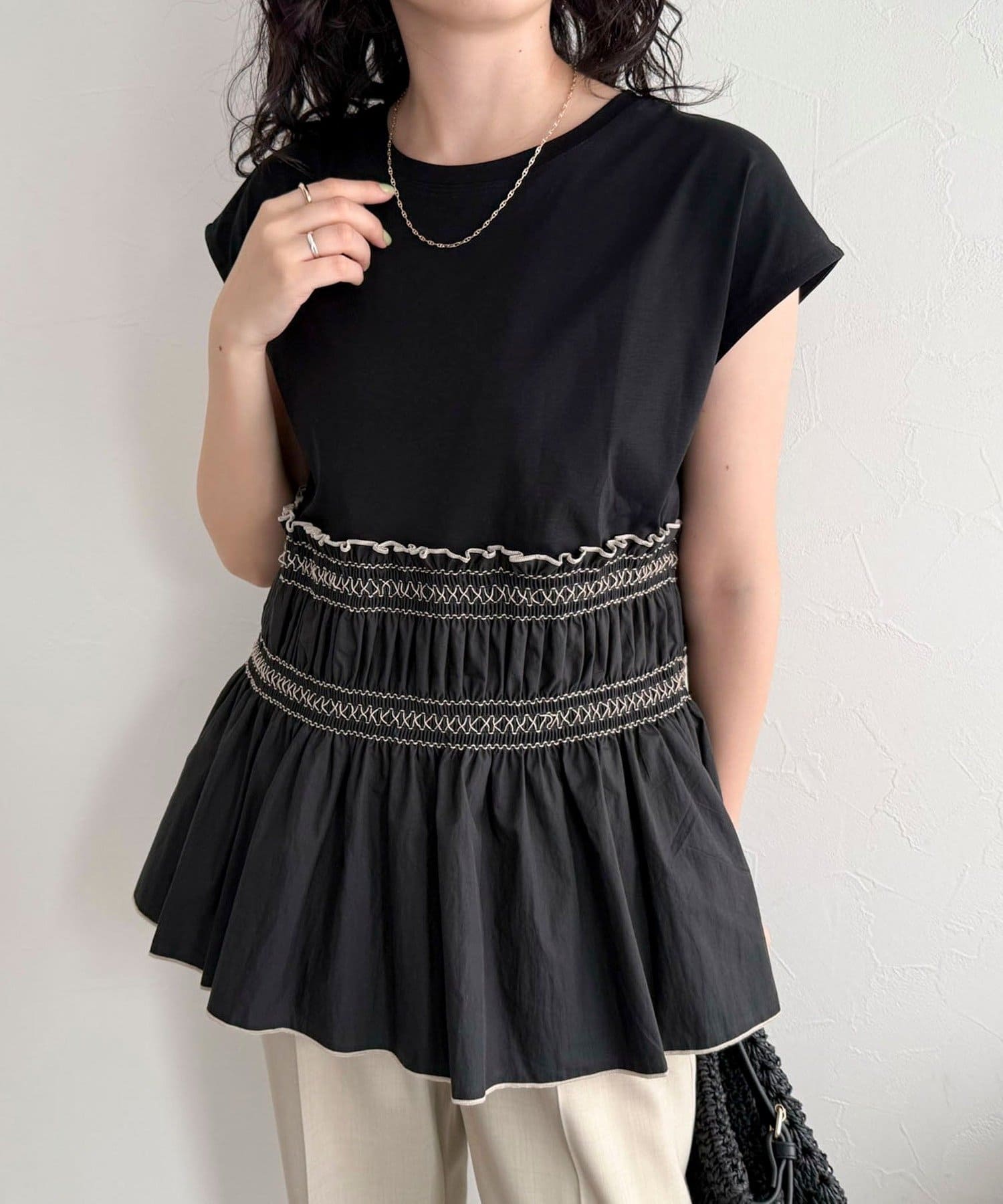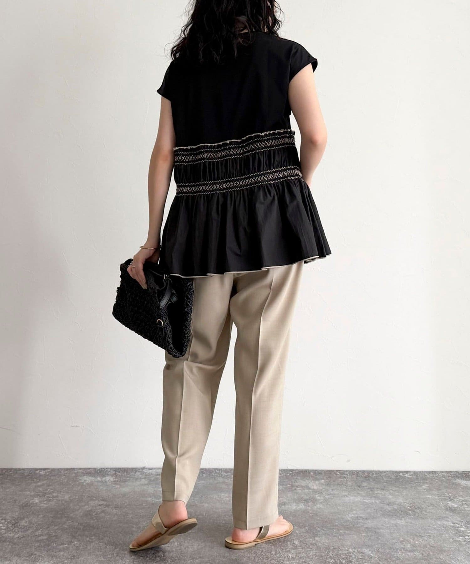 華やかさとリラックス感を両立したスモッキングフレンチプルオーバー