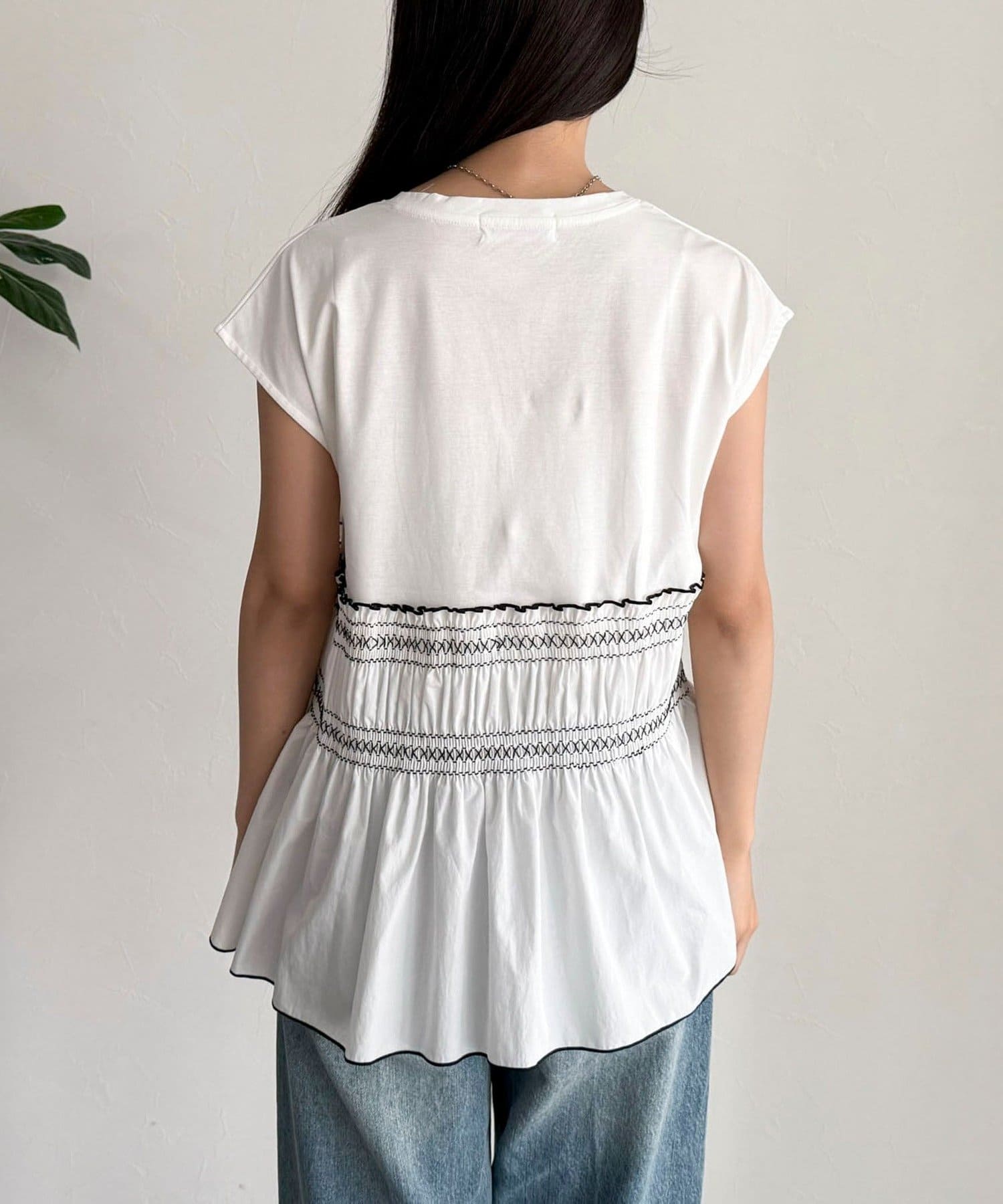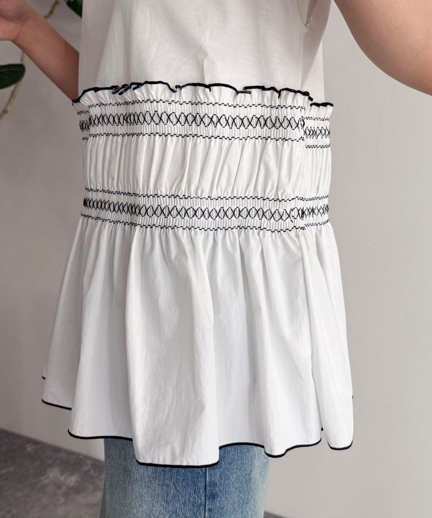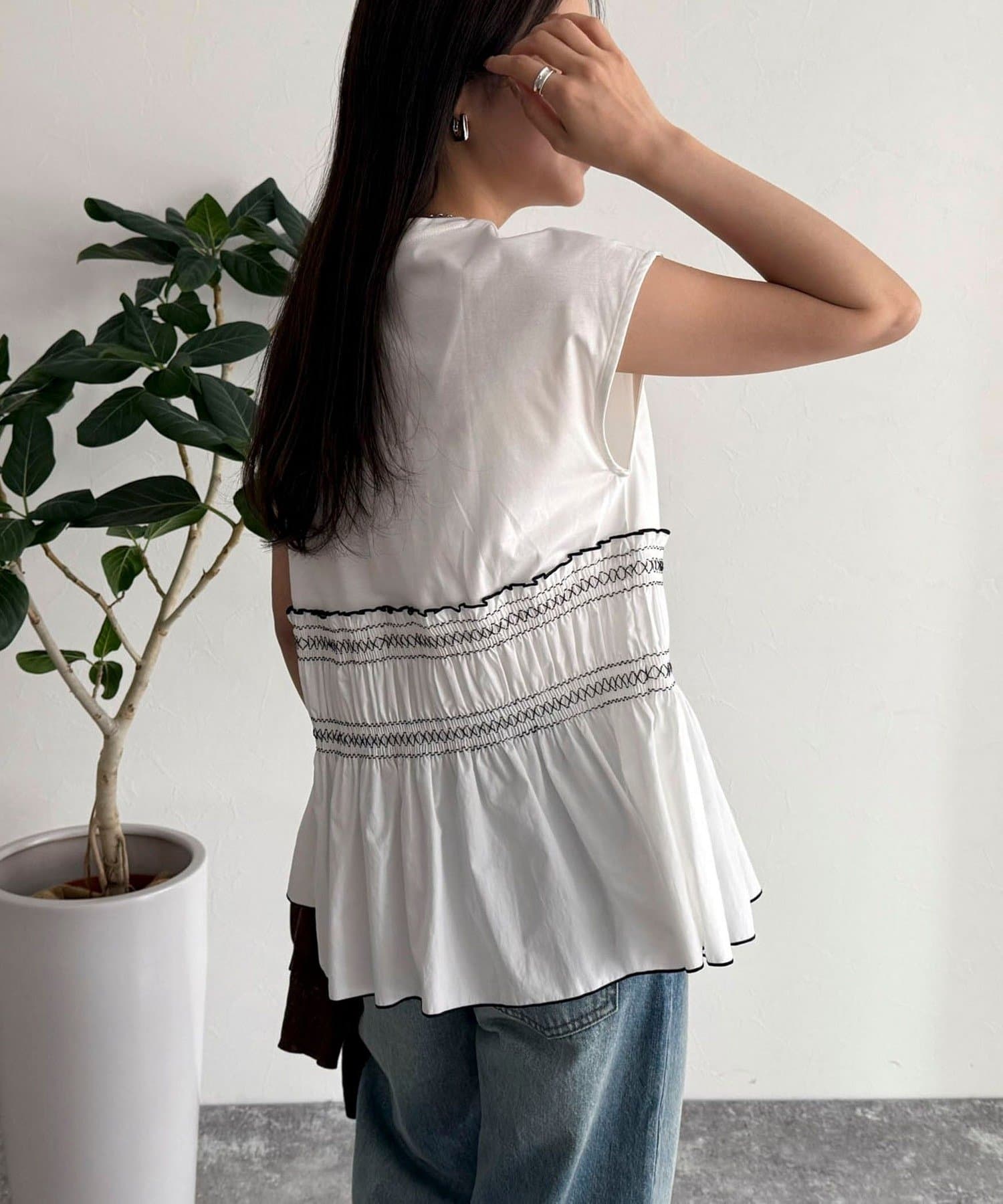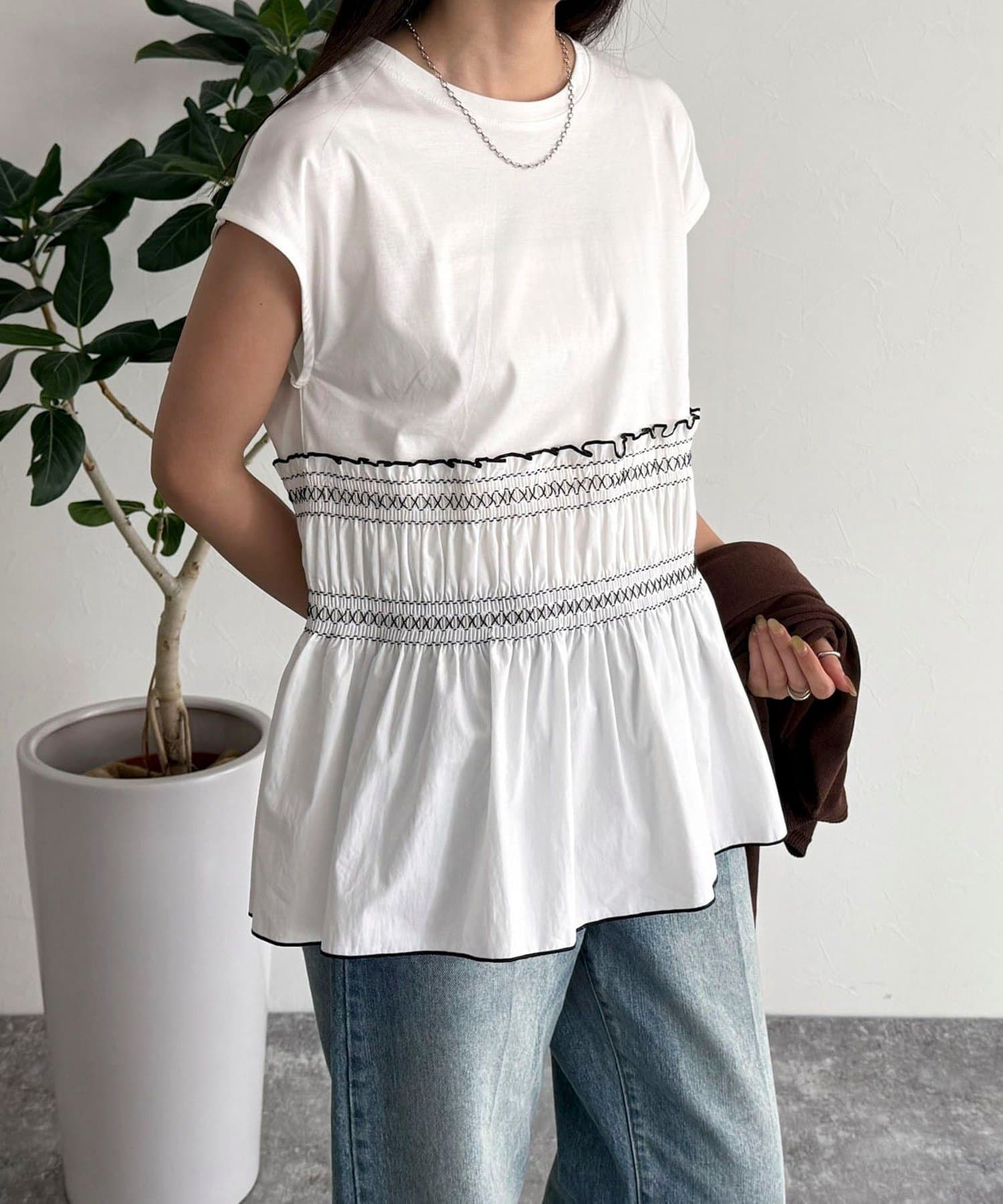 華やかさとリラックス感を両立したスモッキングフレンチプルオーバー