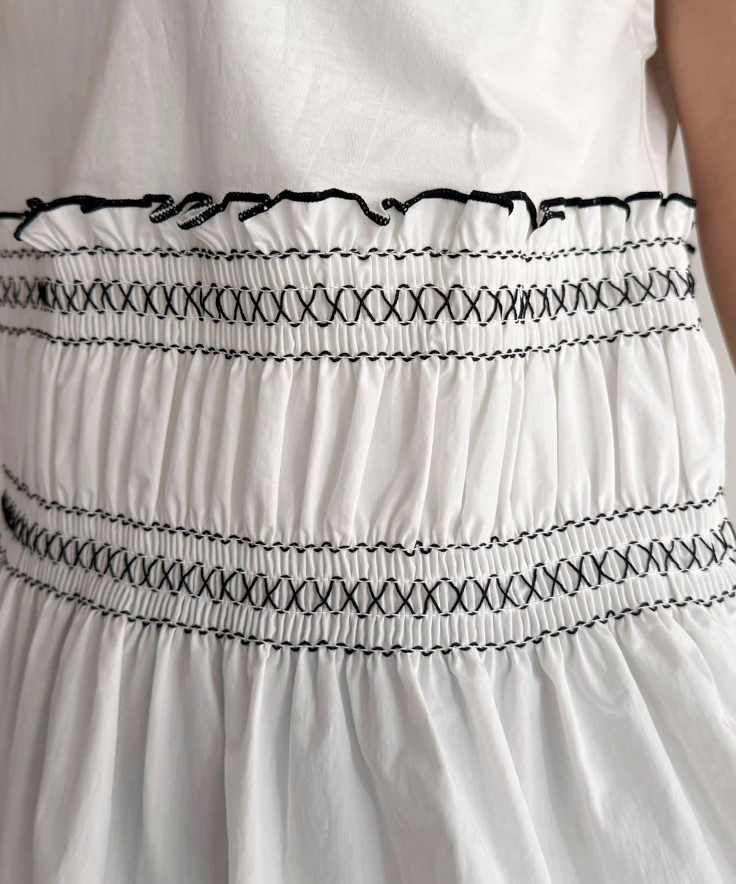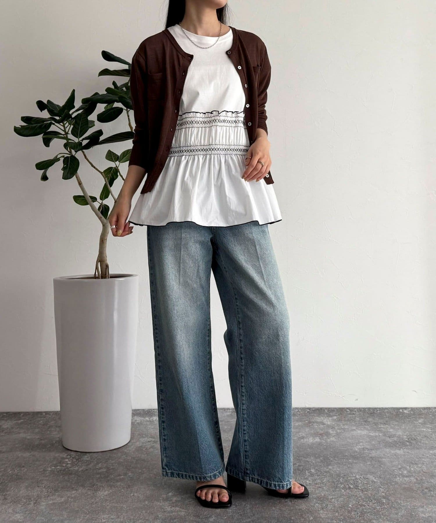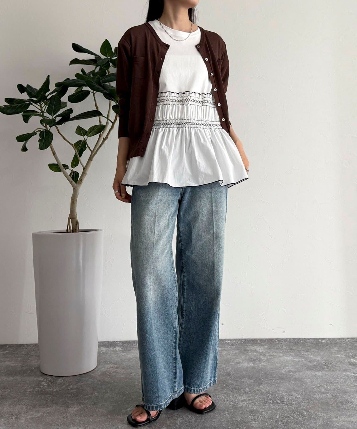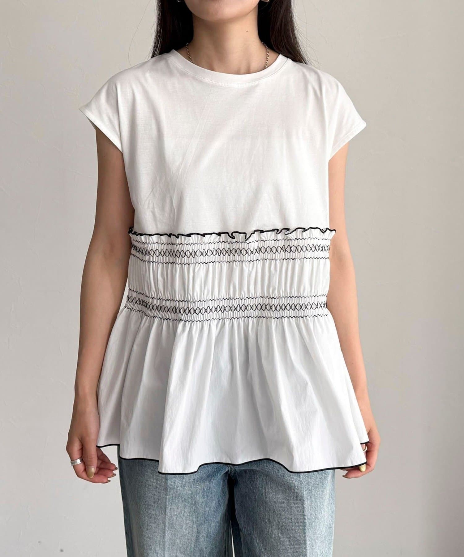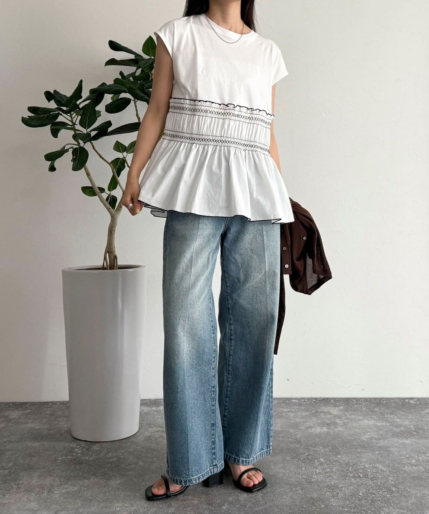 華やかさとリラックス感を両立したスモッキングフレンチプルオーバー
