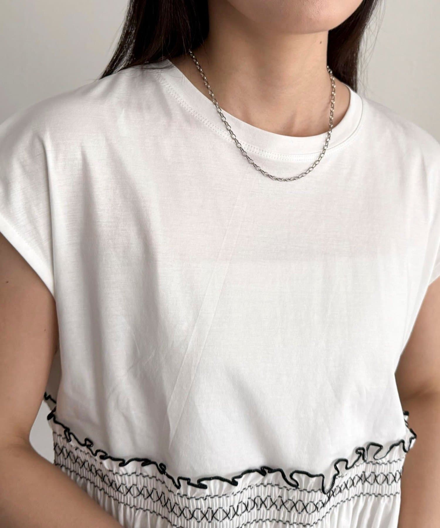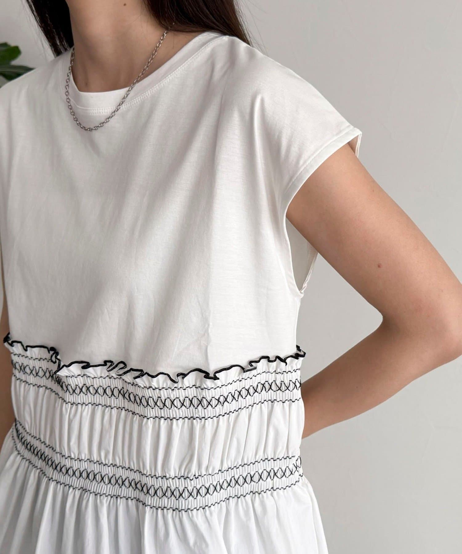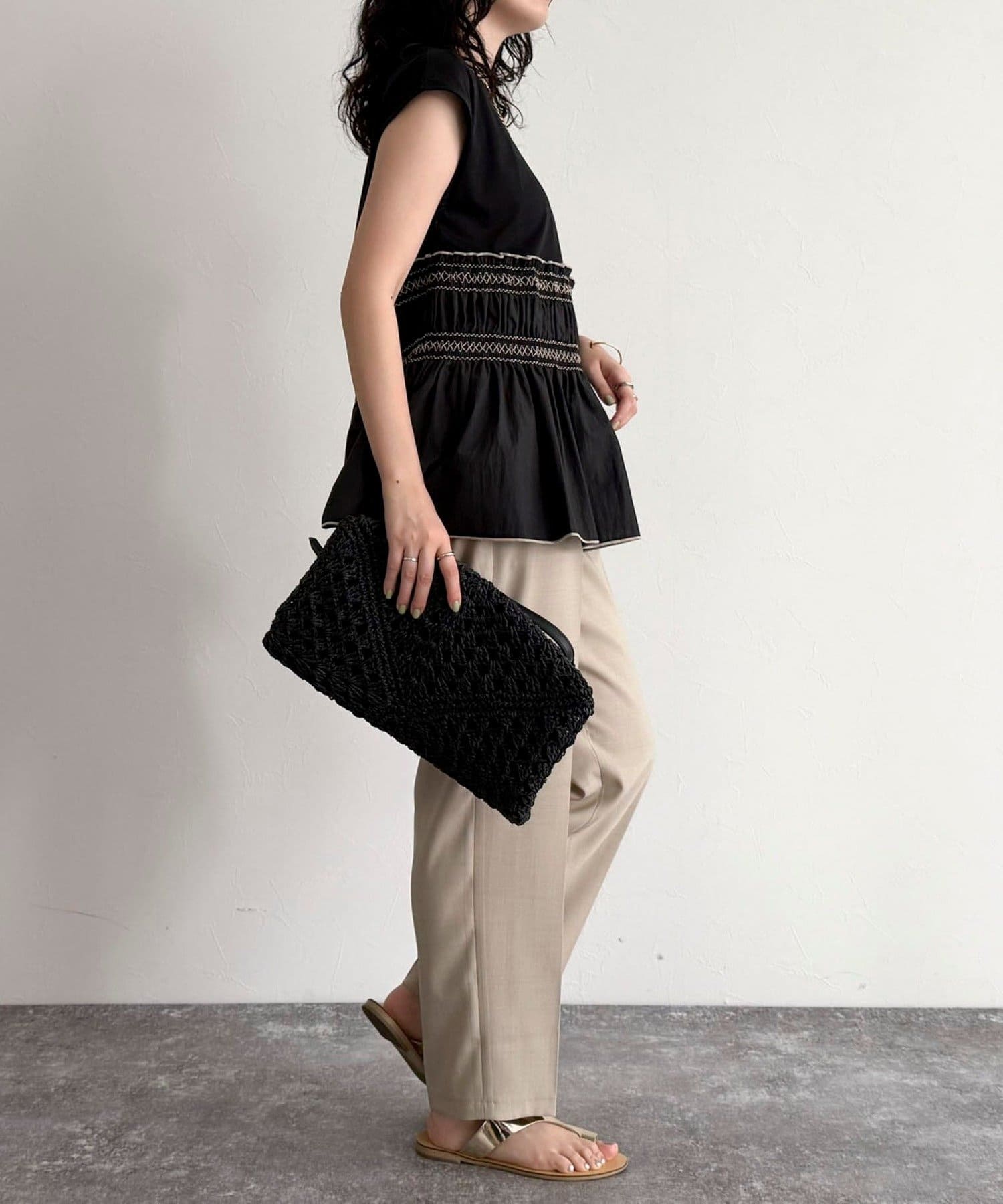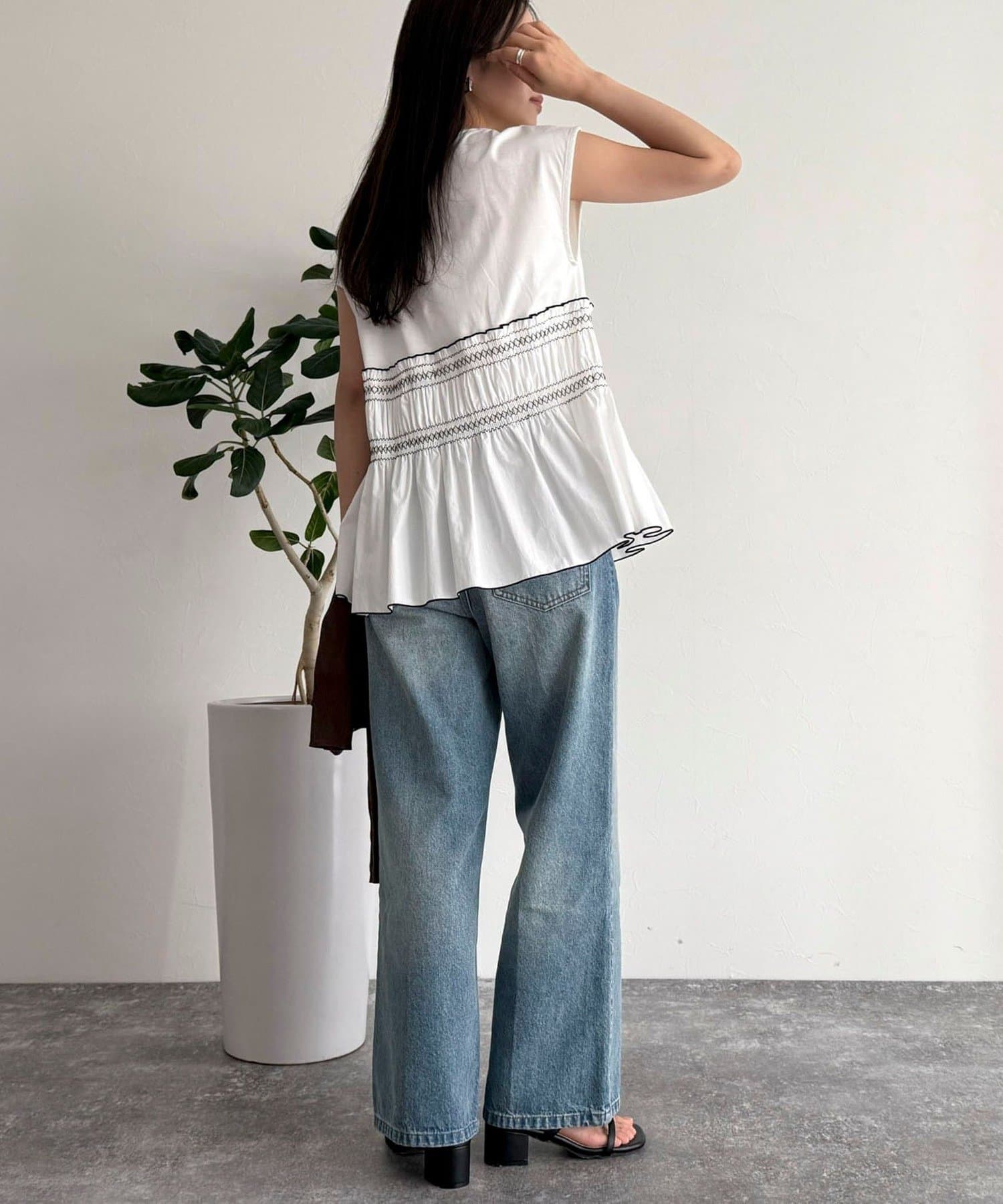 華やかさとリラックス感を両立したスモッキングフレンチプルオーバー